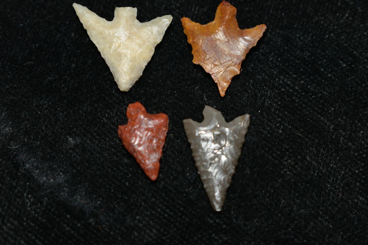 Lot of 4 Columbia Plateau’s, Largest measures 5/8" This collection contains Wonderful examples of Columbia River Valley Arrowheads and Darts from the Fred Van Ronk Collection. The location of these artifacts range from the about Dalles, Oregon to the area just North of Vantage, WA
