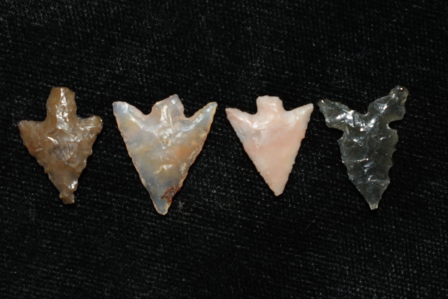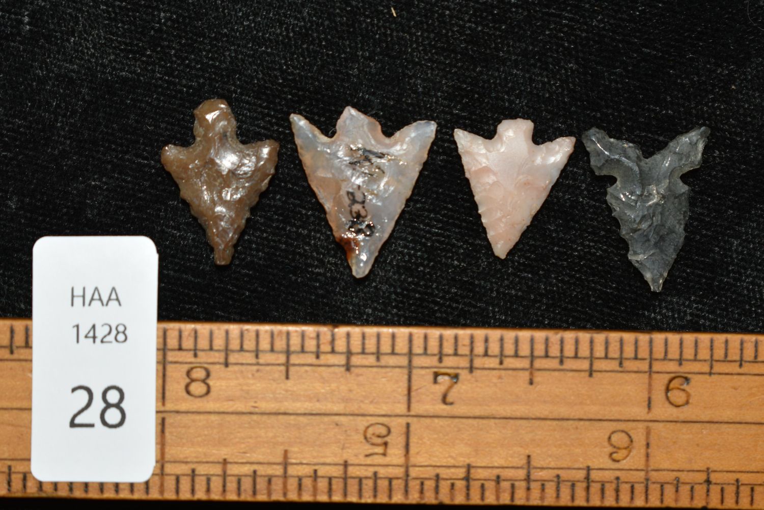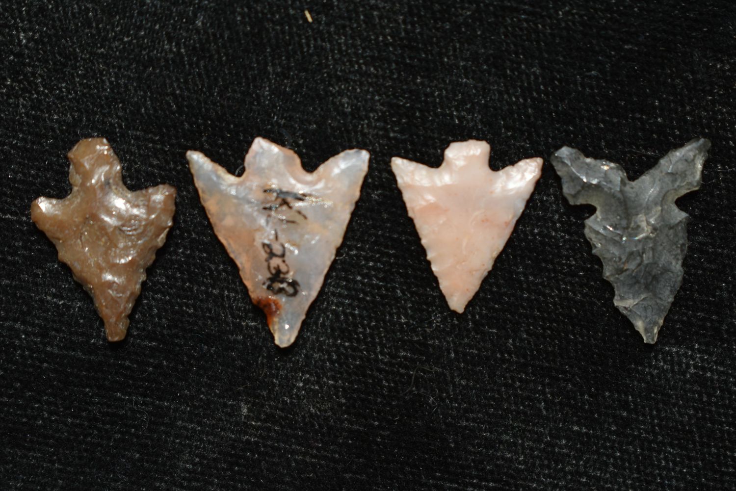 Lot of 4 Columbia Plateau’s, Largest measures 3/4" This collection contains Wonderful examples of Columbia River Valley Arrowheads and Darts from the Fred Van Ronk Collection. The location of these artifacts range from the about Dalles, Oregon to the area