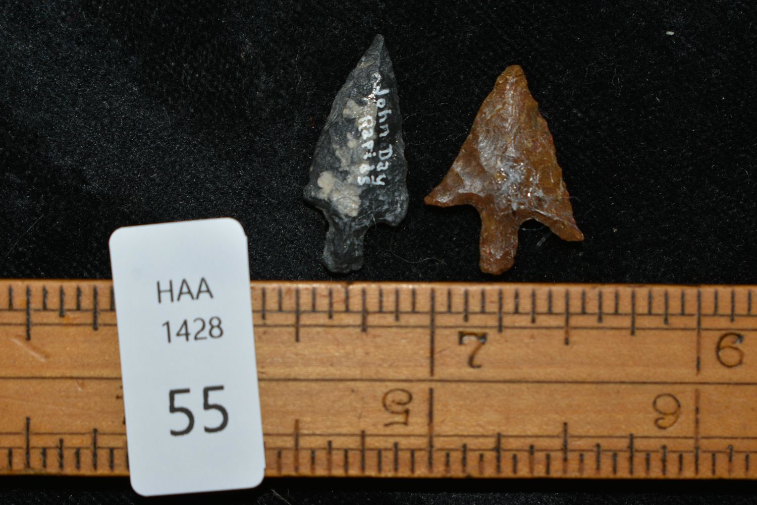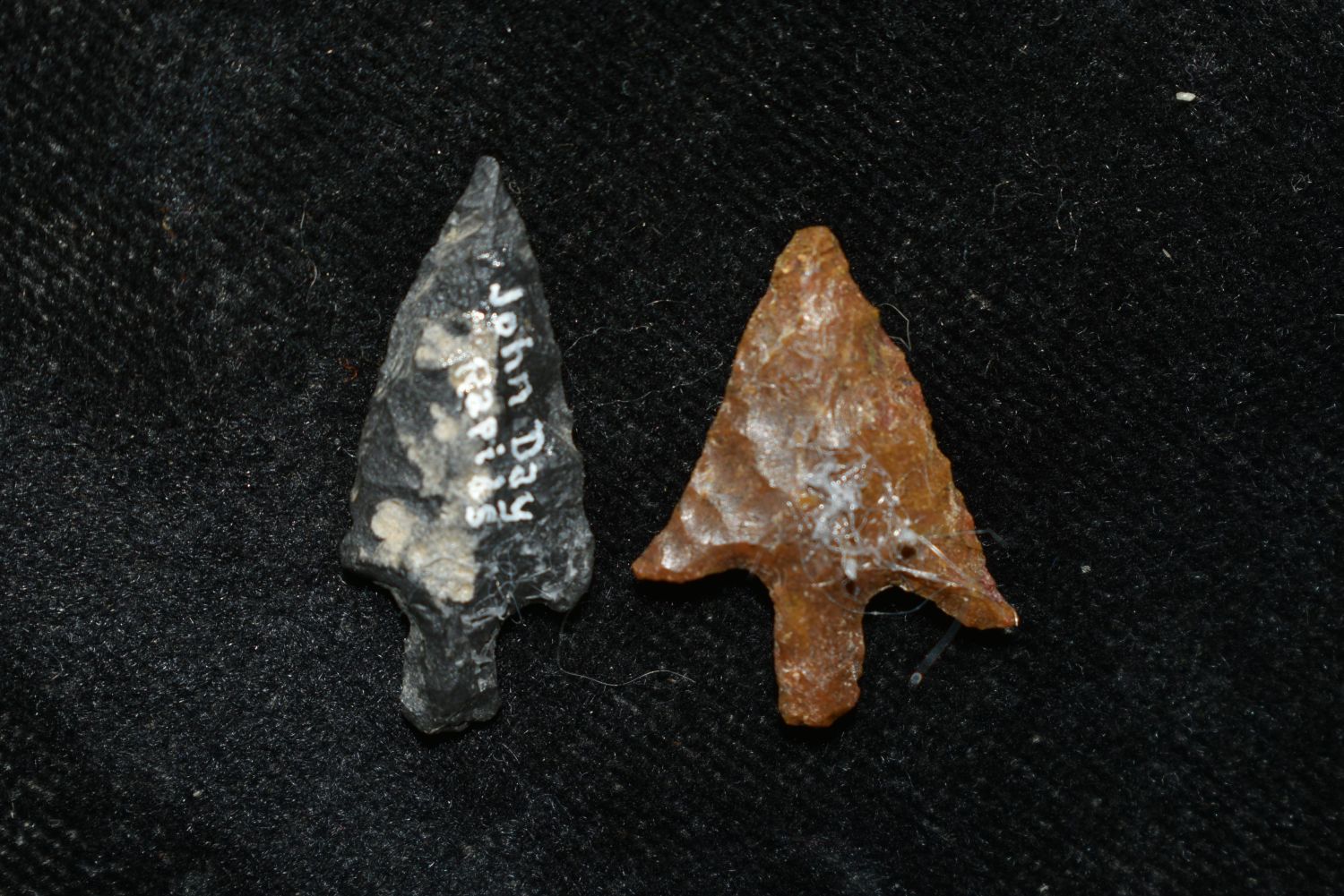 Pair of Columbia River Gem Points, Largest mesaures 1" This collection contains Wonderful examples of Columbia River Valley Arrowheads and Darts from the Fred Van Ronk Collection. The location of these artifacts range from the about Dalles, Oregon to the area just North of Vantage, WA