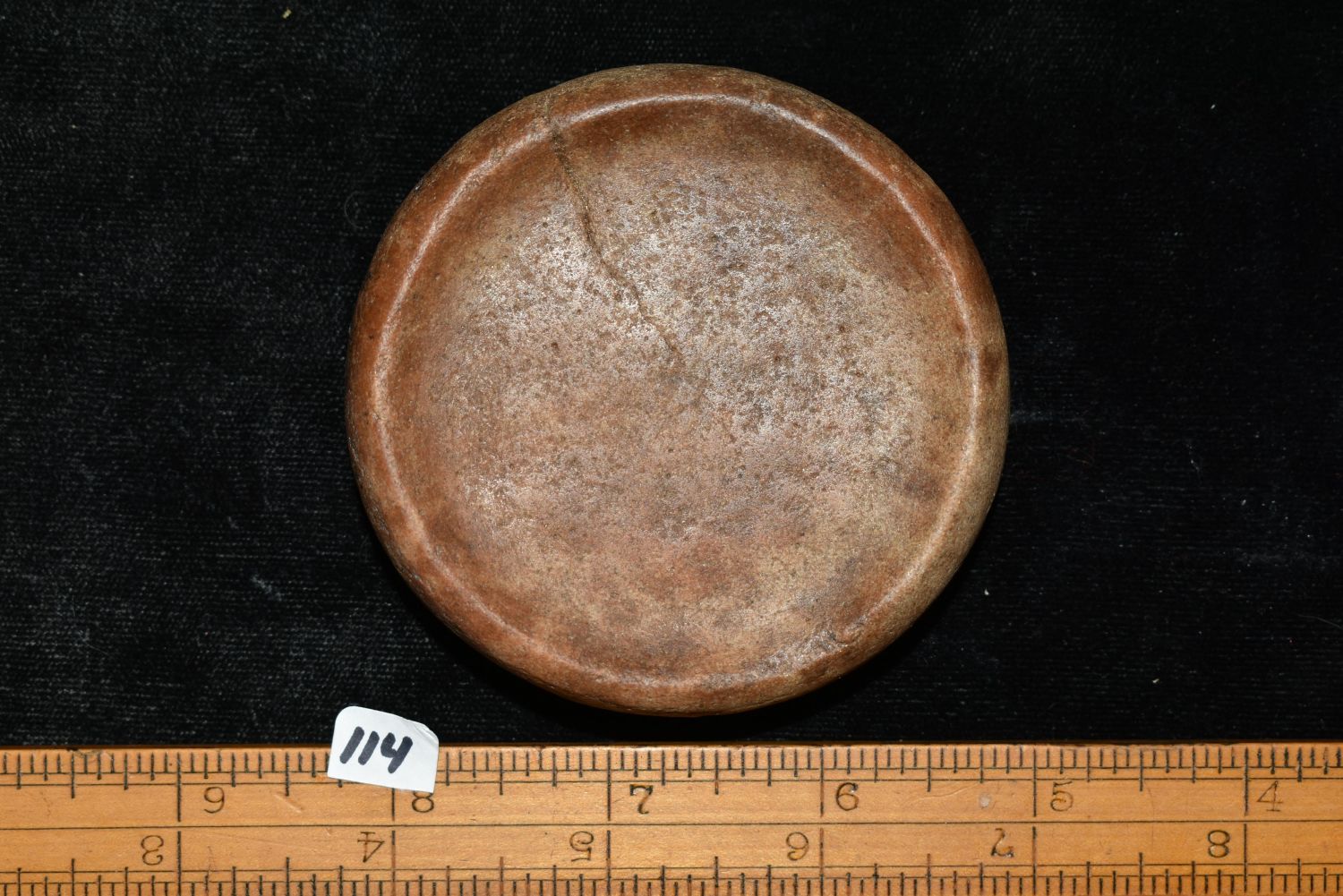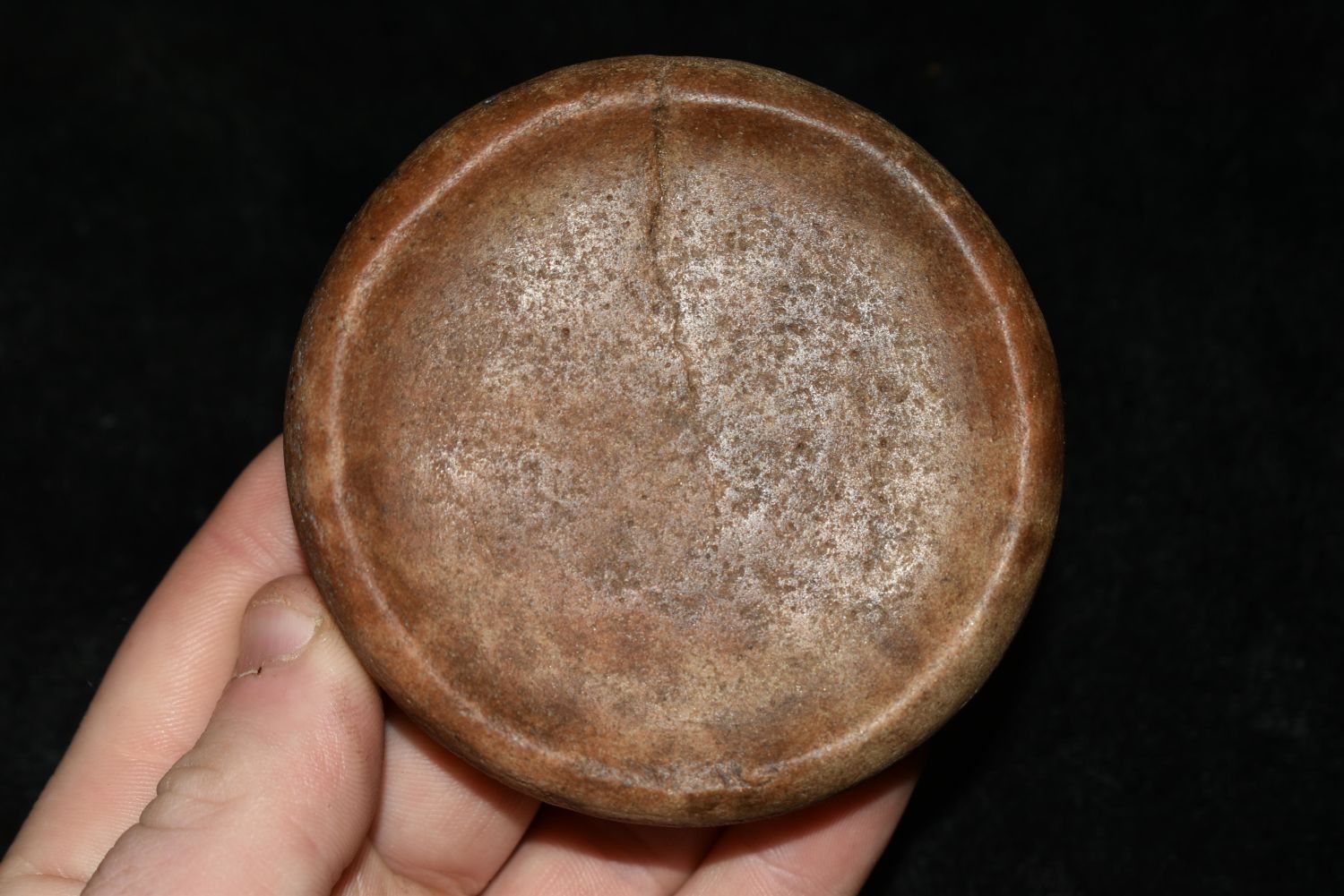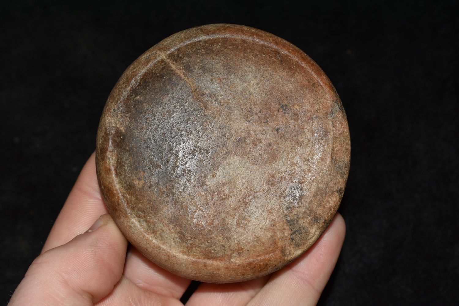 3" WIDE CAHOKIA DISCOIDAL FOUND IN MADISON COUNTY ILLINOIS, NATIVE AMERICAN GAME STONE DSIC, INDIAN ARTIFACT