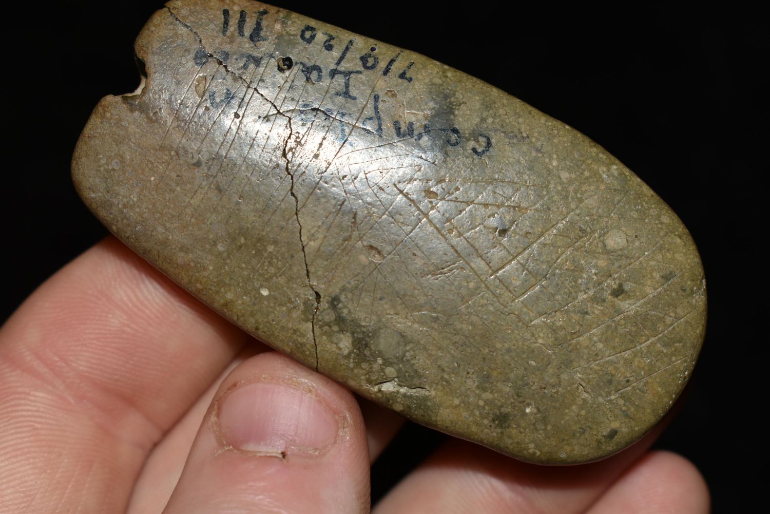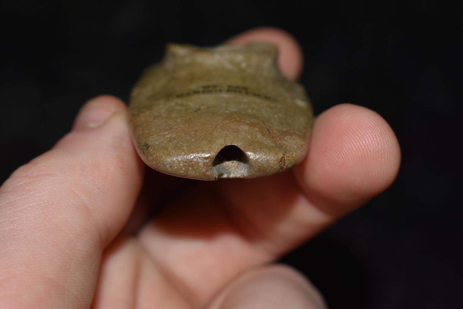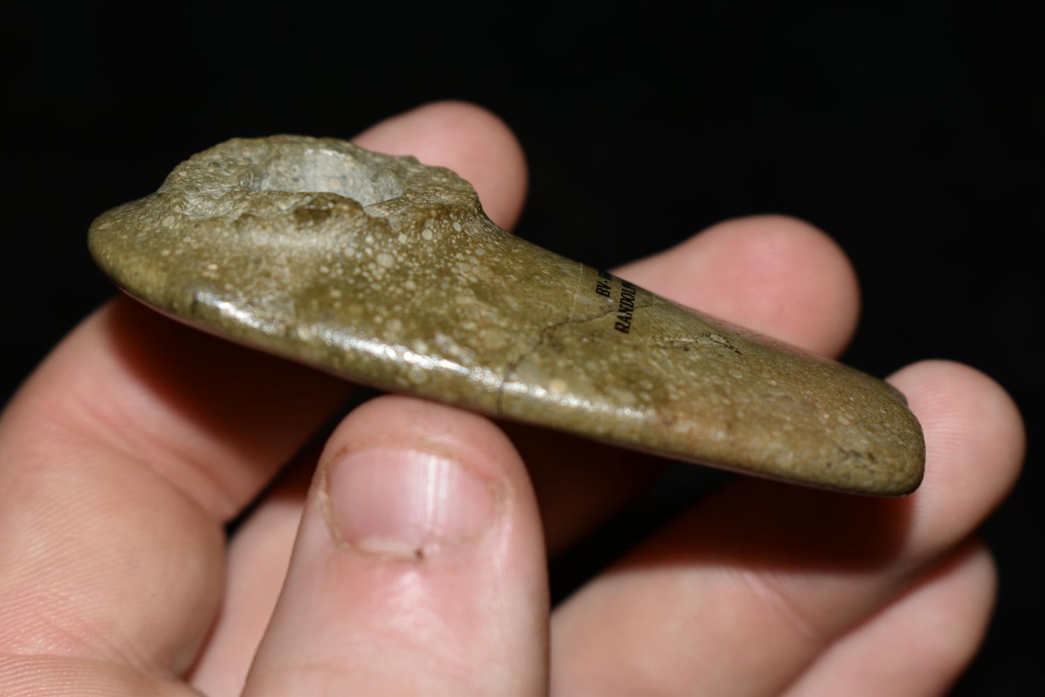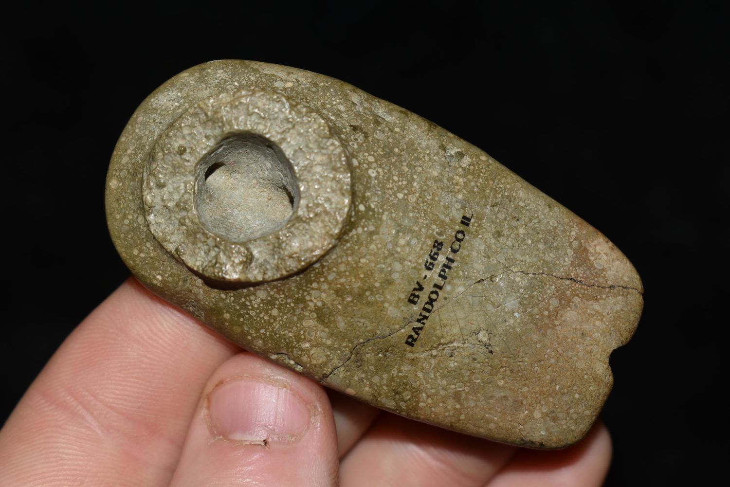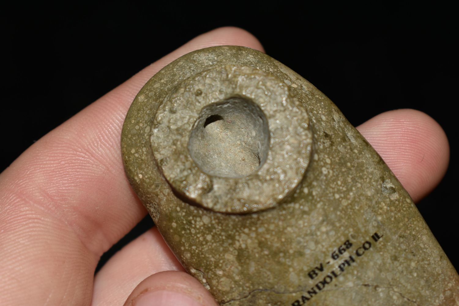 2 5/8" LONG HEAVILY ENGRAVED HOPEWELL PLATOFRM PIPE FOUND IN RANDOLPH COUNTY ILLINOIS ON JULY 9TH, 1920, PIPESTONE, NATIVE AMERICAN ARROWHEAD
