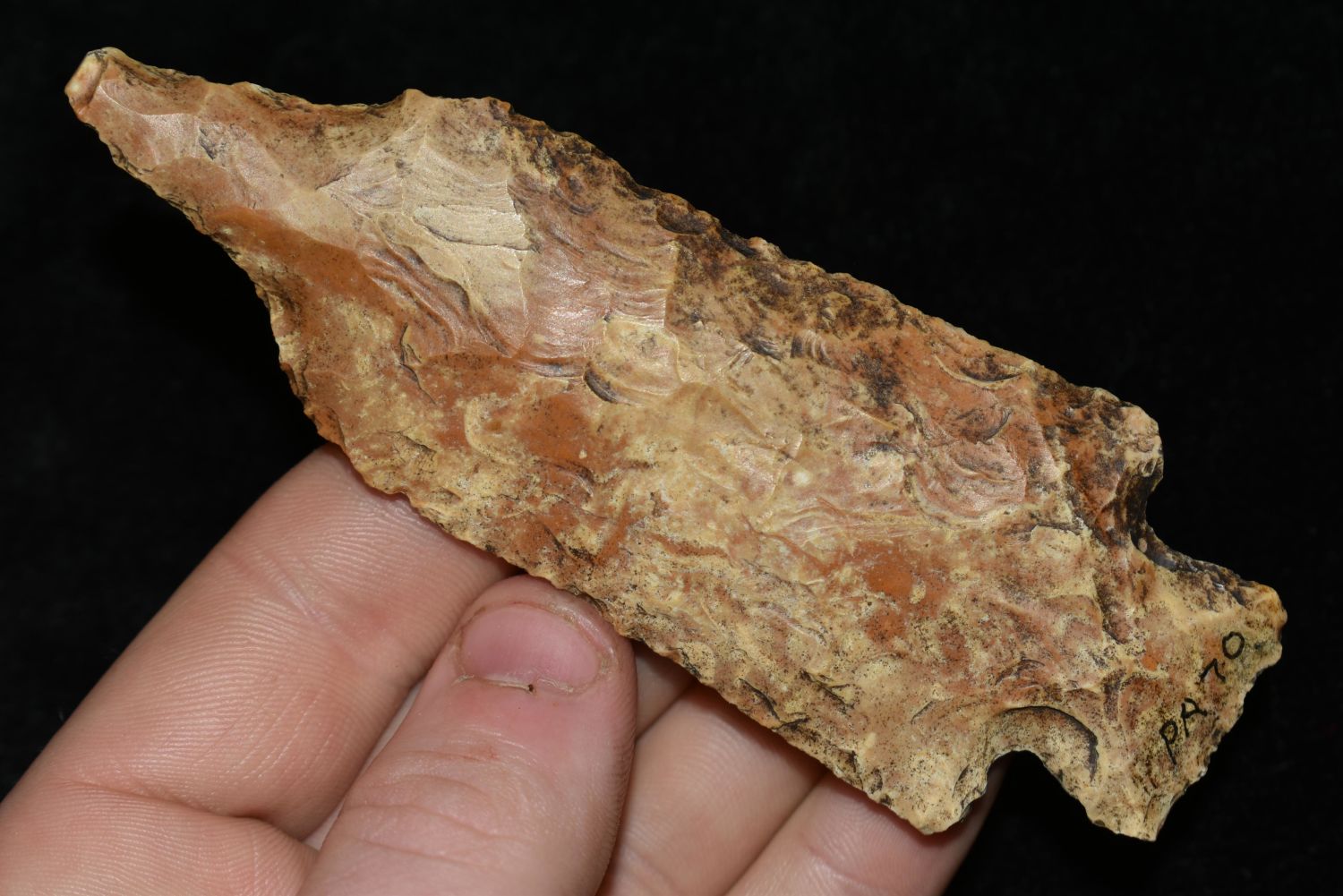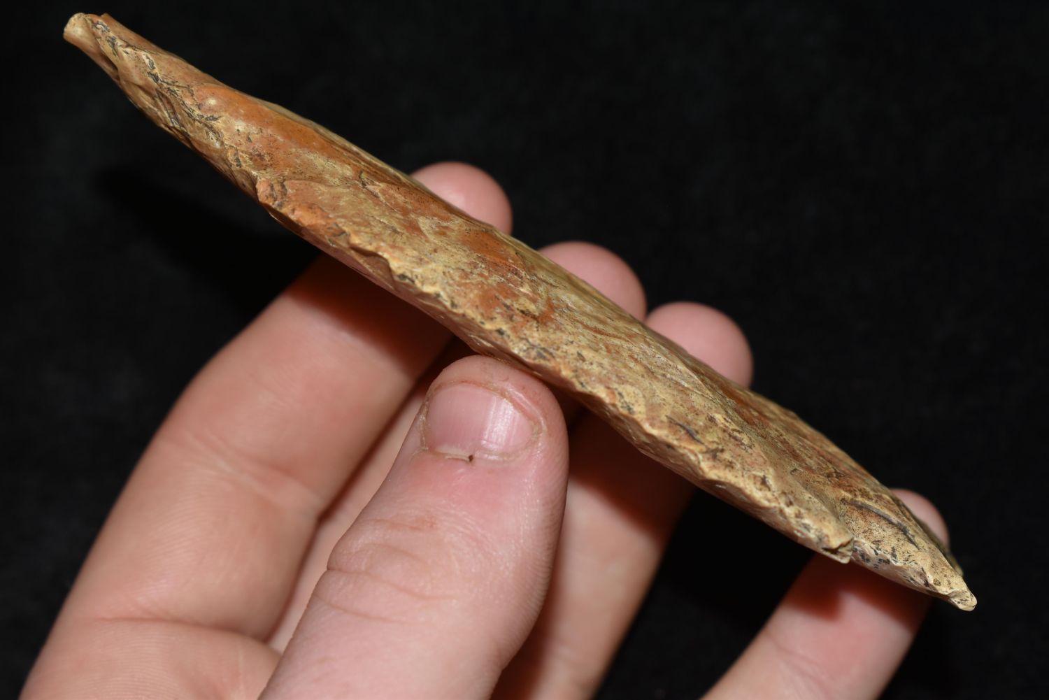 4 3/8" ETLEY DRILL FOUND IN CLINTON COUNTY ILLINOIS, NICE CREEK STAIN, NATIVE AMERICAN ARROWHEAD, INDIAN ARTIFACT