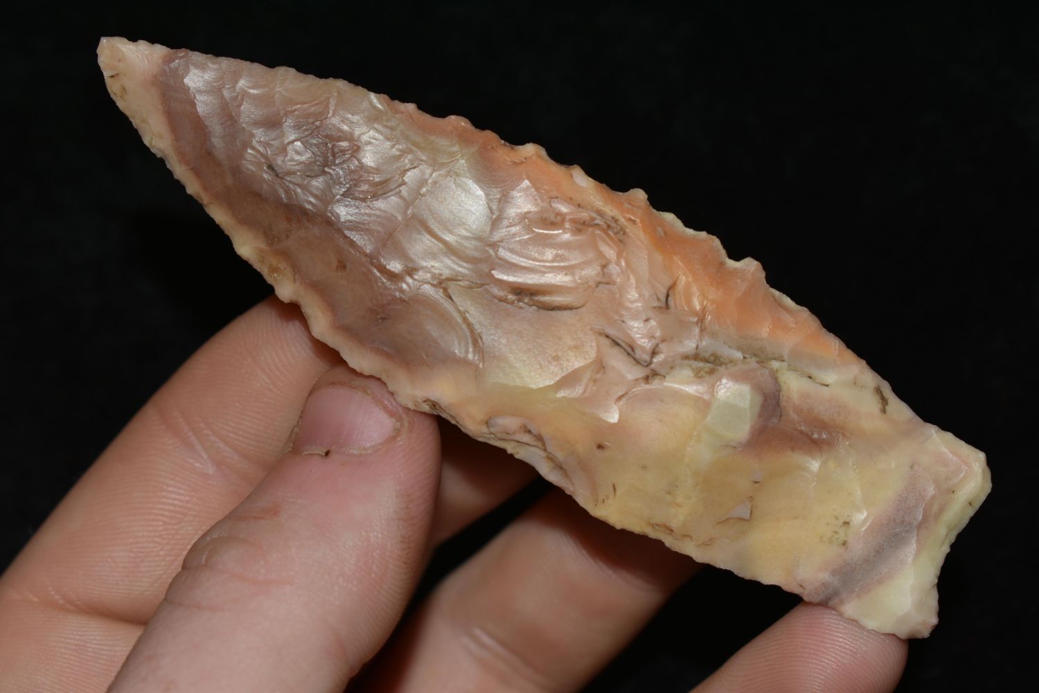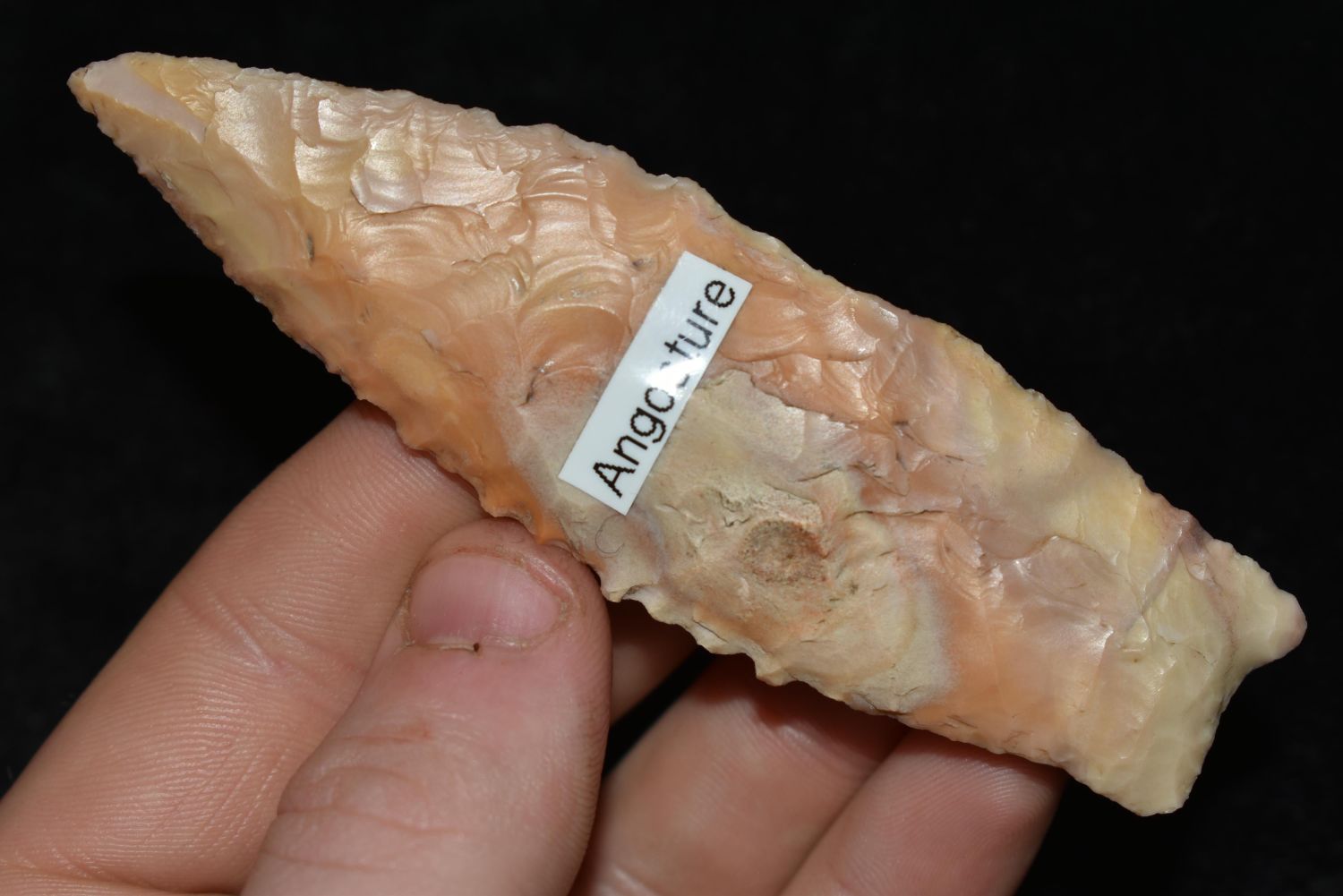 3 7/8" COLORFUL ANGOSTURA FOUND IN LINCOLN COUNTY MISSOURI, NATIVE AMERICAN ARROWHEAD, INDIAN ARTIFACT