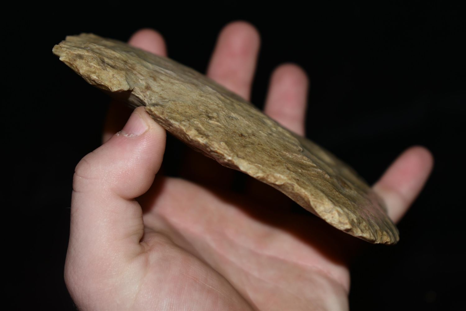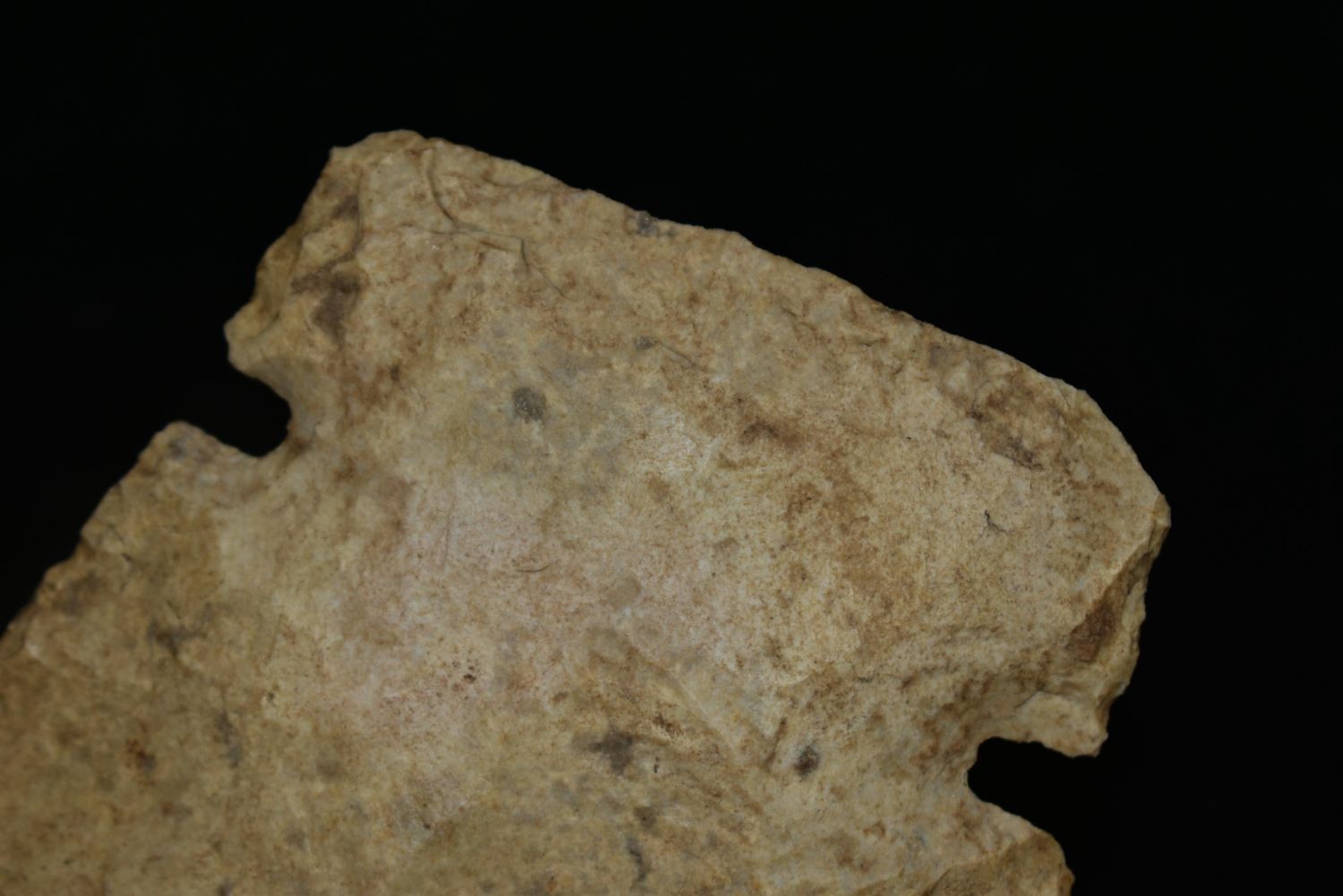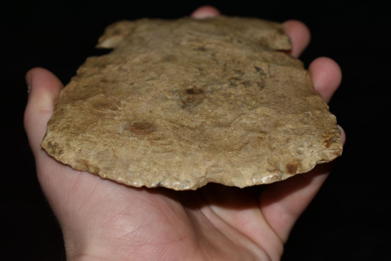 5 1/8" LONG NOTCHED HOE FOUND IN MADISON COUNTY, ILLINOIS, NICE BIT POLISH, NATIVE AMERICAN FLINT SPADE, INDIAN ARTIFACT