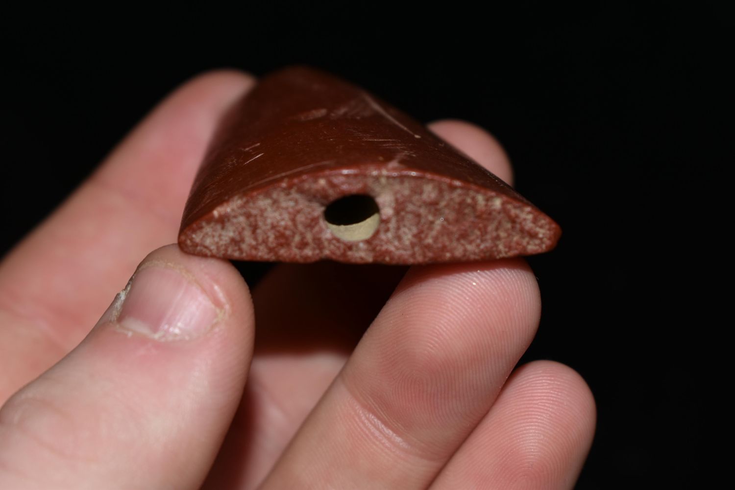 2 3/8" LONG HOPEWELL PLATFORM PIPE STEM SECTION FOUND IN FULTON COUNTY ILLINOIS, CATLINITE, NATIVE AMERICAN ARROWHEAD, INDIAN ARTIFACT