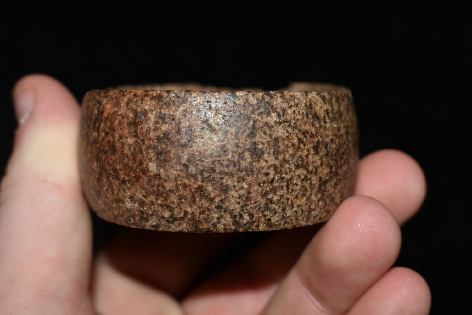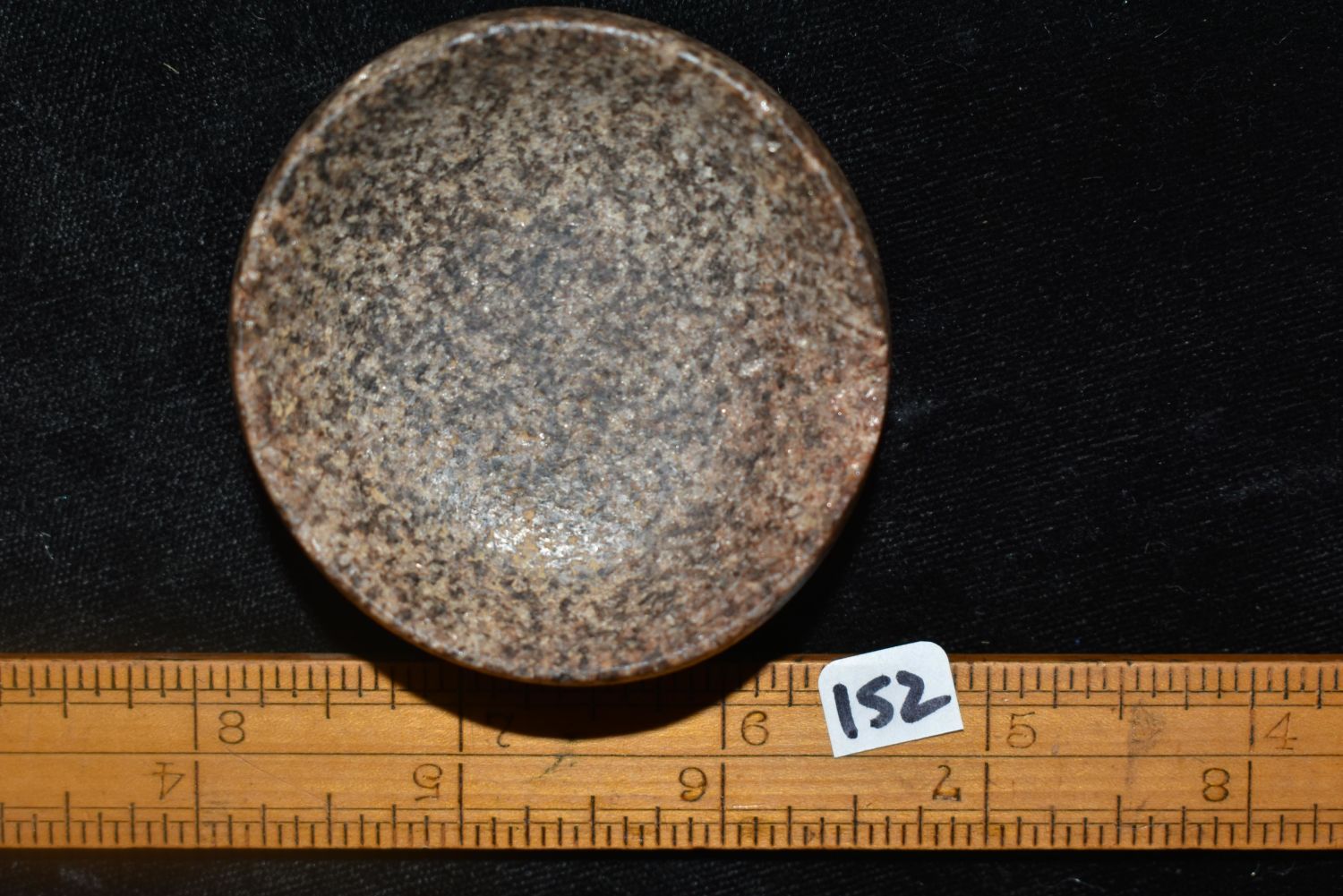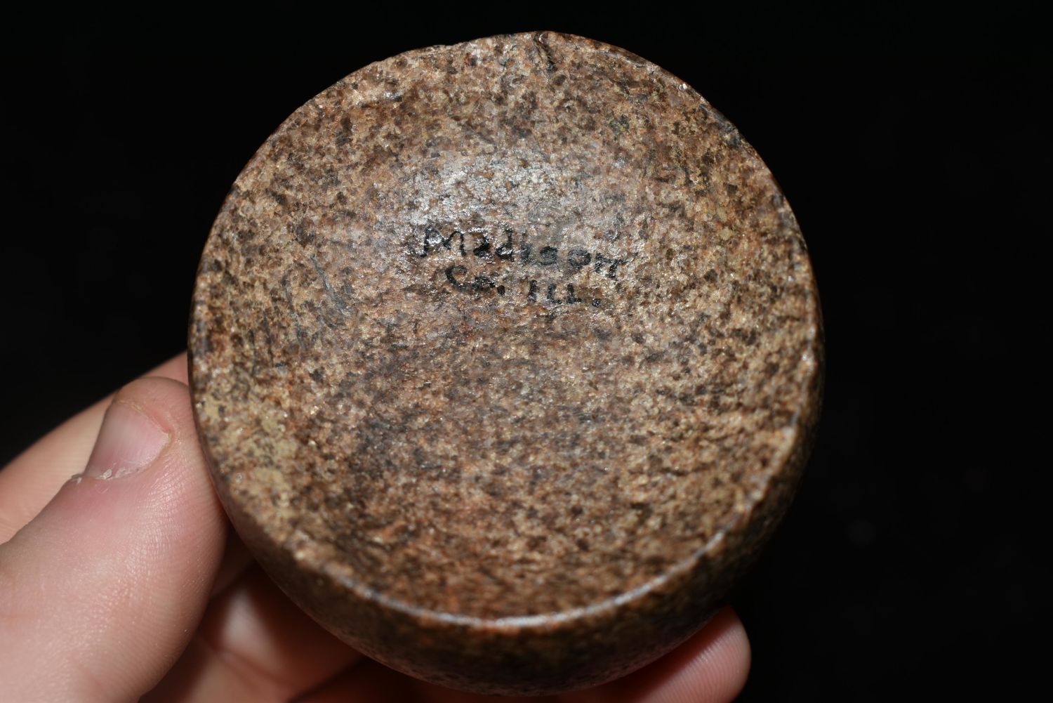 2 3/8" WIDE CAHOKIA DISCOIDAL FOUND IN MADISON COUNTY, ILLINOIS, NICE SHARP RIMS, EX FLOYD RITTER COLLECTION, NATIVE AMERICAN GAME STONE DISC