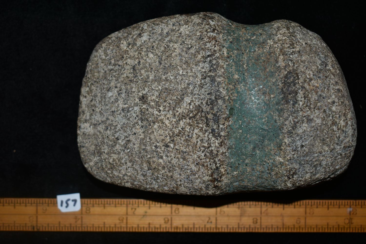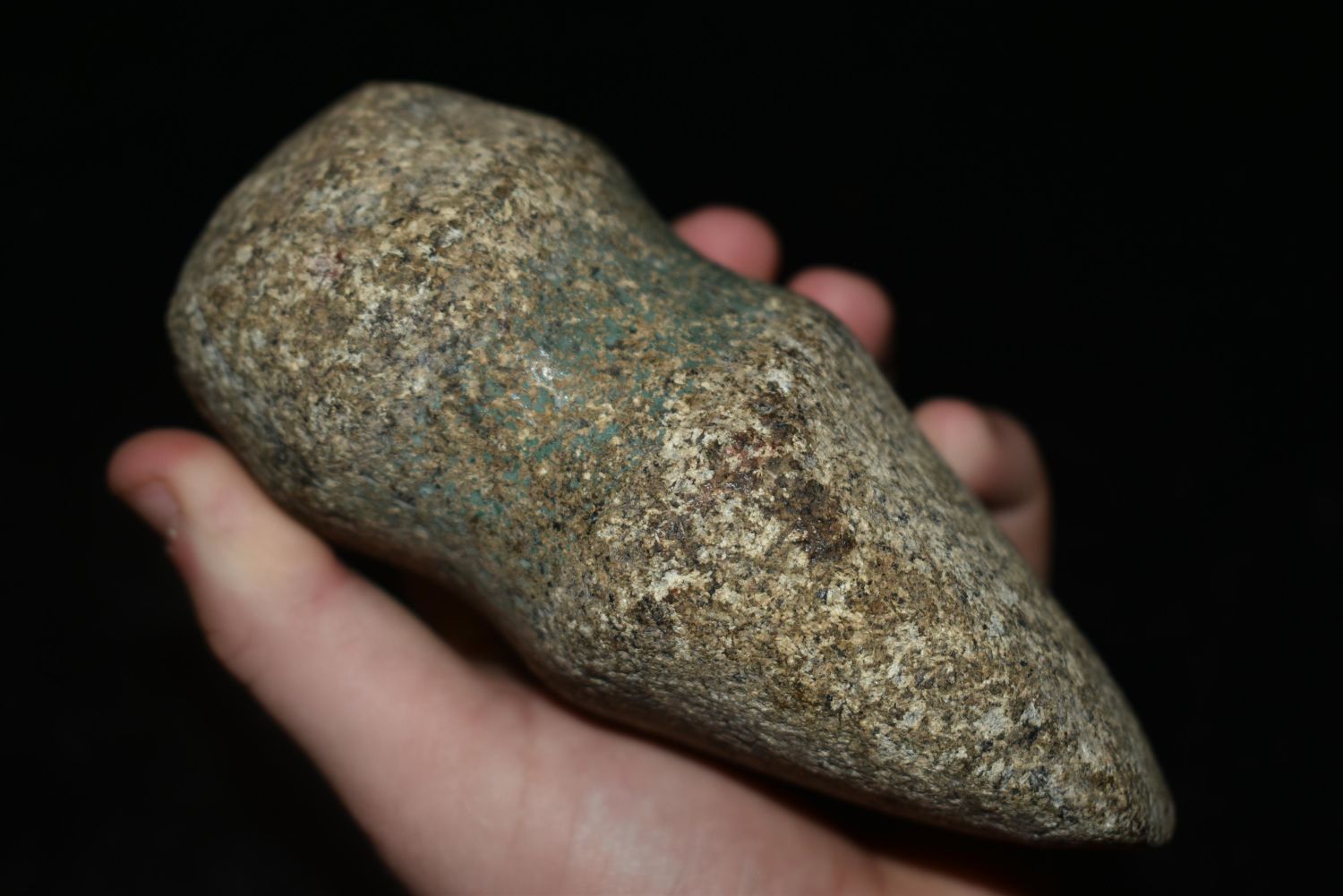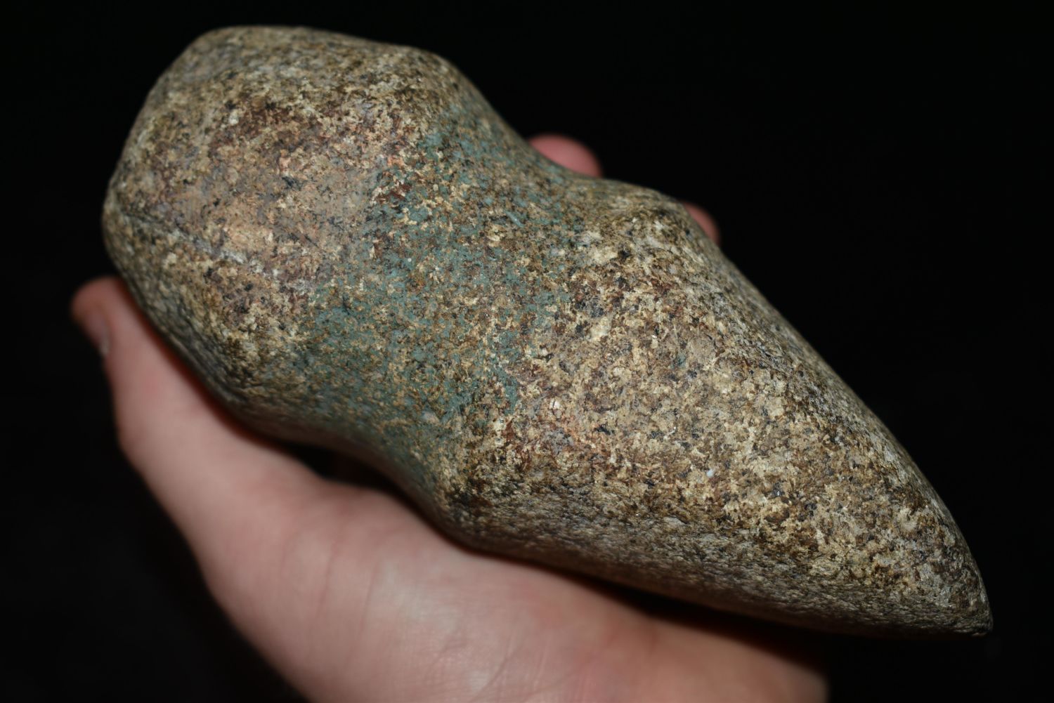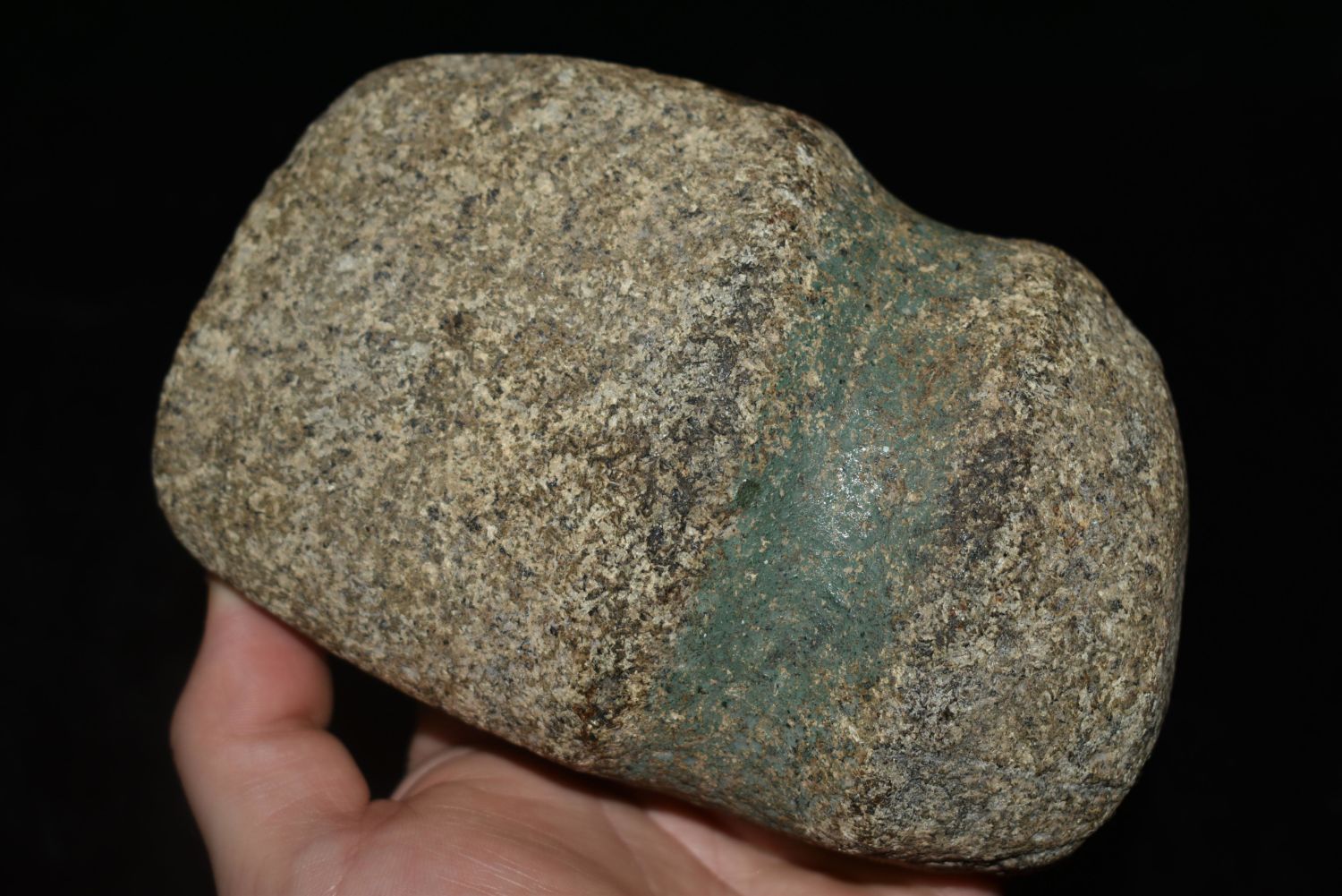 5 7/8" LONG 3/4 GROOVE AXE FOUND IN ADAMS COUNTY ILLINOIS, NO DAMAGE, SOME OLD PAINT IN THE GROOVE, NATIVE AMERICAN WEAPON, INDIAN ARTIFACT