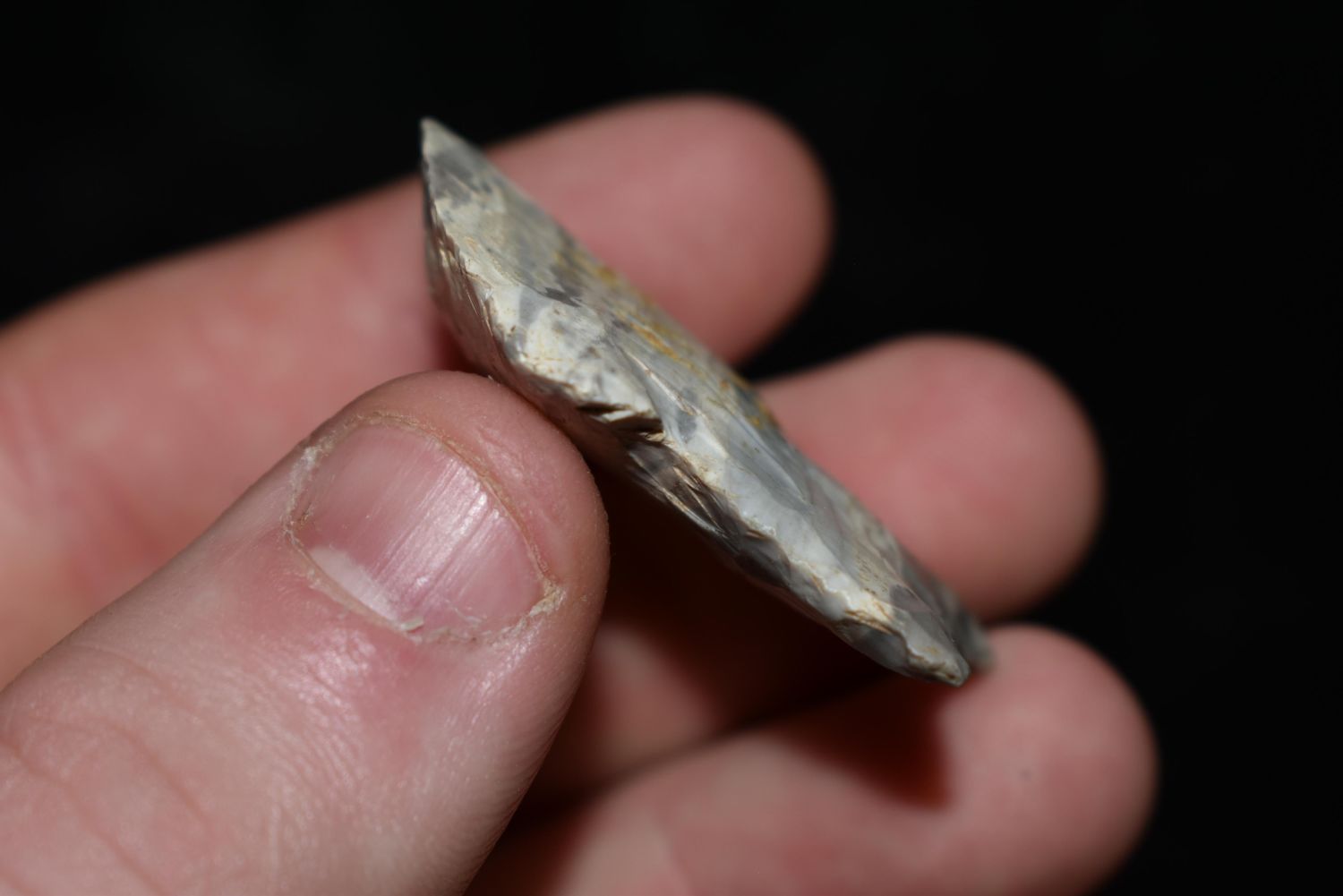 1 1/2" COLORFUL HARDIN HAFTED SCRAPER / BLUNT, FOUND IN COLE COUNTY MISSOURI, NATIVE AMERICAN ARROWHEAD, INDIAN ARTIFACT