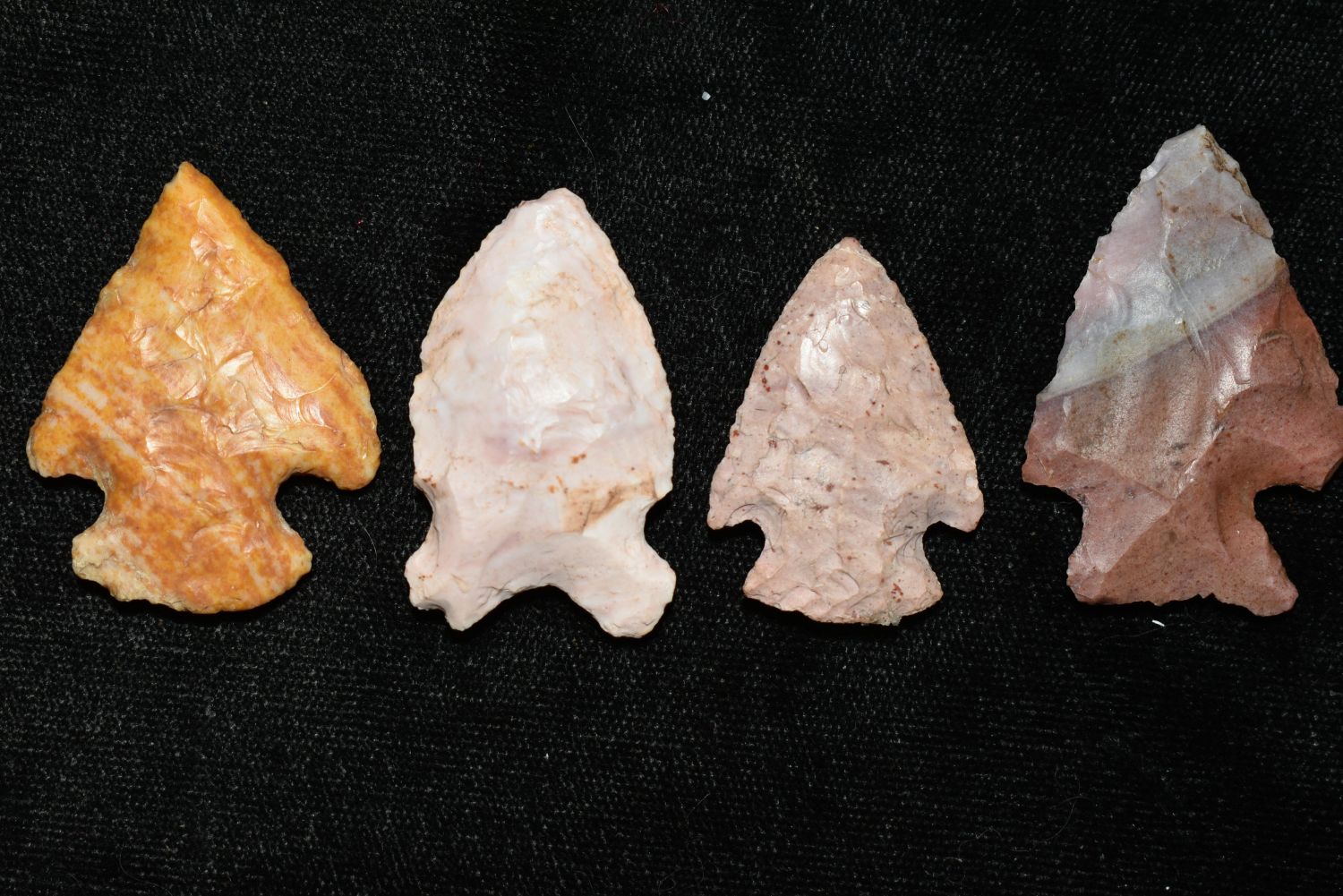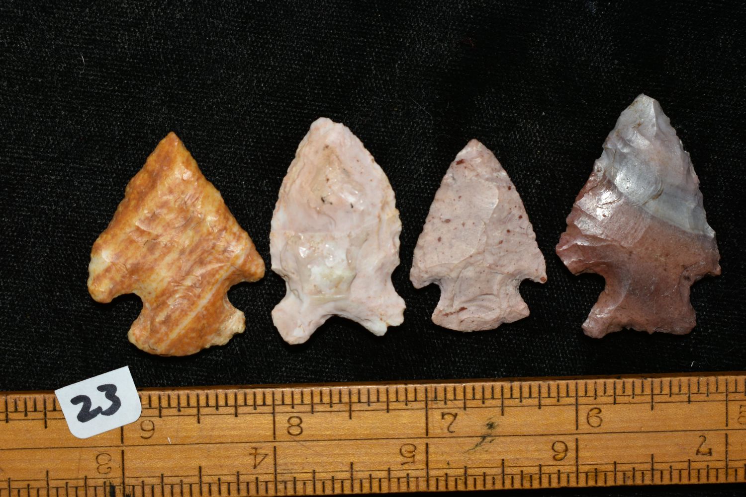 LOT OF 4 ARCHAIC POINTS FROM LINCOLN COUNTY MISSOURI, FOUND BY JAMES COOKSEY, NATIVE AMERICAN ARROWHEAD, INDIAN ARTIFACT