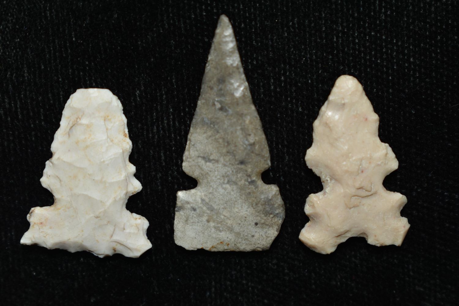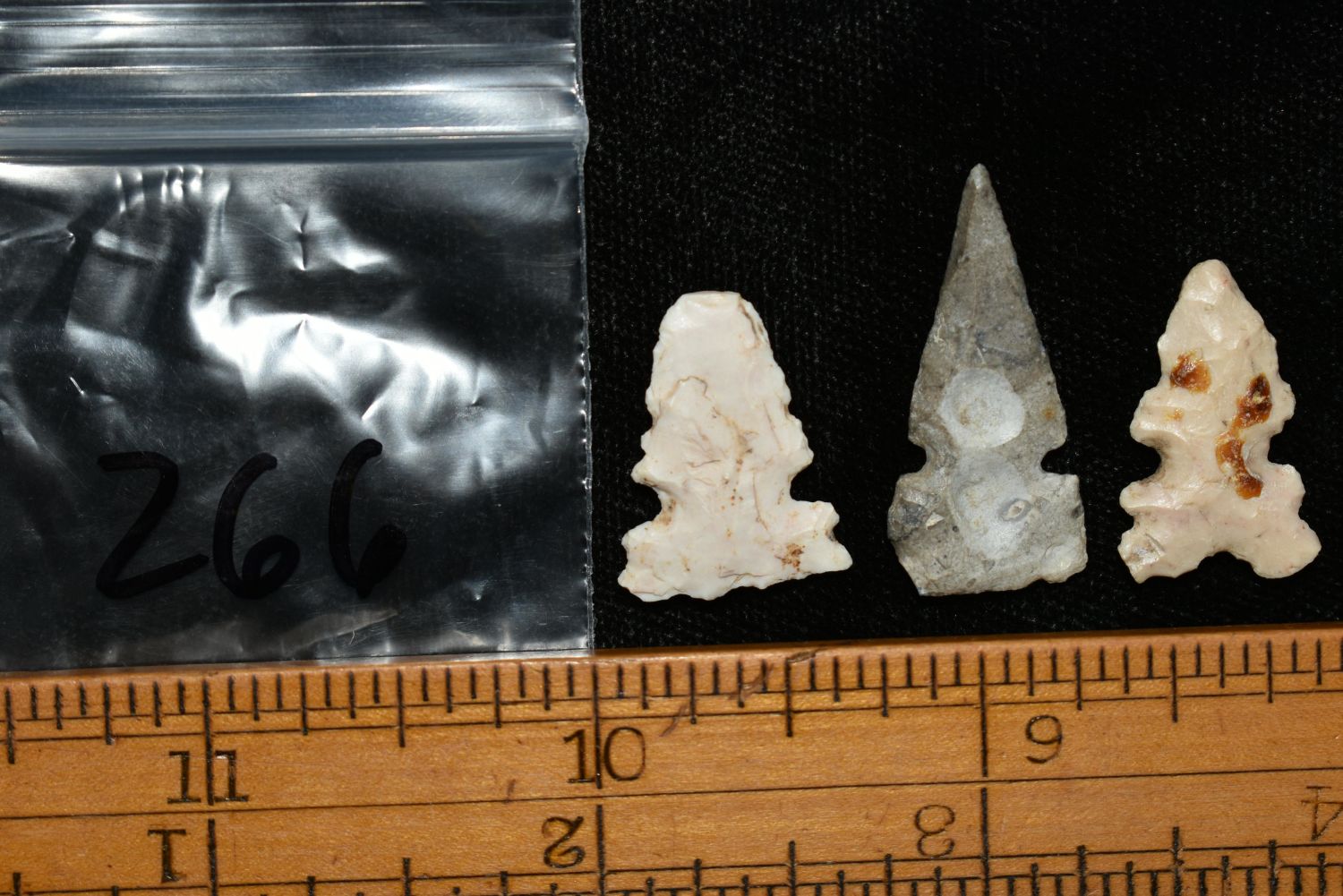 LOT OF 3 NOTCHED CAHOKIA BIRD POINTS, FOUND IN MADISON COUNTY ILLINOIS, NATIVE AMERICAN ARROWHEAD, INDIAN ARTIFACT