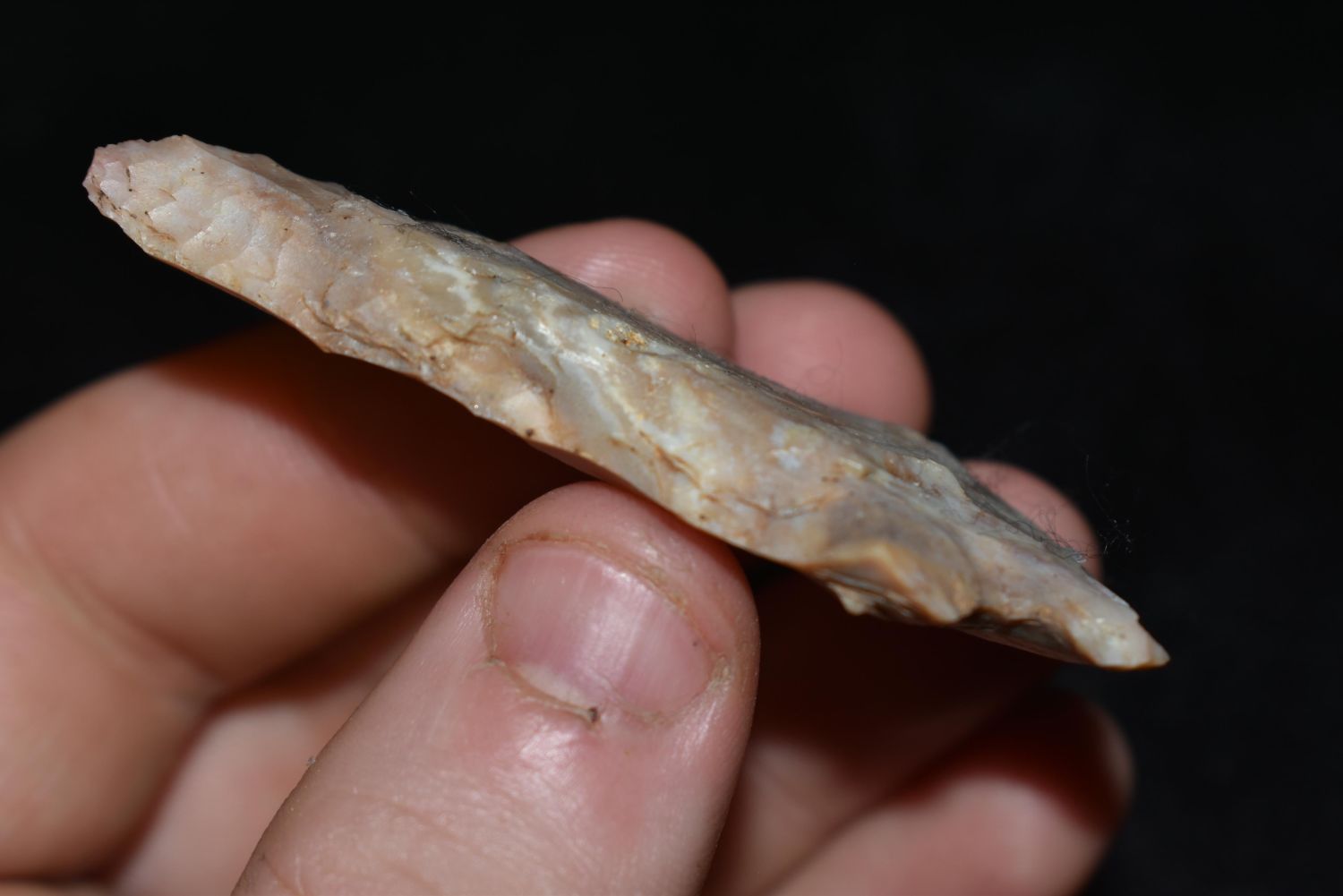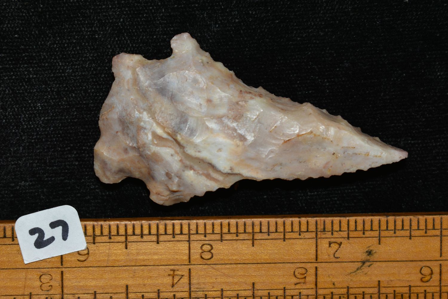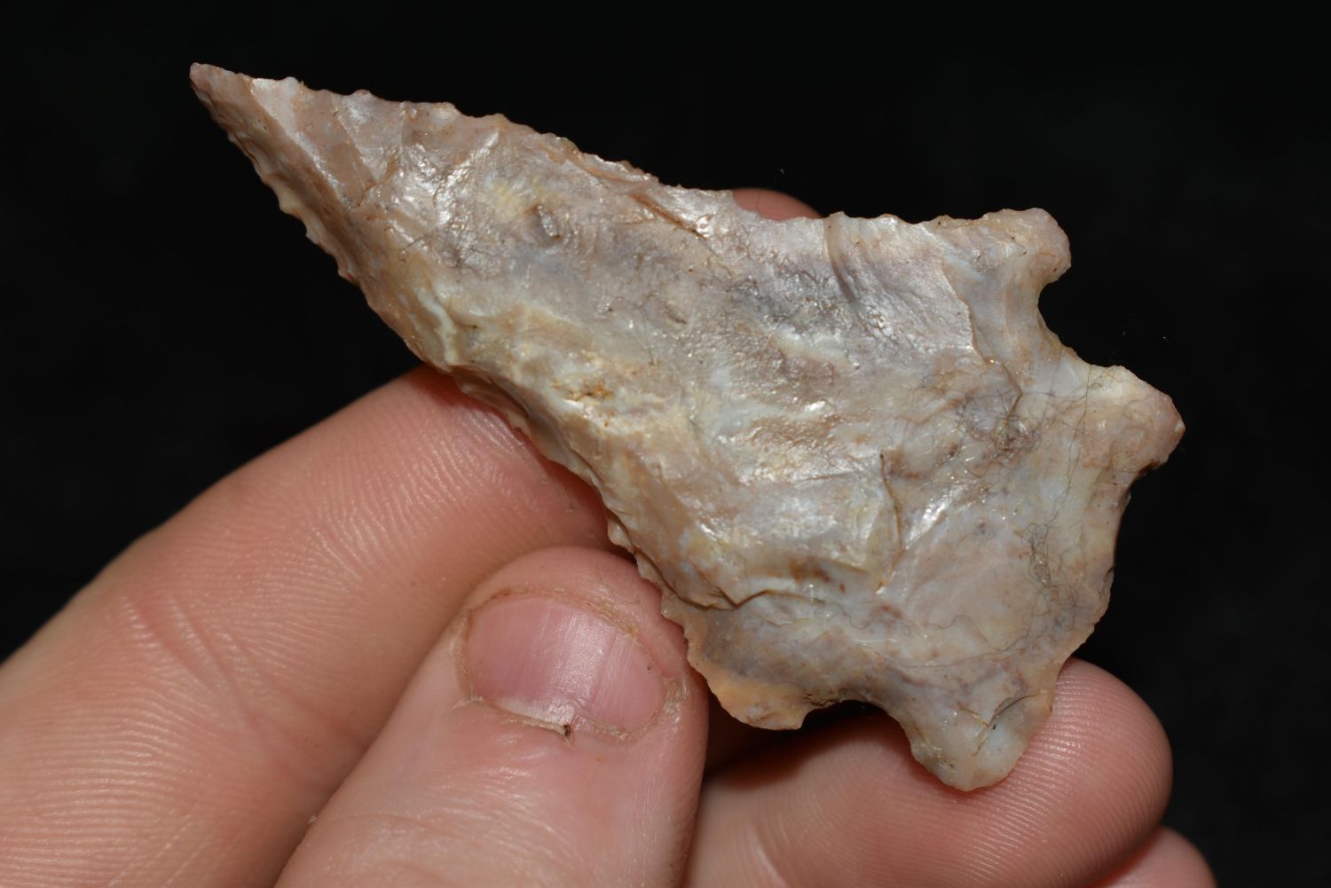 2 1/2" STEEPLY BEVELED ARCHIAC CORNERNOTCH FOUND IN LINCOLN COUNTY MISSOURI, FOUND BY JAMES COOKSEY, NATIVE AMERICAN ARROWHEAD, INDIAN ARTIFACT