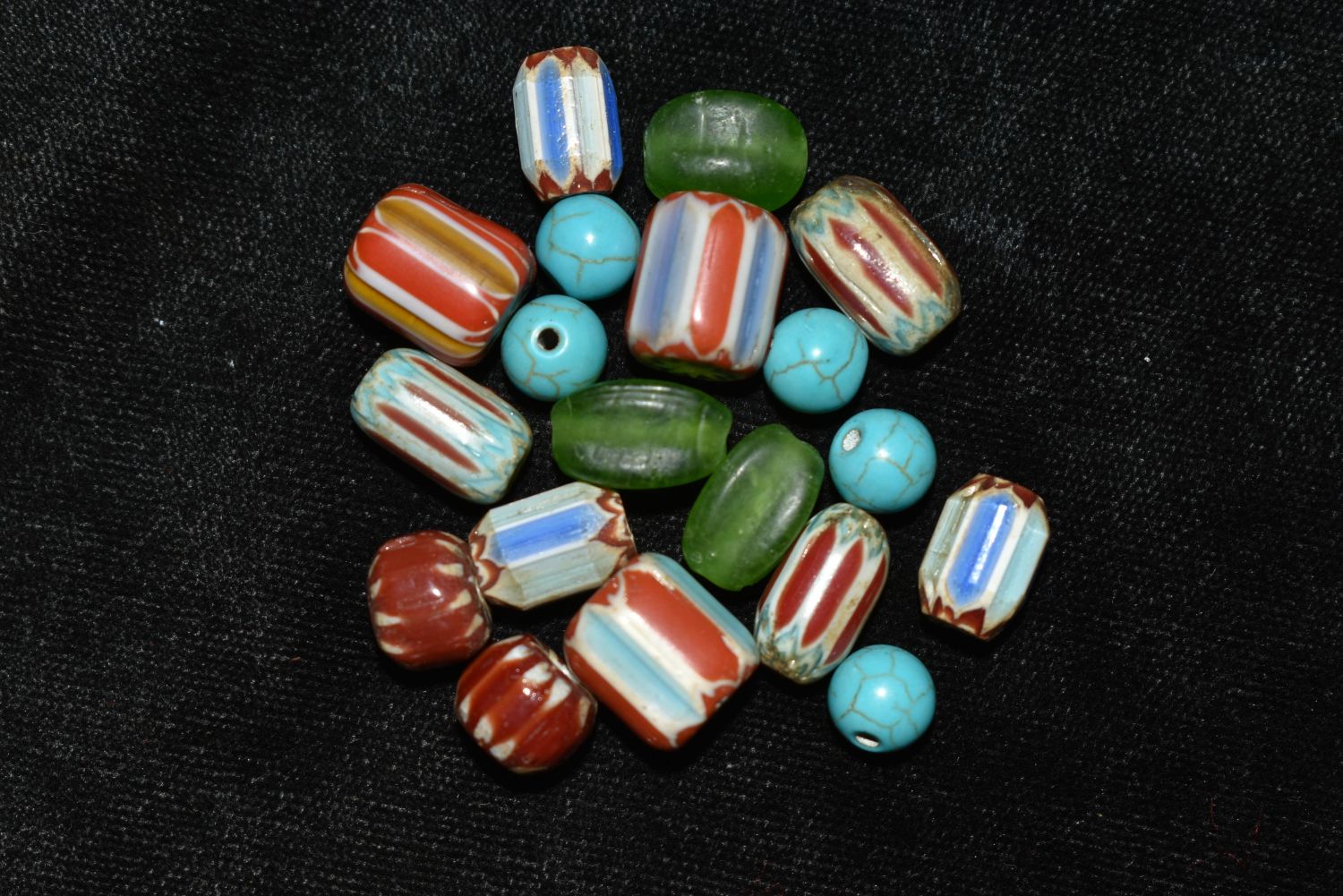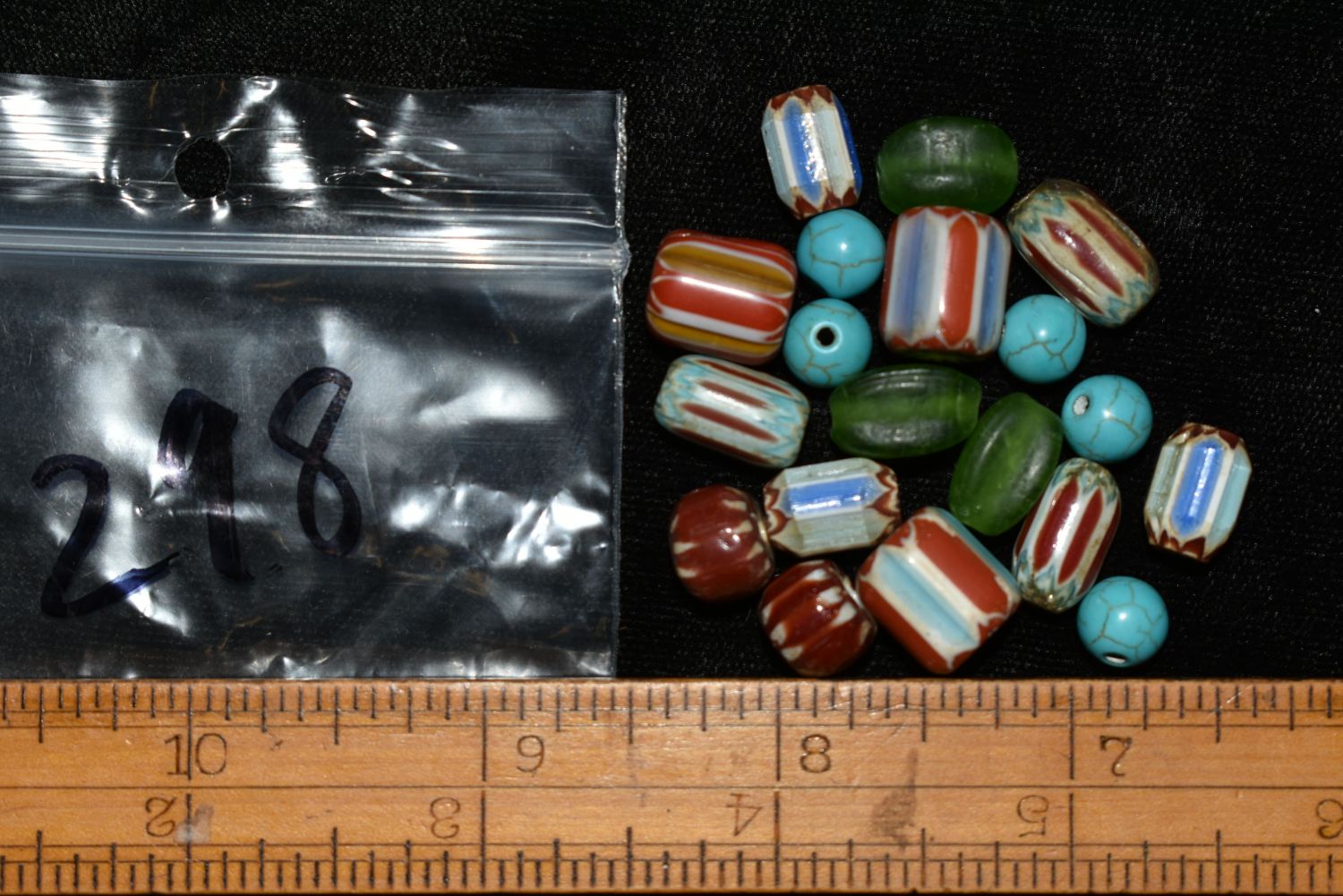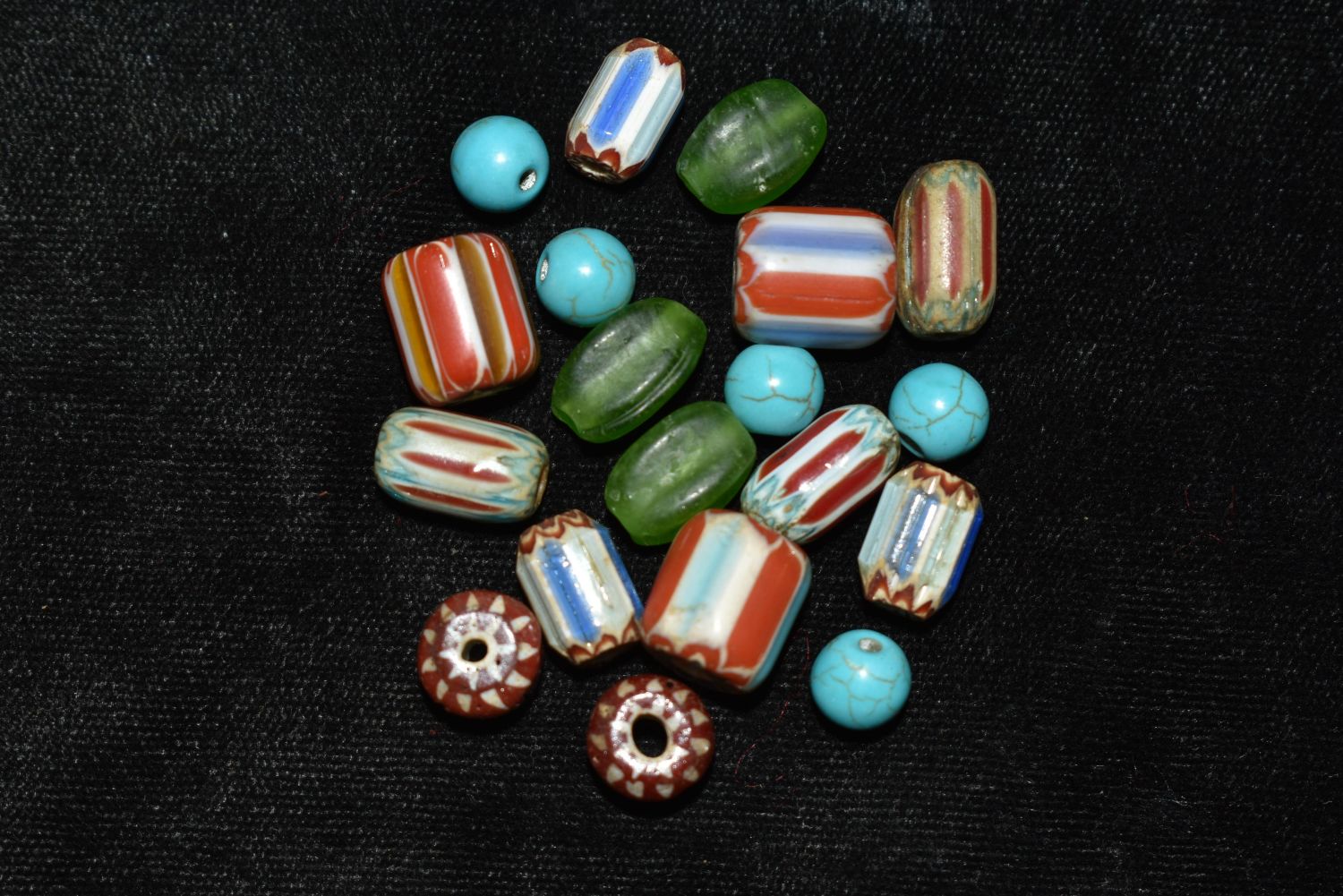 LOT OF HISTORIC CHEVRON TRADE BEADS FOUND IN NORTHERN ALABAMA, NICE COLORFUL GROUP, NATIVE AMERICAN ARROWHEAD, INDIAN ARTIFACT