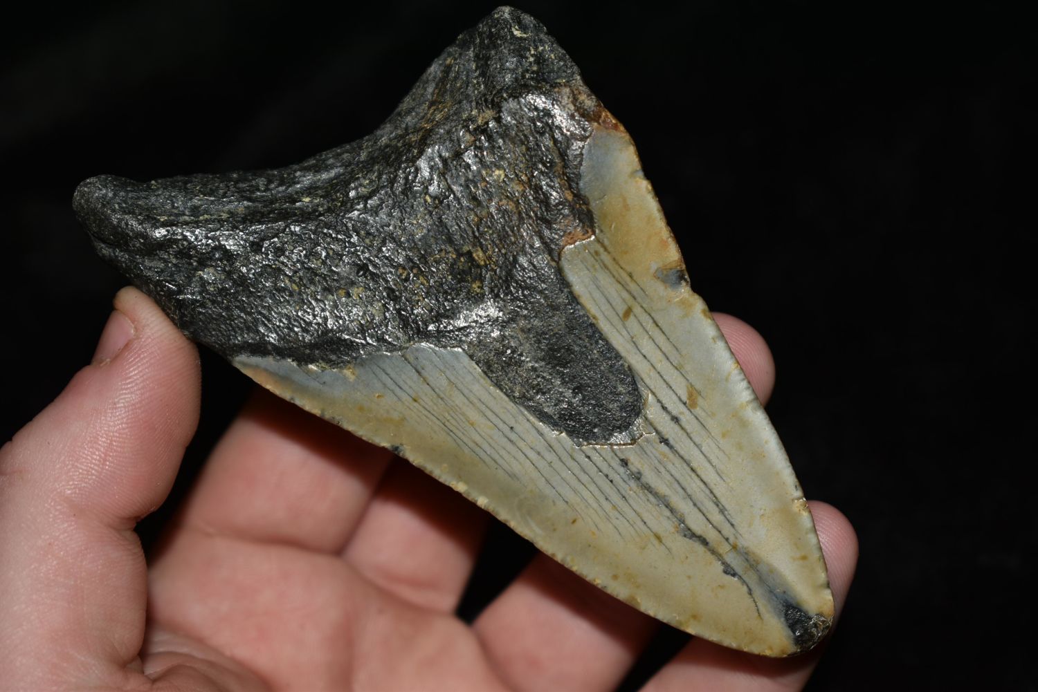 HUGE 4 1/4" LONG MEGALODON FOSSIL SHARK TOOTH ARTIFACT