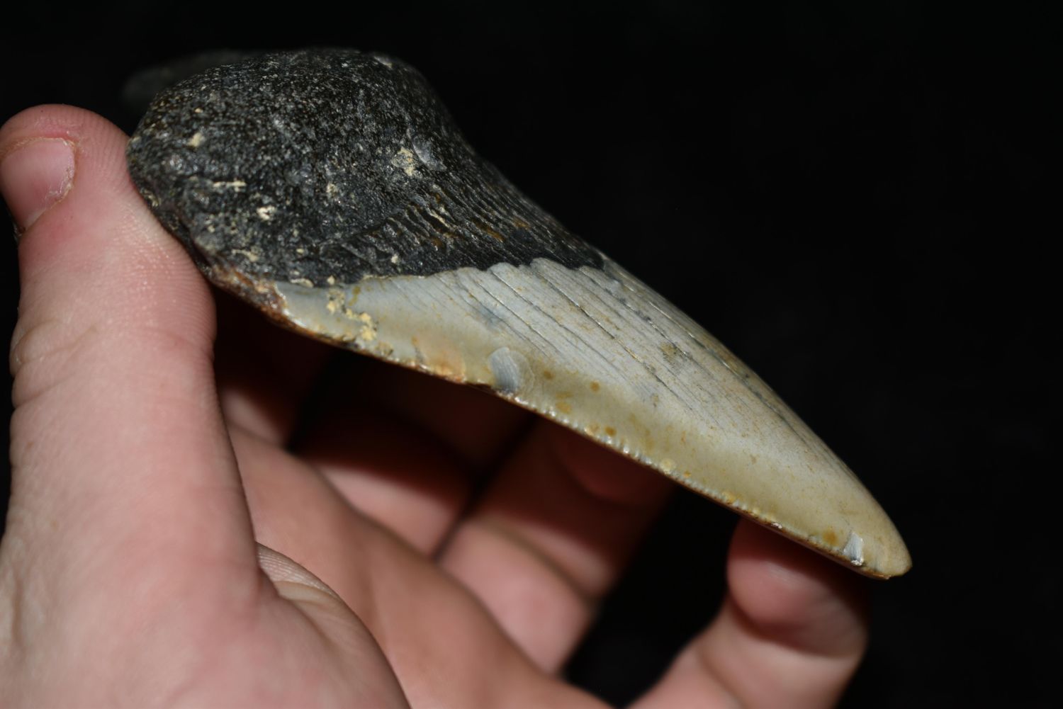 HUGE 4 1/4" LONG MEGALODON FOSSIL SHARK TOOTH ARTIFACT FOUND OFF THE COAST OF THE CAROLINAS, NATIVE AMERICAN ARROWHEAD, INDIAN ARTIFACT