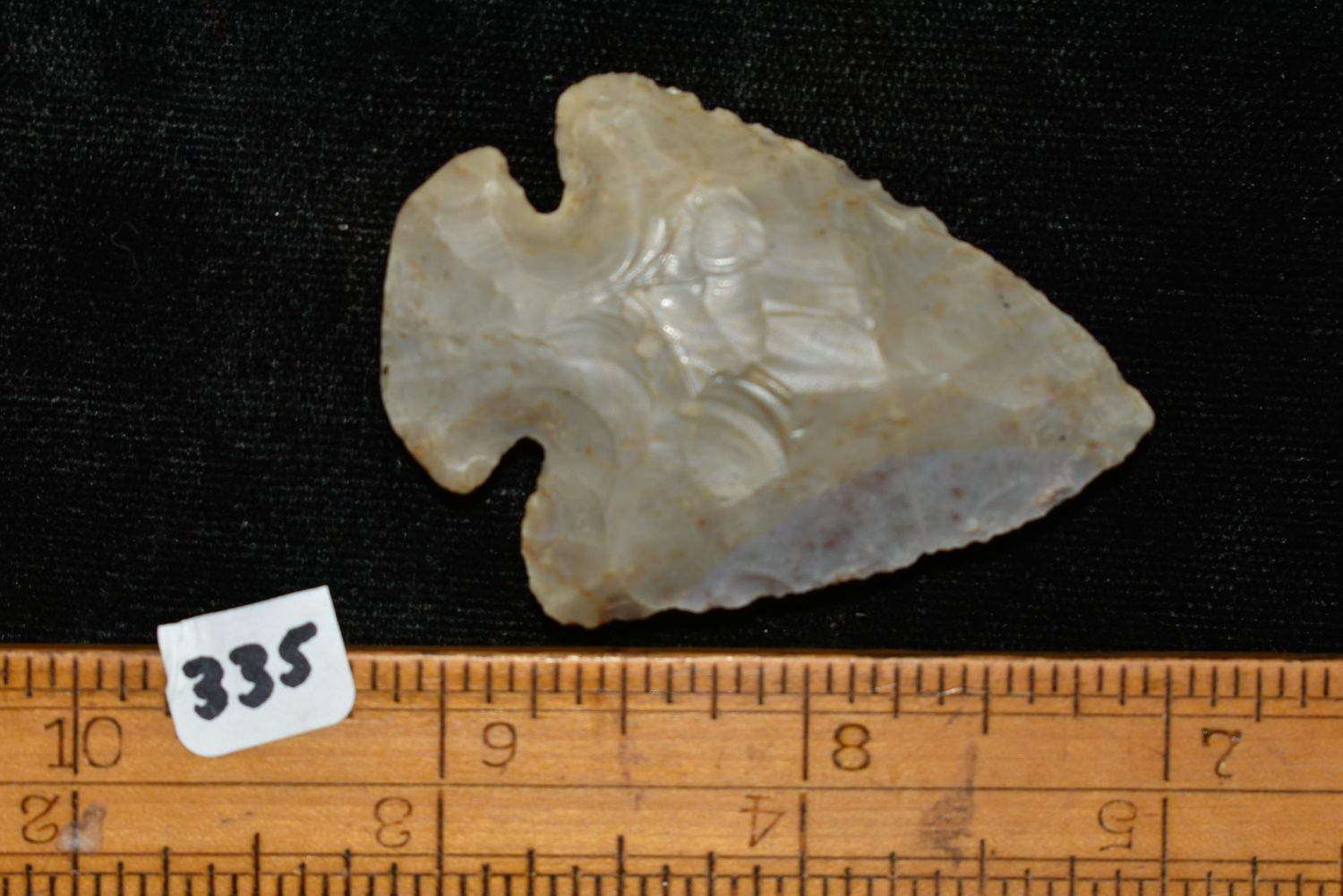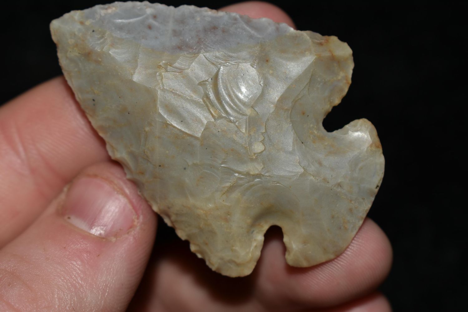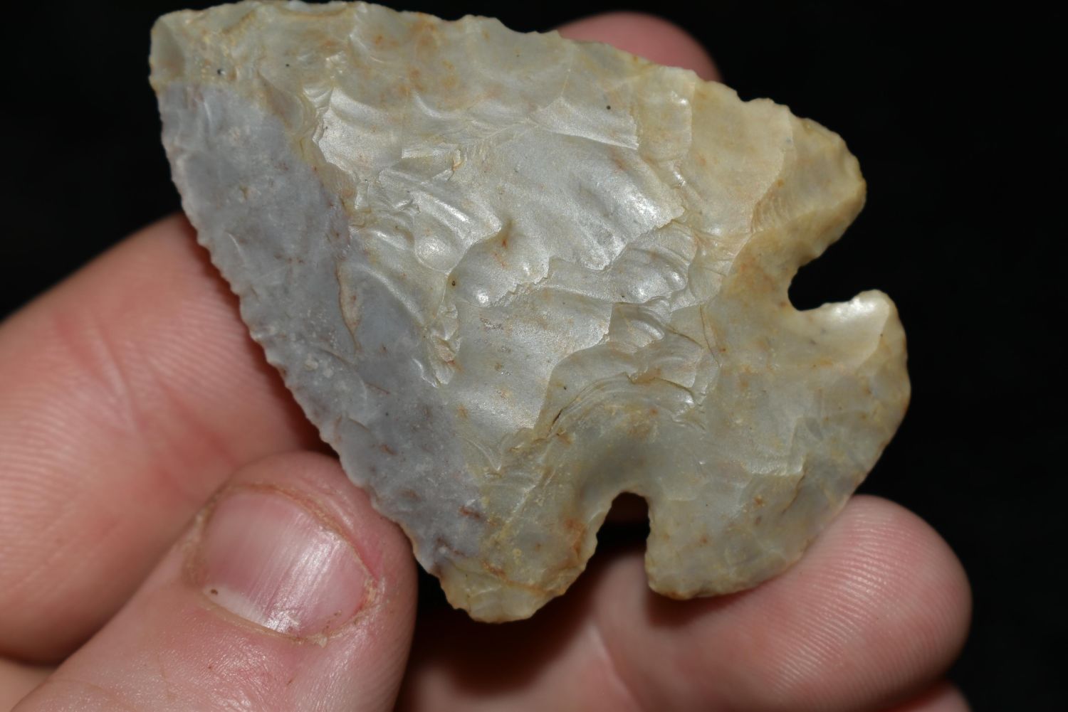 2 1/8" LONG FLINT RIDGE DOVETAIL FOUND IN FRANKLIN COUNTY OHIO, NICE CLASSIC SHAPE, NATIVE AMERICAN ARROWHEAD, INDIAN ARTIFACT