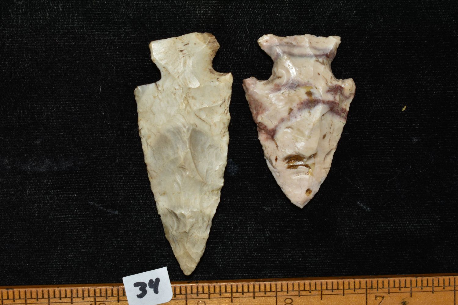 PAIR OF ARCHAIC POINTS FOUND IN LINCOLN COUNTY MISSOURI, LONGEST IS 2 5/8", FOUND BY JAMES COOKSEY, NATIVE AMERICAN ARROWHEAD, INDIAN ARTIFACT