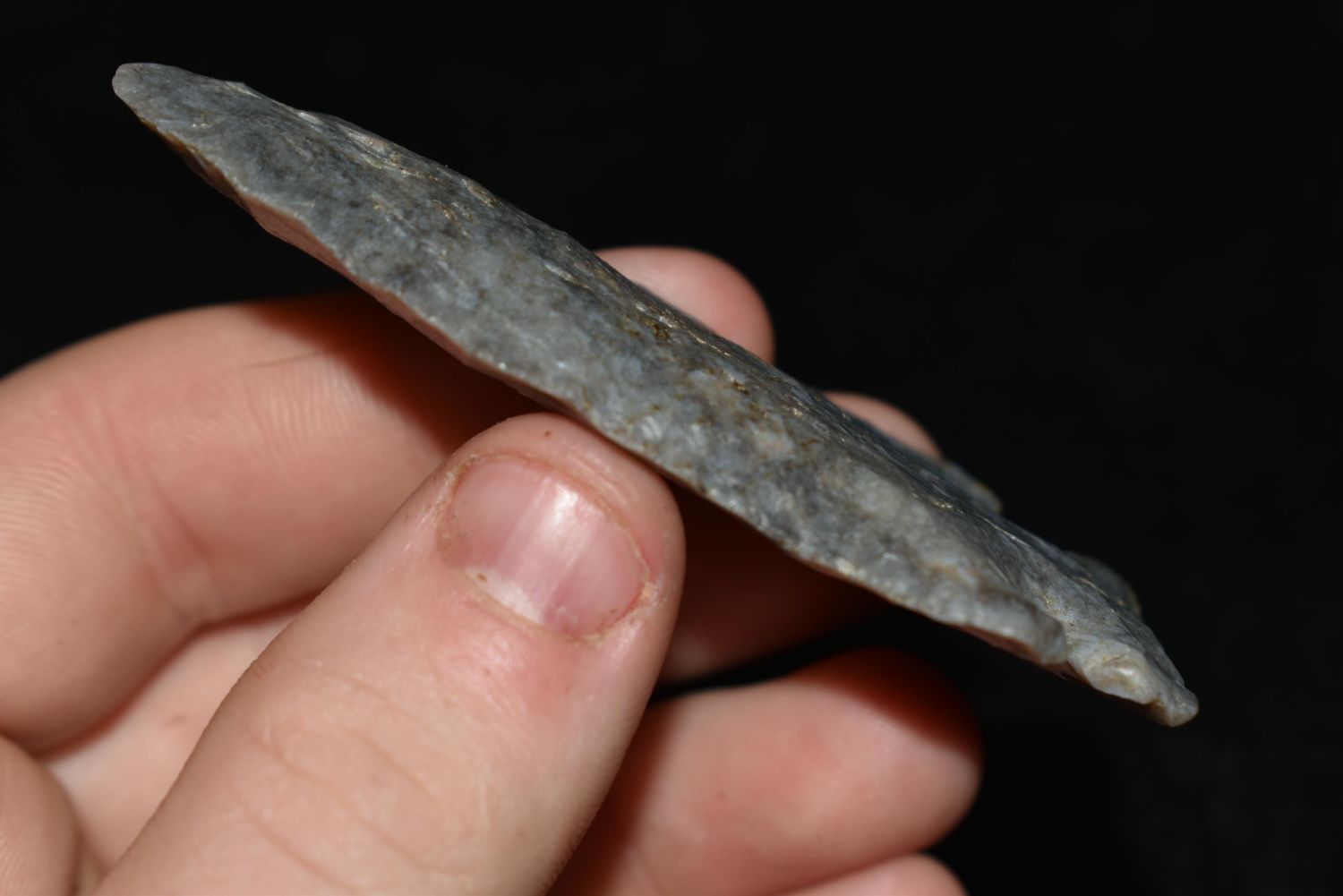 3" ARCHAIC BEVEL / THEBES FOUND IN COSHOCTAN COUNTY OHIO, NATIVE AMERICAN ARROWHEAD, INDIAN ARTIFACT
