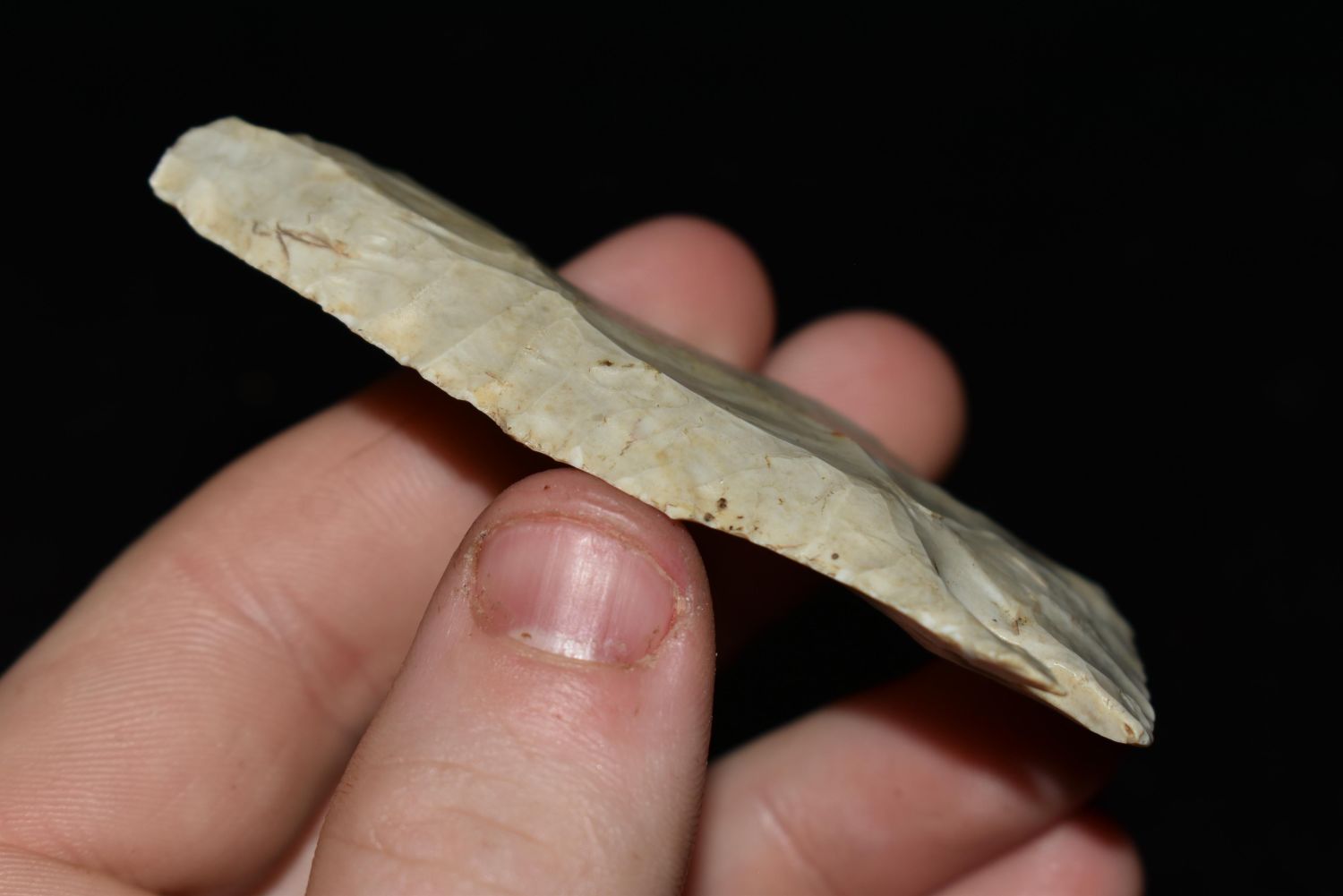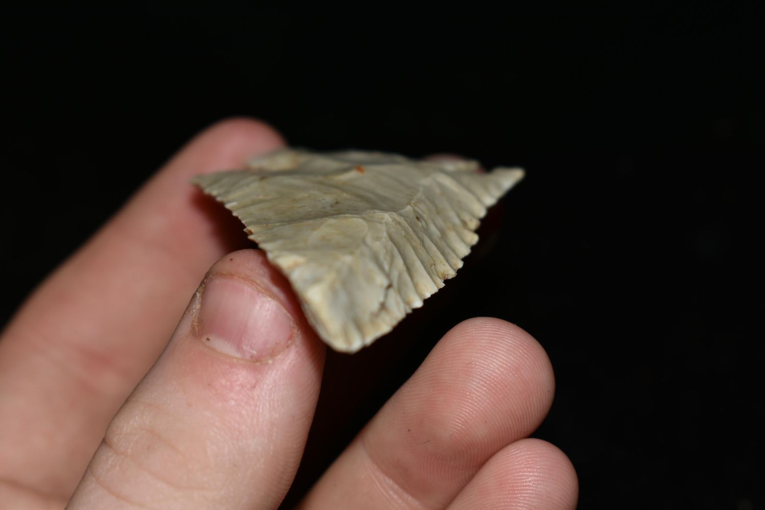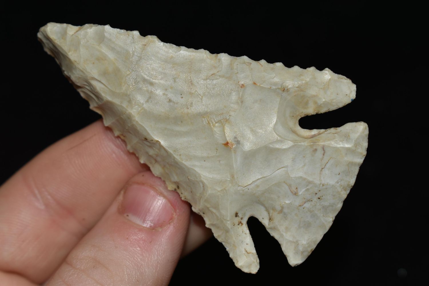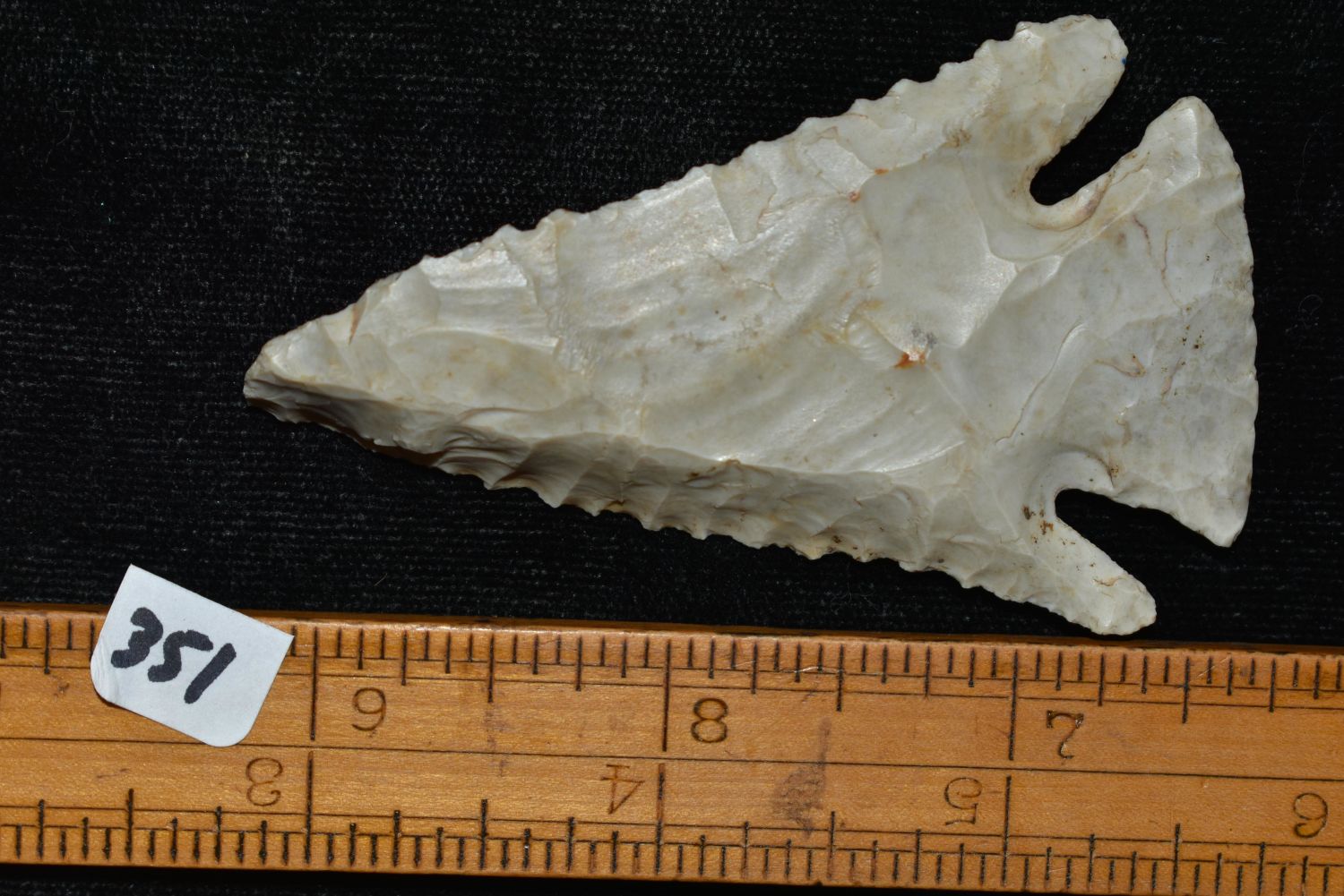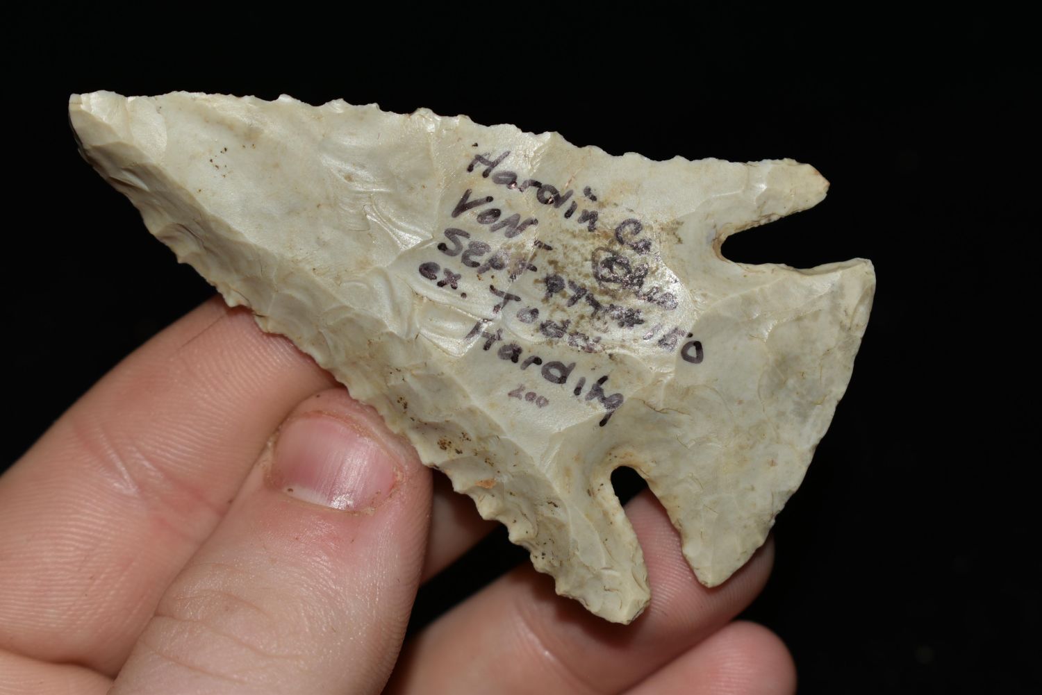 2 7/8" LONG FLINT RIDGE LOST LAKE FOUND IN HARDIN COUNTY OHIO, NICE BEVELS, EX VON, HARDING, NATIVE AMERICAN ARROWHEAD, INDIAN ARTIFACT