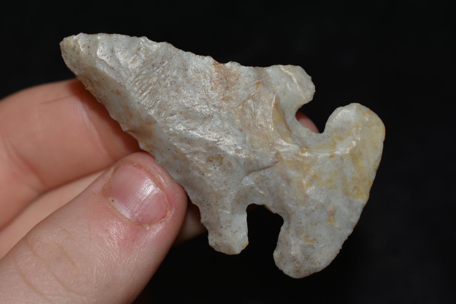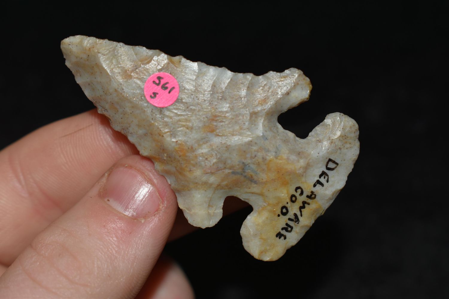 2 5/8" FLINT RIDGE E-NOTCH THEBES FOUND IN DELAWARE COUNTY OHIO, GREAT EXAMPLE, NATIVE AMERICAN ARROWHEAD, INDIAN ARTIFACT