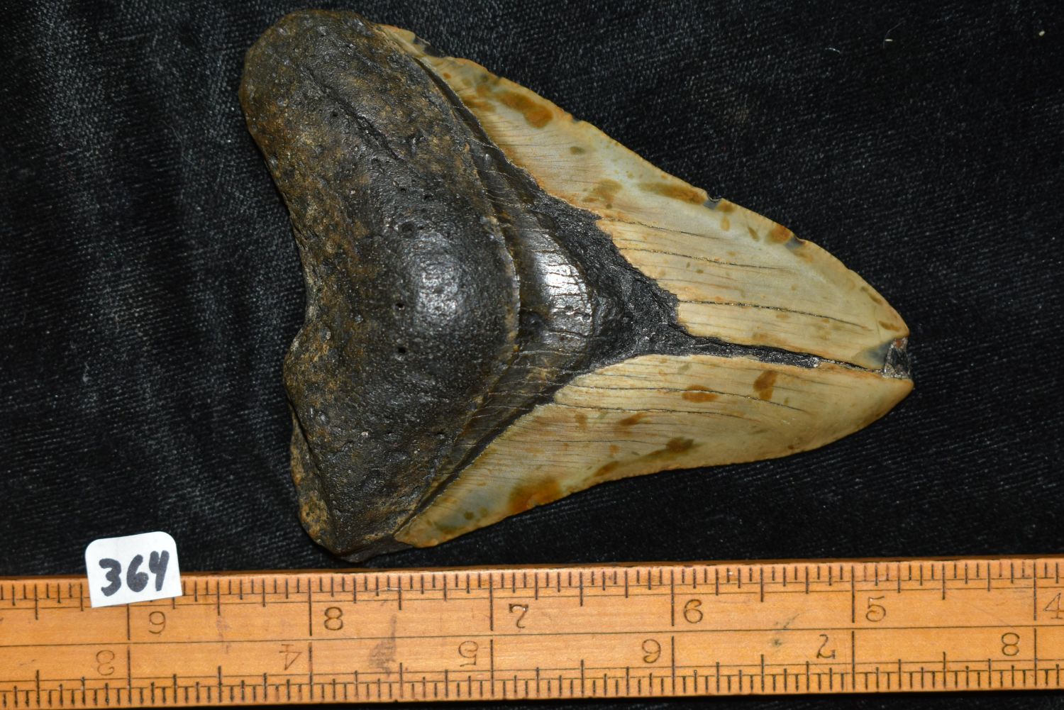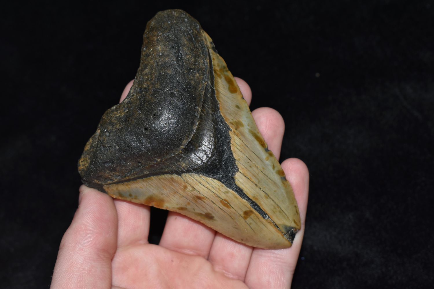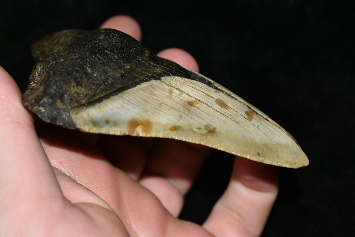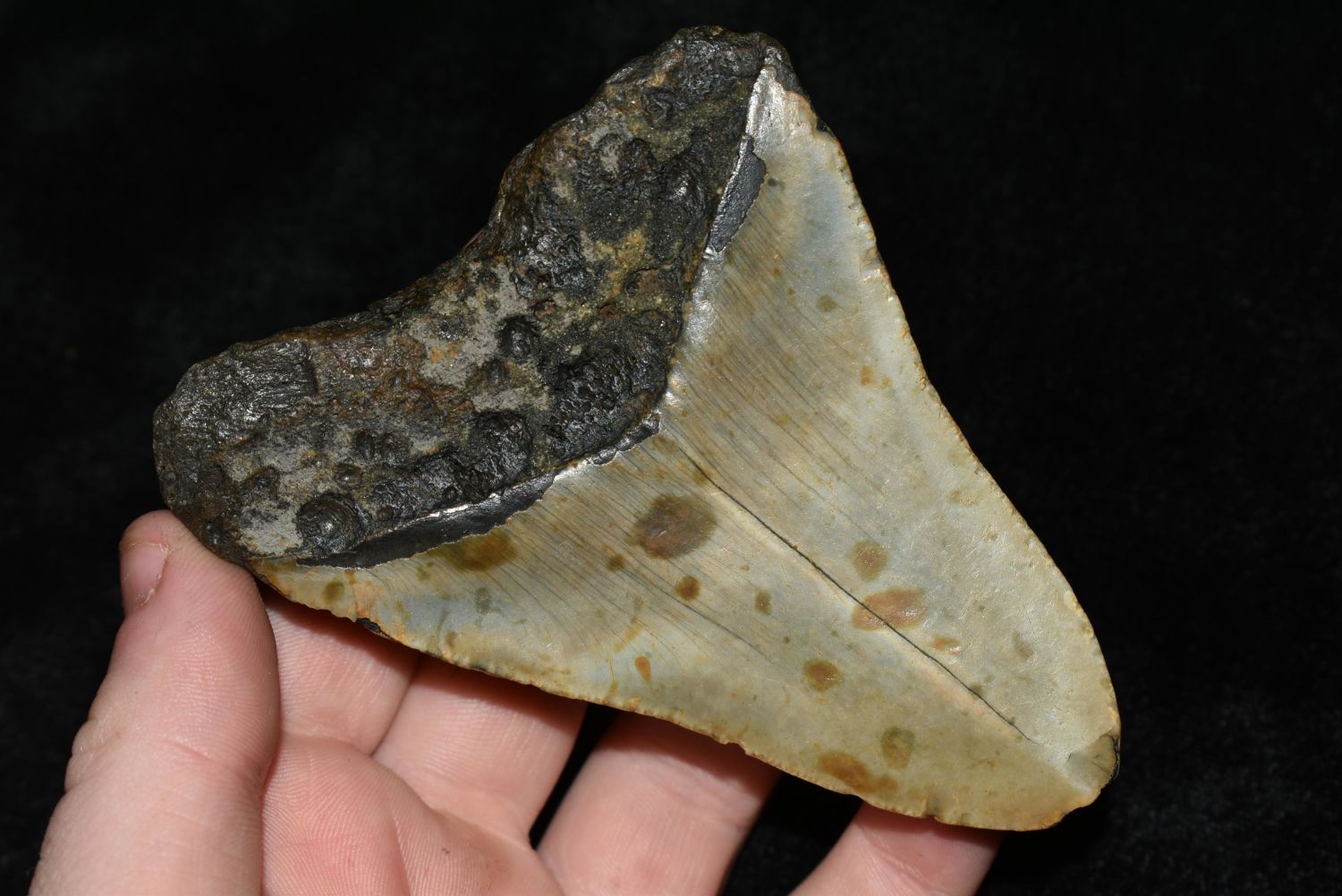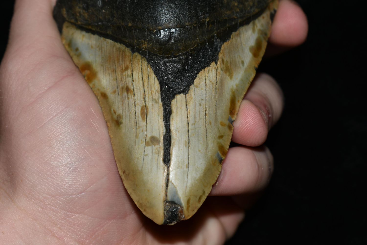 HUGE 4" LONG MEGALODON FOSSIL SHARK TOOTH ARTIFACT FOUND OFF THE COAST OF THE CAROLINAS, NATIVE AMERICAN ARROWHEAD, INDIAN ARTIFACT