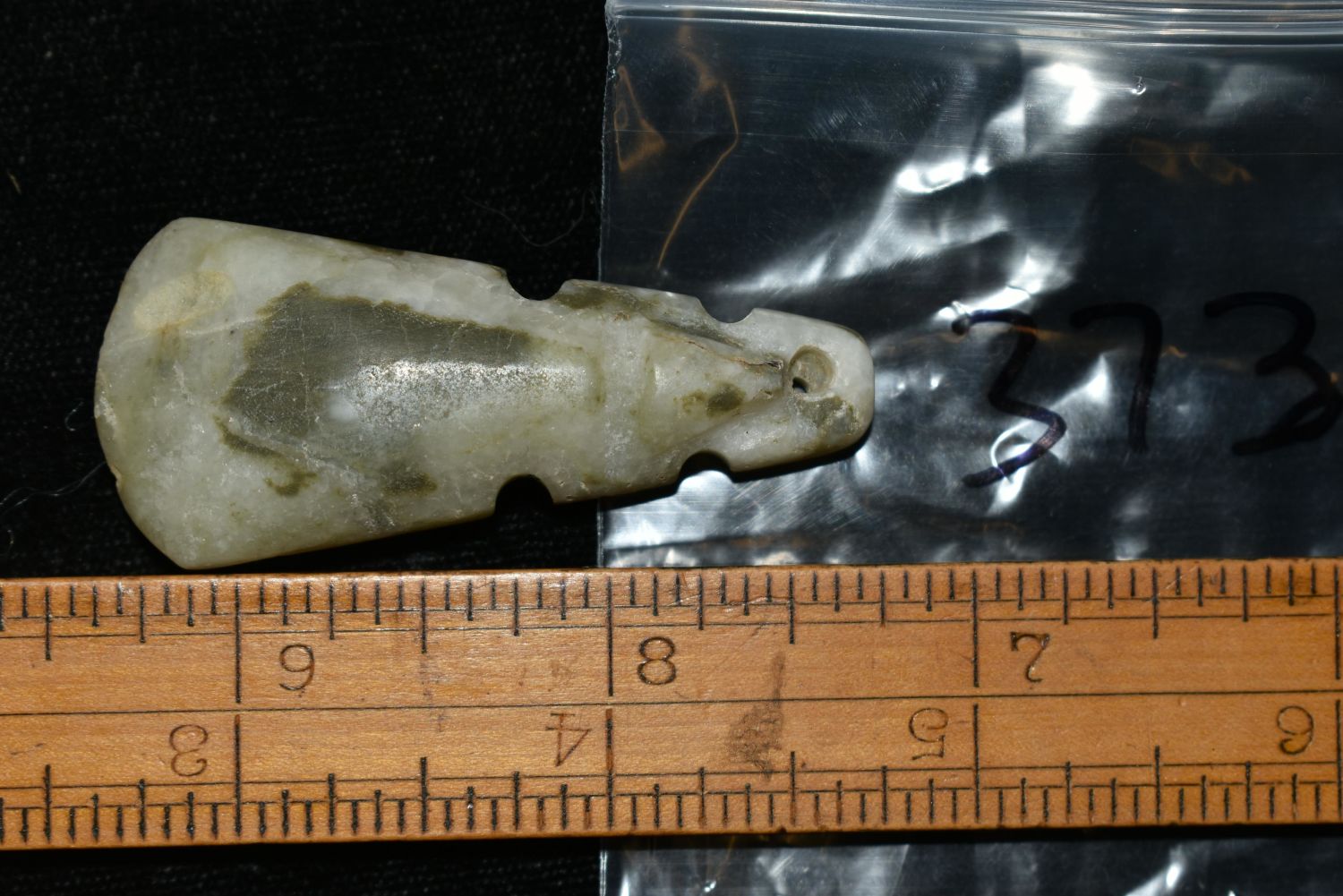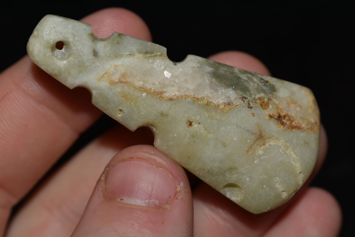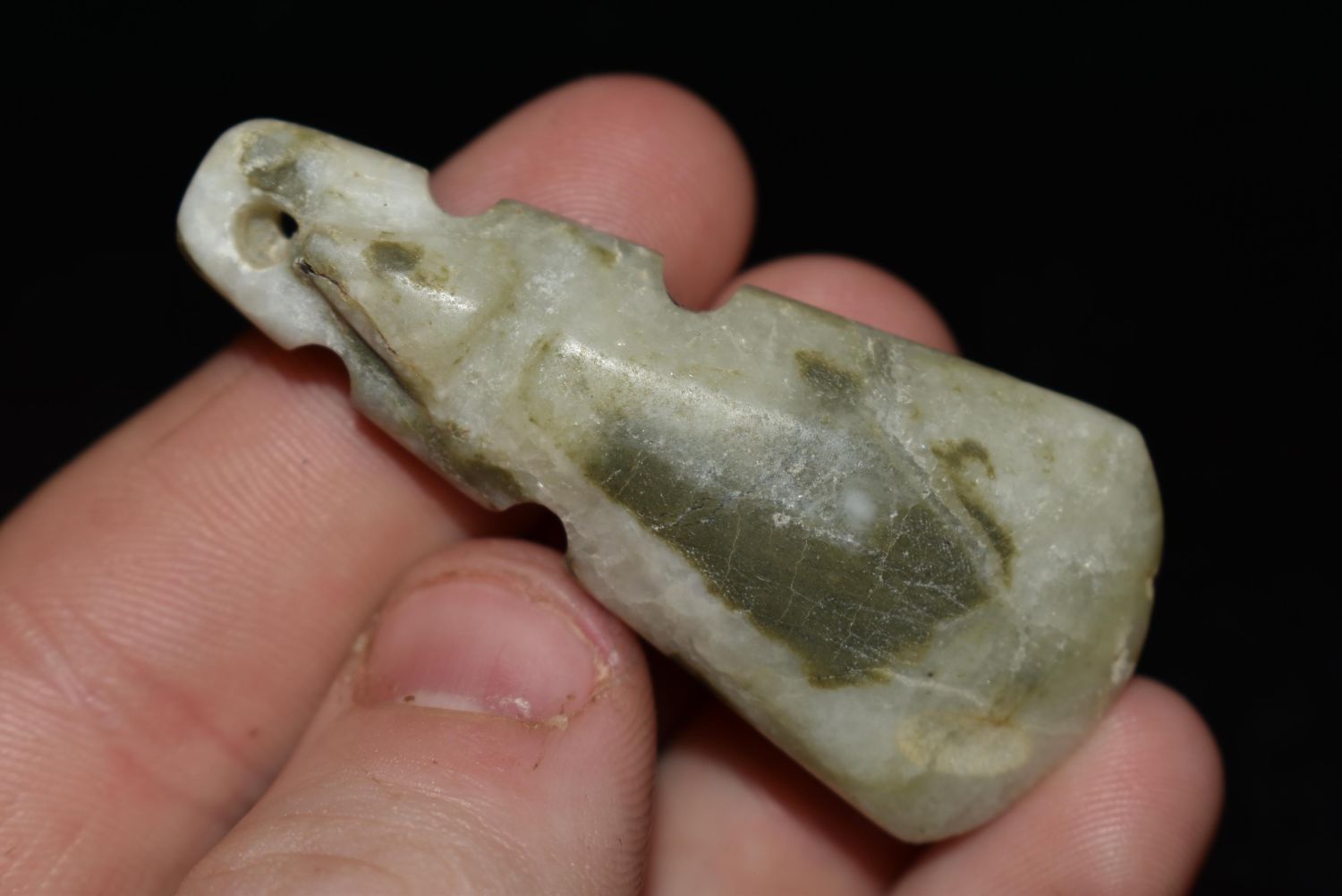 2 1/8" LONG TRANSLUCENT JADE EFFIGY AXE GOD PENDANT FROM COSTA RICA Condition: 100% Guaranteed Authentic via our Return Policy & Found on Private Property