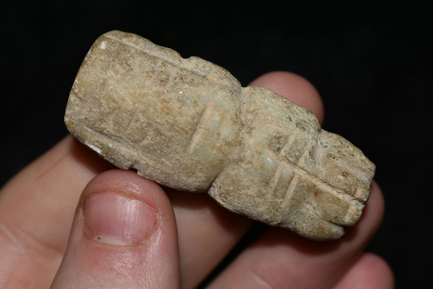 2" LONG JADE MIXTEC / TOLTEC AXE GOD EFFIGY PENDANT / GORGET, NICELY ENGRAVED EXAMPLE Condition: 100% Guaranteed Authentic via our Return Policy & Found on Private Property