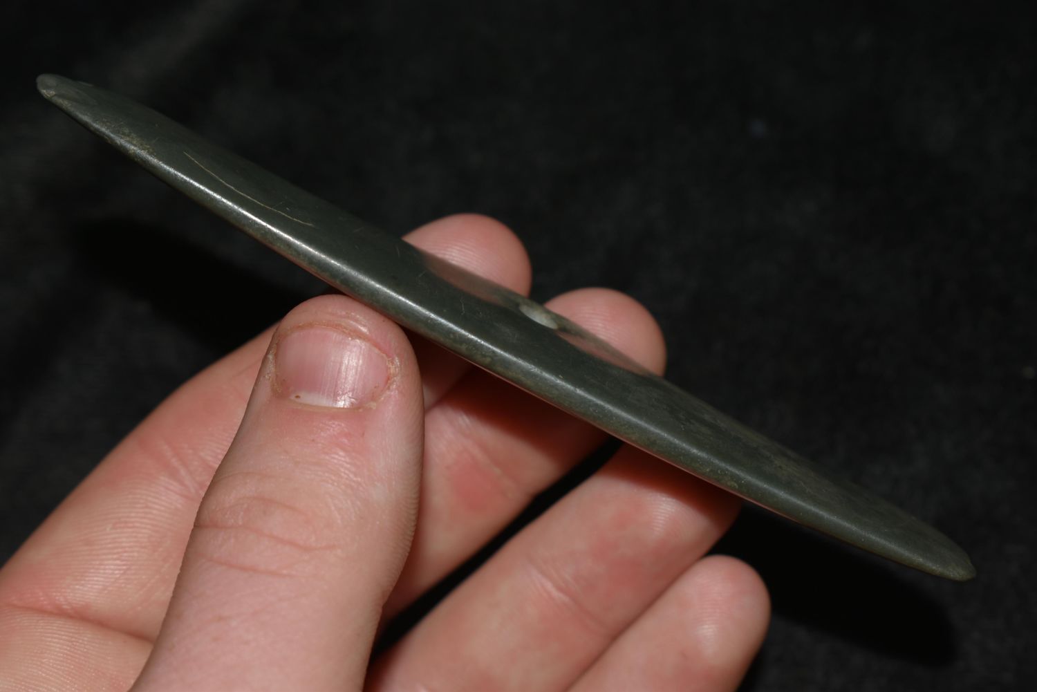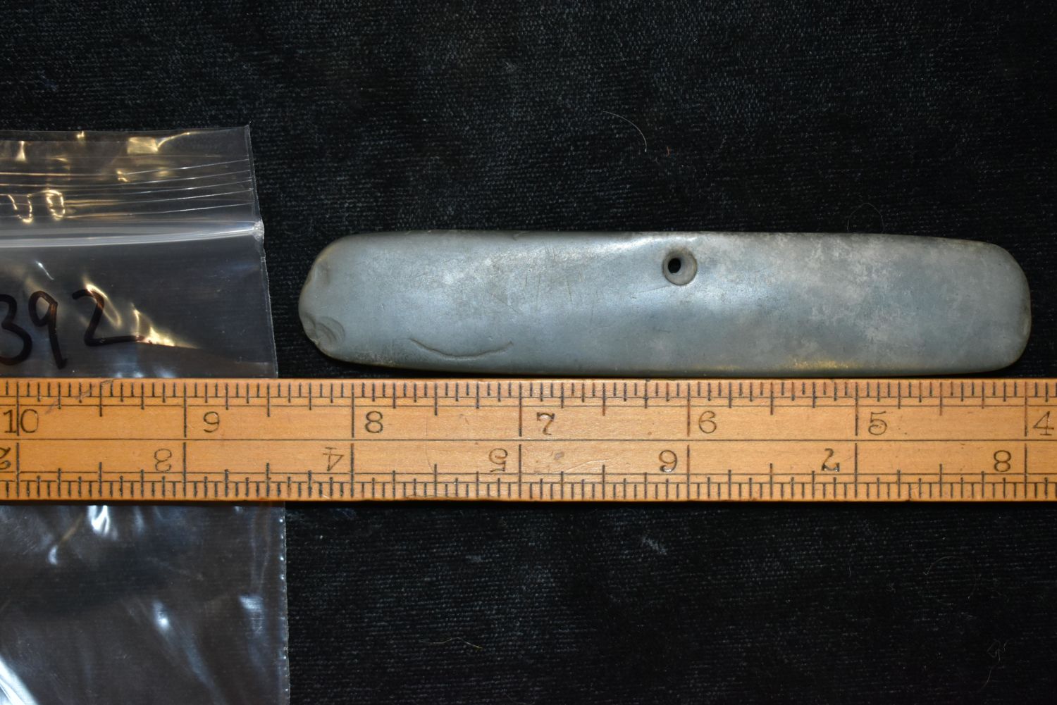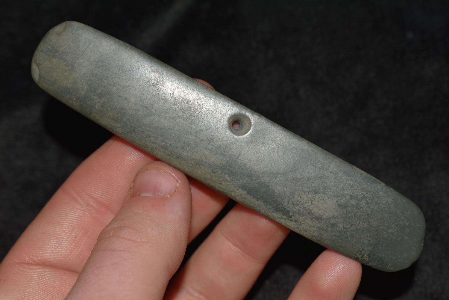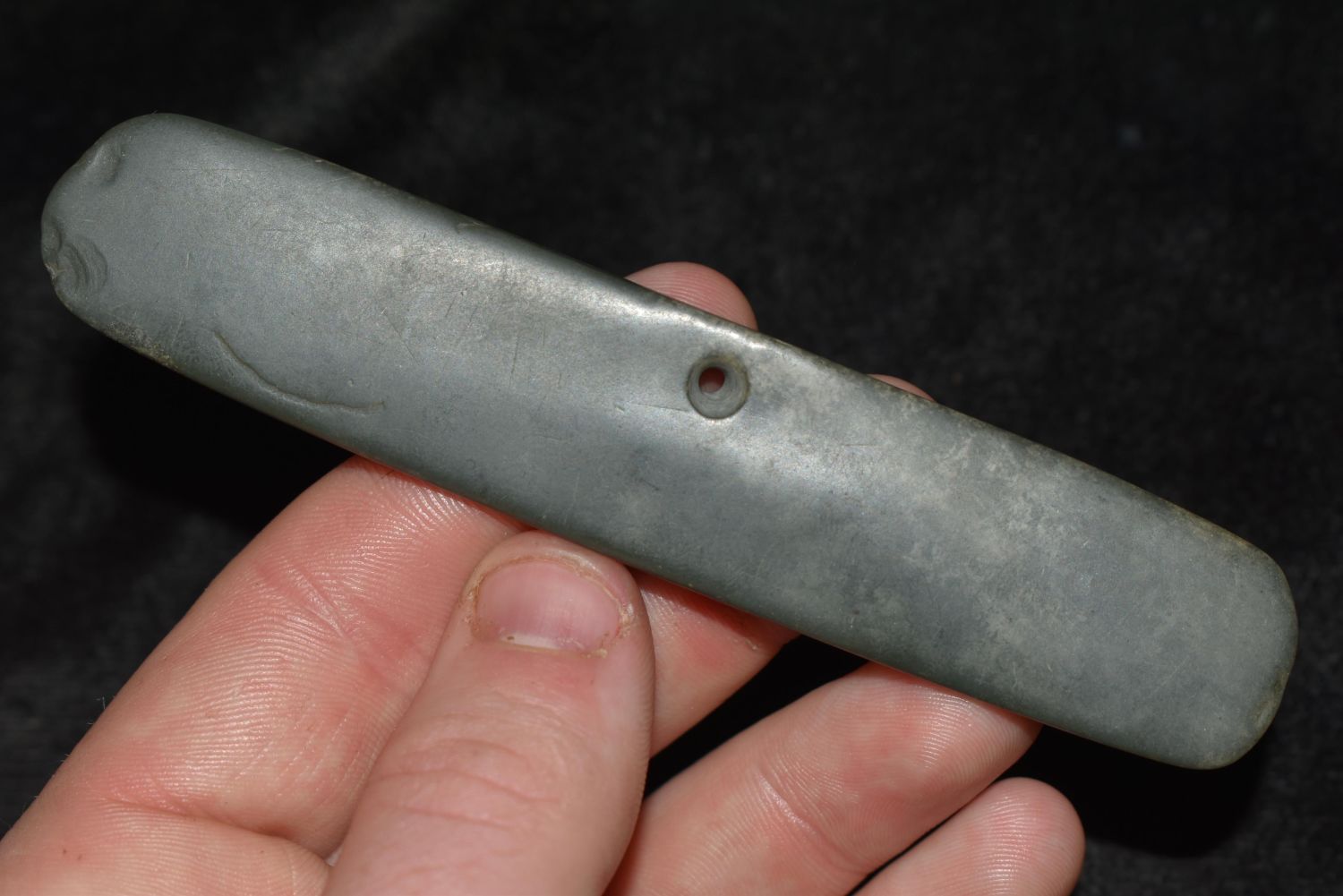 4 3/8" LONG PRE COLUMBIAN POLISHED JADE PENDANT / GORGET FROM MEXICO Condition: 100% Guaranteed Authentic via our Return Policy & Found on Private Property