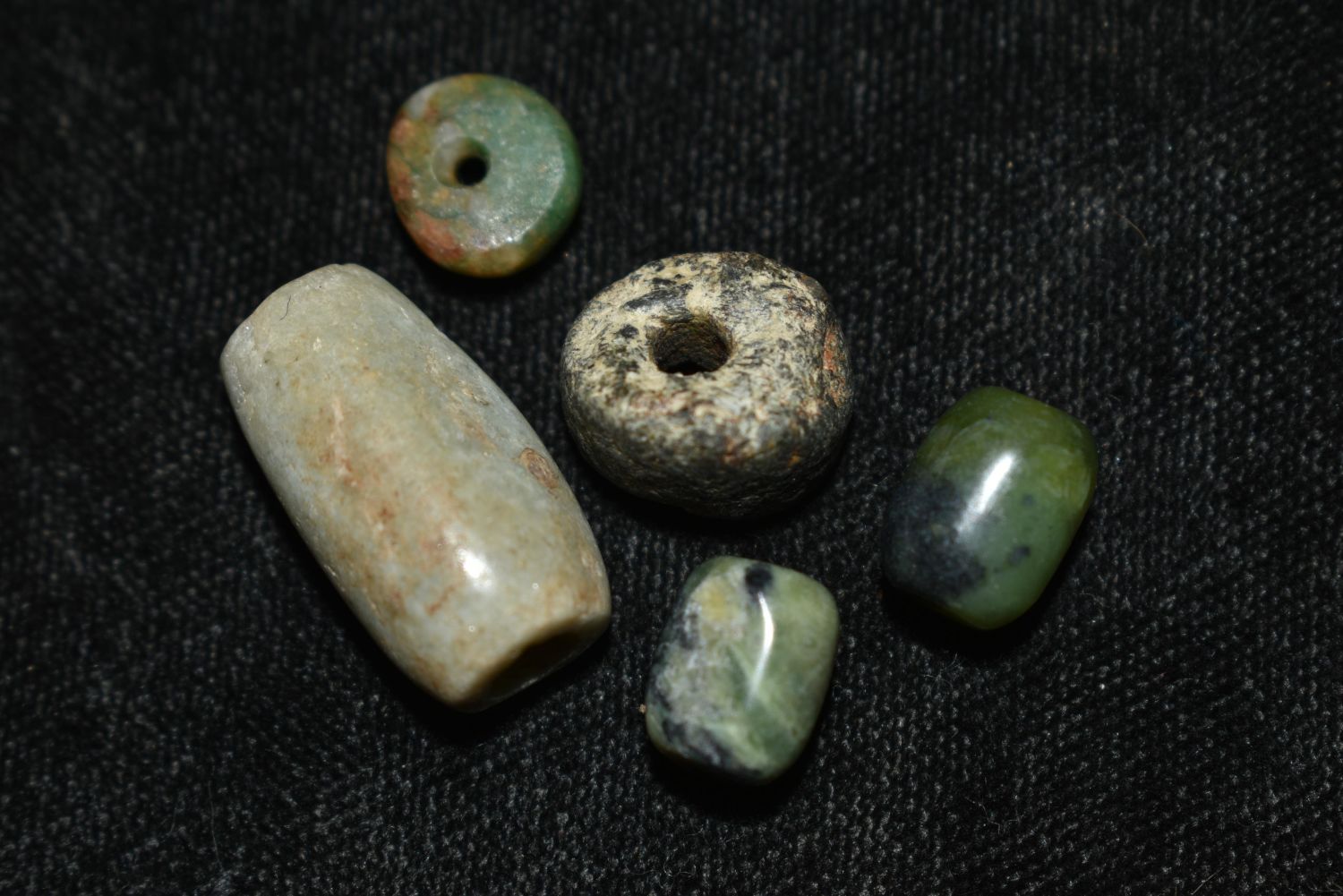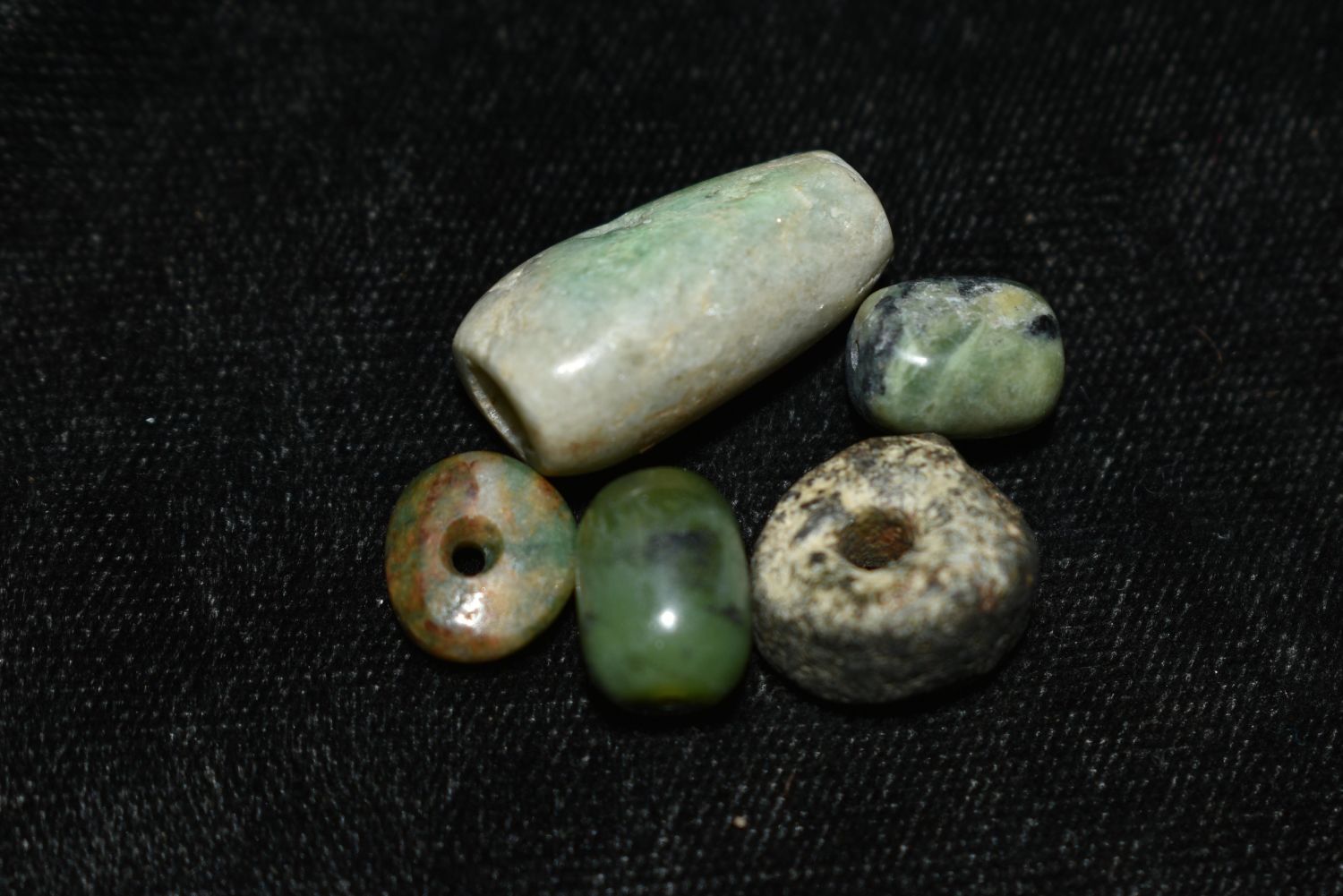 LOT OF 5 PRE COLUMBIAN MAYAN DRILLED JADE BEADS FROM MEXICO Condition: 100% Guaranteed Authentic via our Return Policy & Found on Private Property