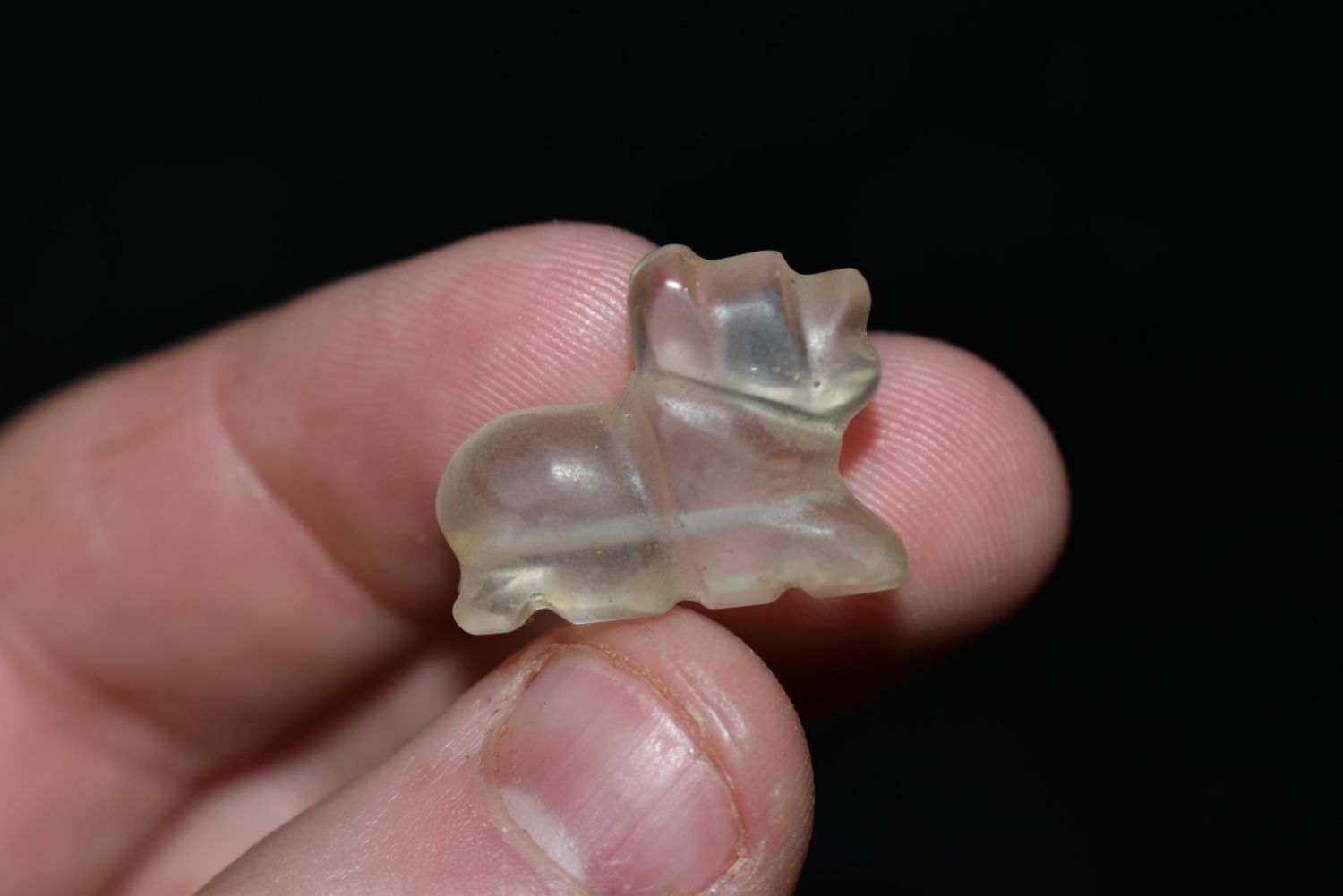 13/16" LONG PRE COLUMBIAN CRYSTAL QUARTZ JAGUAR ANIMAL