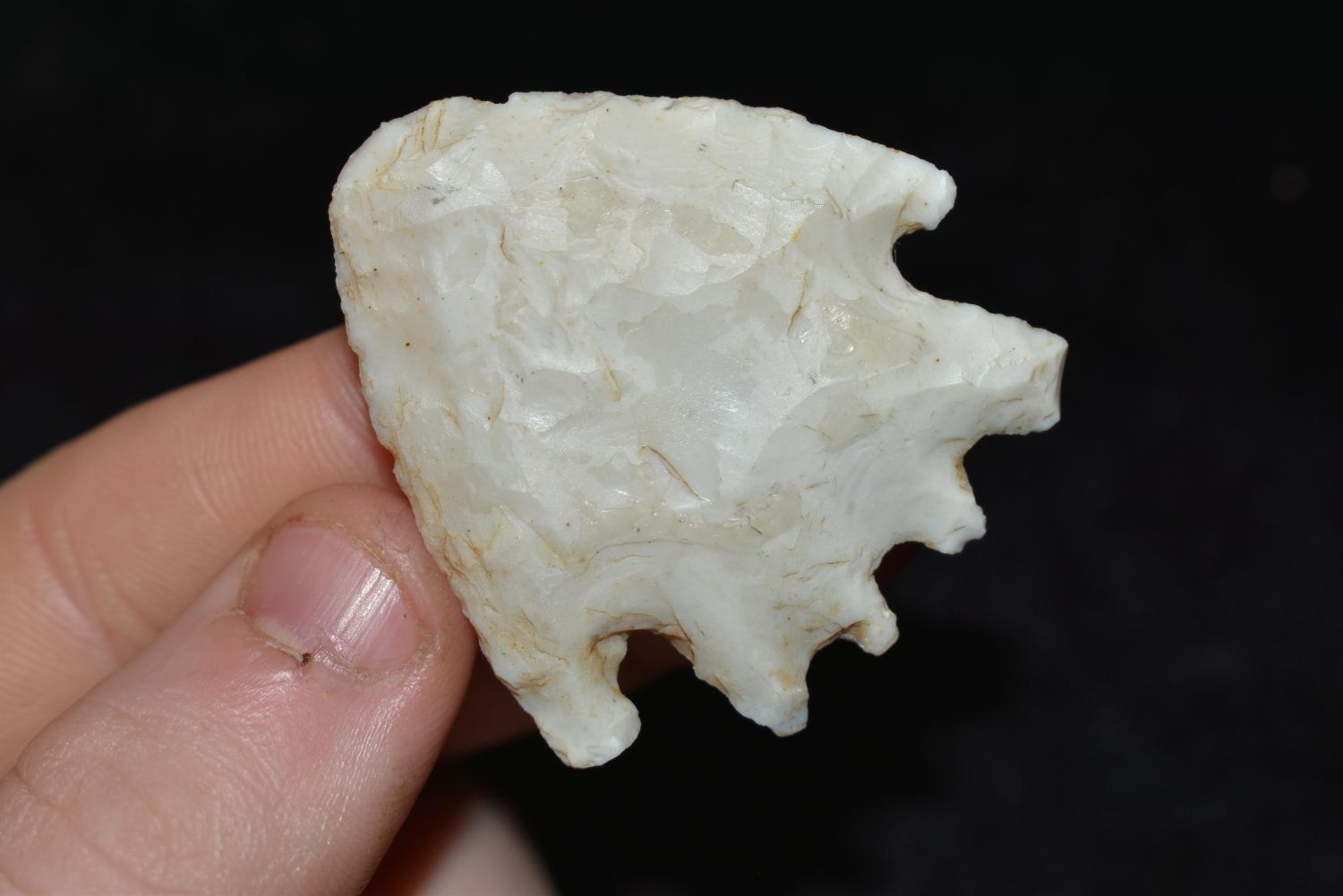 1 3/4" LONG FLINT ECCENTRIC MULTI NOTCHED ARROWHEAD FOUND IN ST CHARLES COUNTY MISSOURI, NATIVE AMERICAN ARROWHEAD, INDIAN ARTIFACT