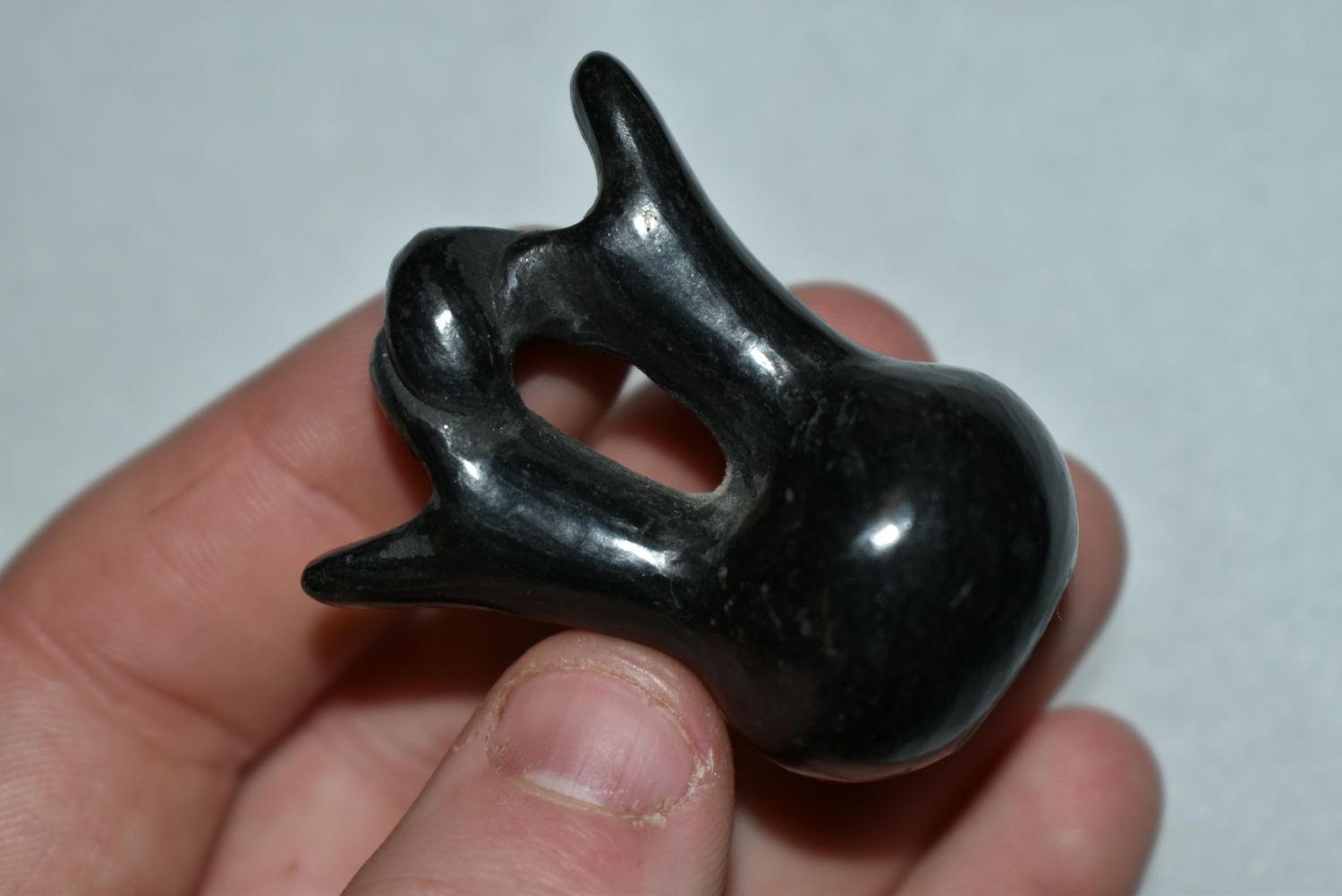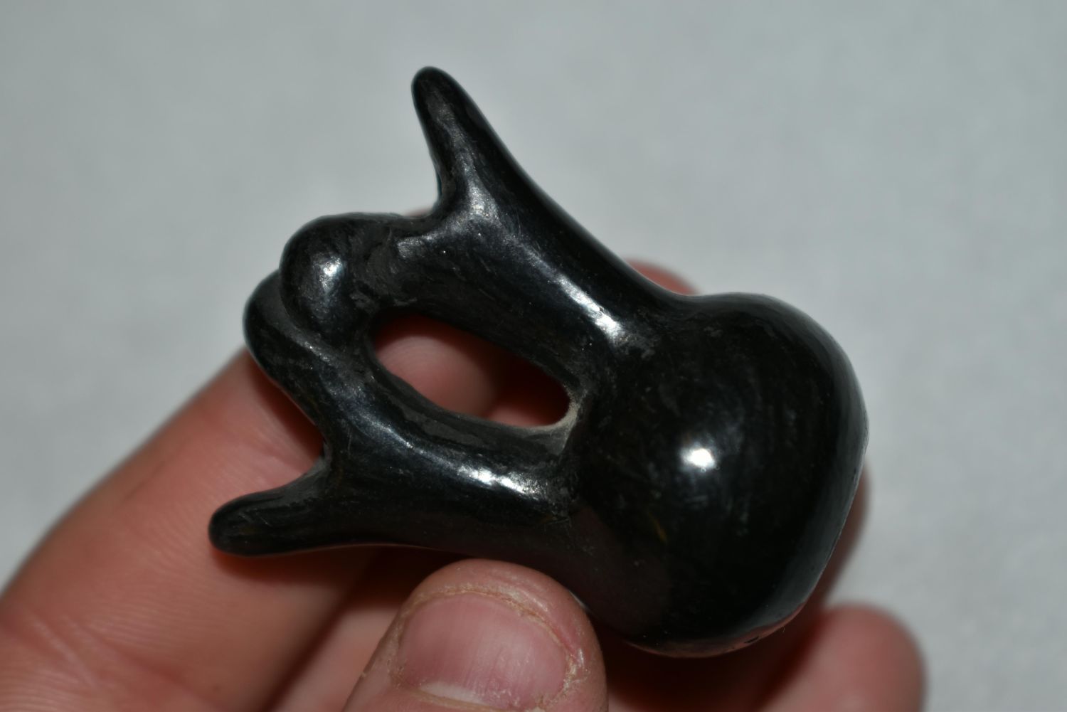 1 3/4" TALL MINIATURE WEDDING VASE SANTA CLARA BLACK POTTERY BOTTLE, SIGNED, GREAT VINTAGE EXAMPLE