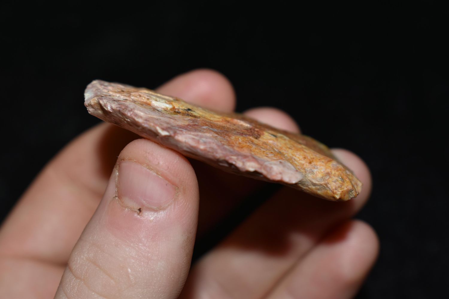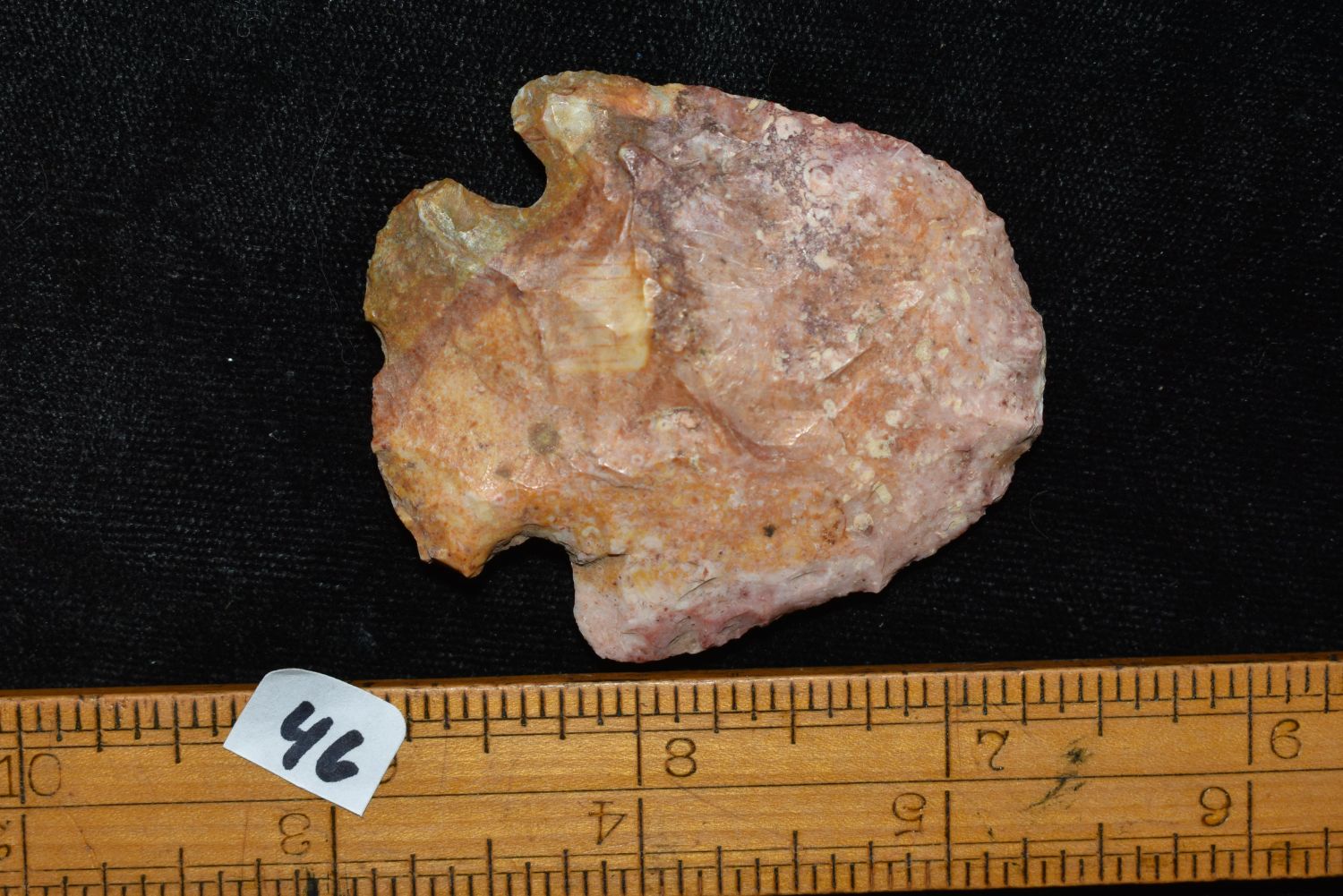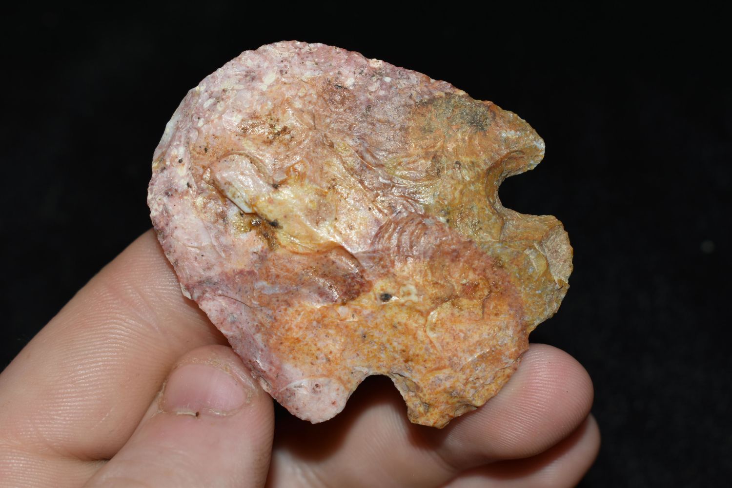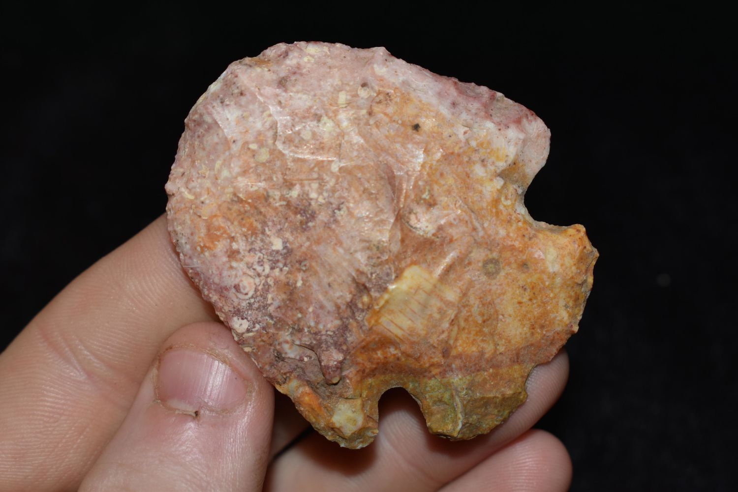 2 1/4" COLORFUL HOPEWELL SNYDERS BLUNT FOUND IN ST CHARLES COUNTY MISSOURI, FOUND BY JAMES COOKSEY, NATIVE AMERICAN ARROWHEAD, INDIAN ARTIFACT