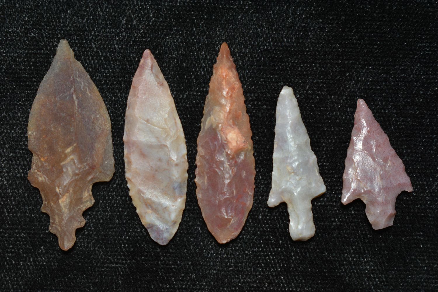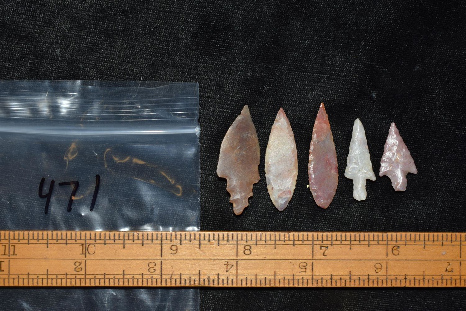 LOT OF 5 NEOLITHIC ARROWHEADS FROM THE SAHARA DESERT, NEOLITHIC ARROW PROJECTILE POINT, AFRICA