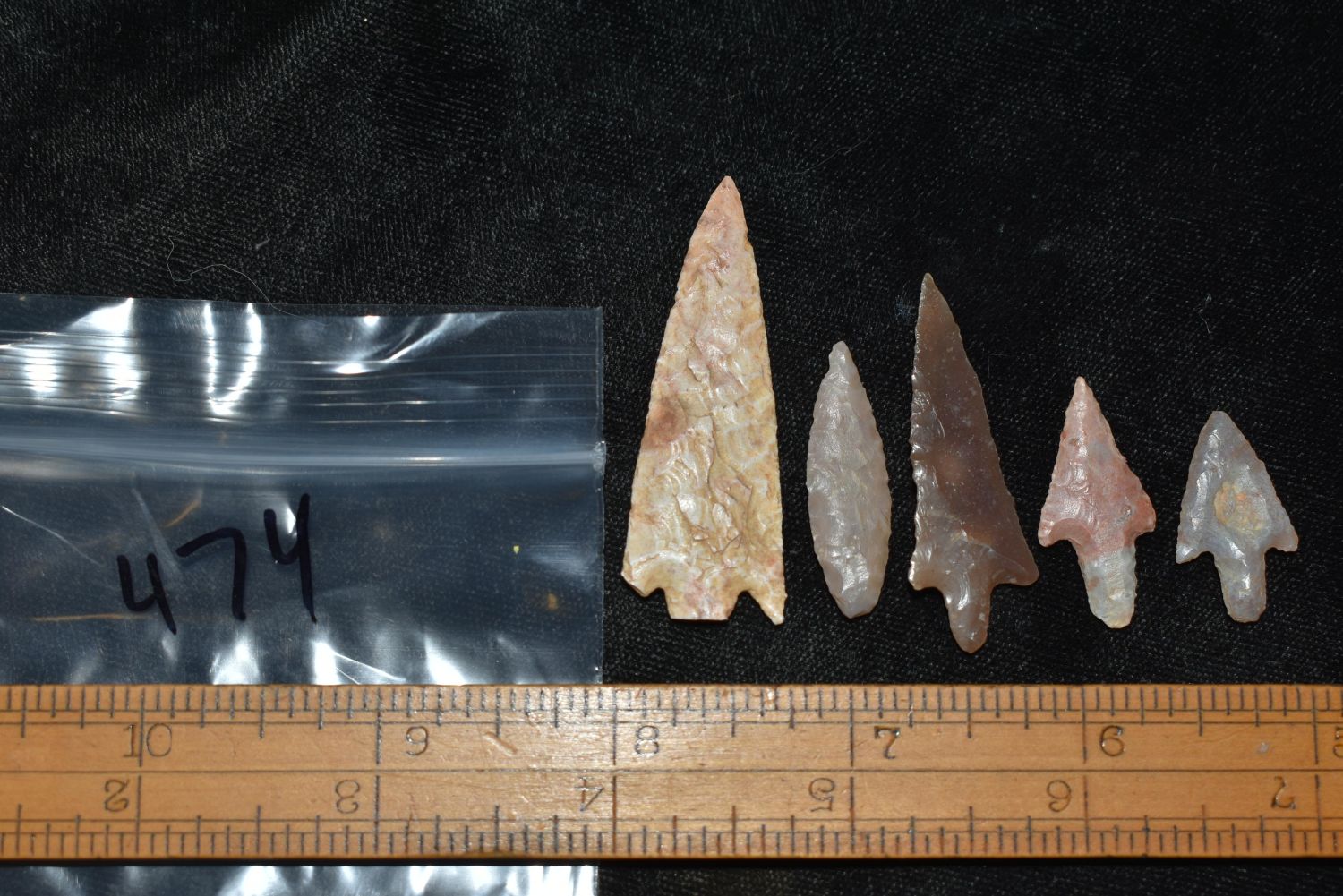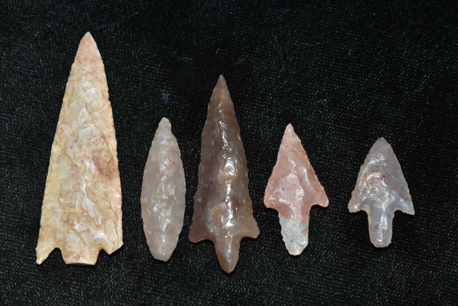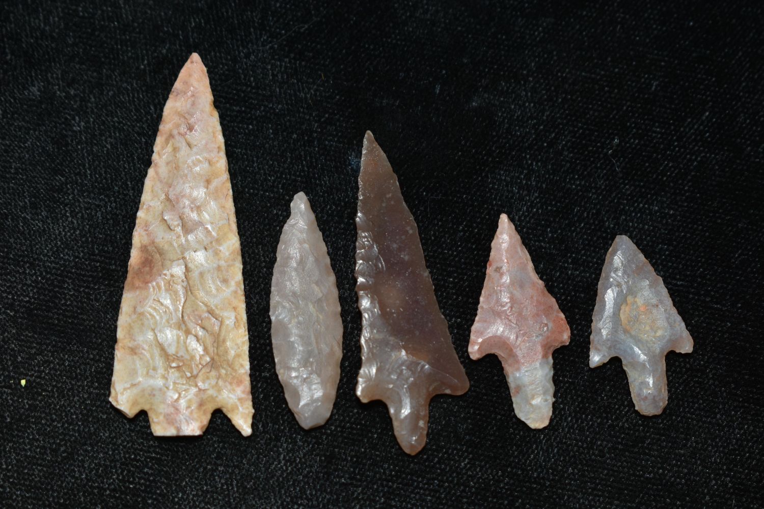 LOT OF 5 NEOLITHIC ARROWHEADS FROM THE SAHARA DESERT, NEOLITHIC ARROW PROJECTILE POINT, AFRICA