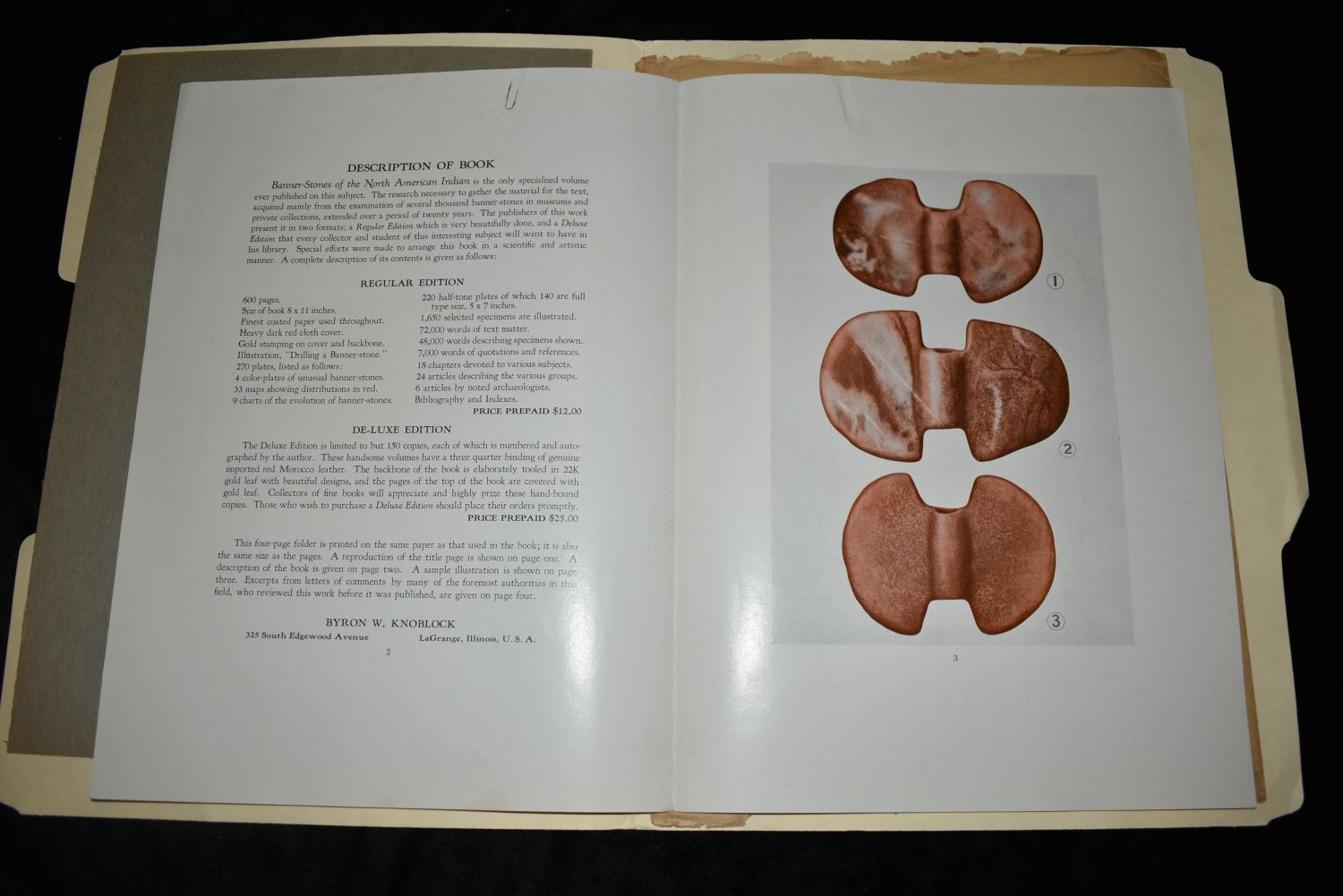 BANNERSTONES OF THE NORTH AMERICAN INDIAN PROSPECTUS, BYRON KNOBLOCK, 1939, FIRST EDITION,