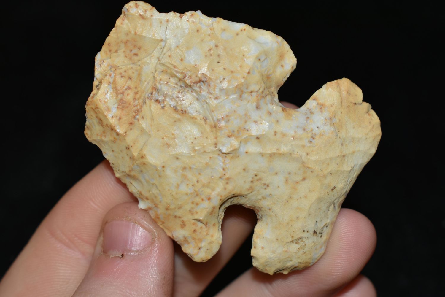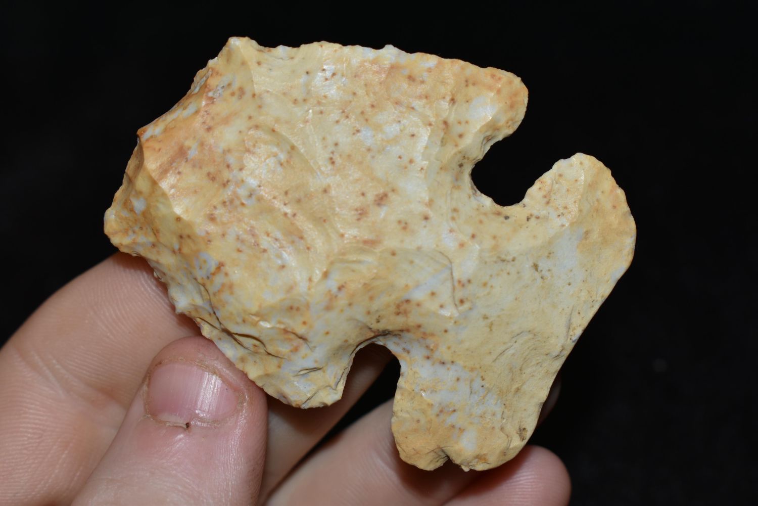 2 3/8" KAOLIN THEBES HAFTED SCRAPER / BLUNT FOUND IN CALHOUN COUNTY ILLINOIS, NATIVE AMERICAN ARROWHEAD, INDIAN ARTIFACT