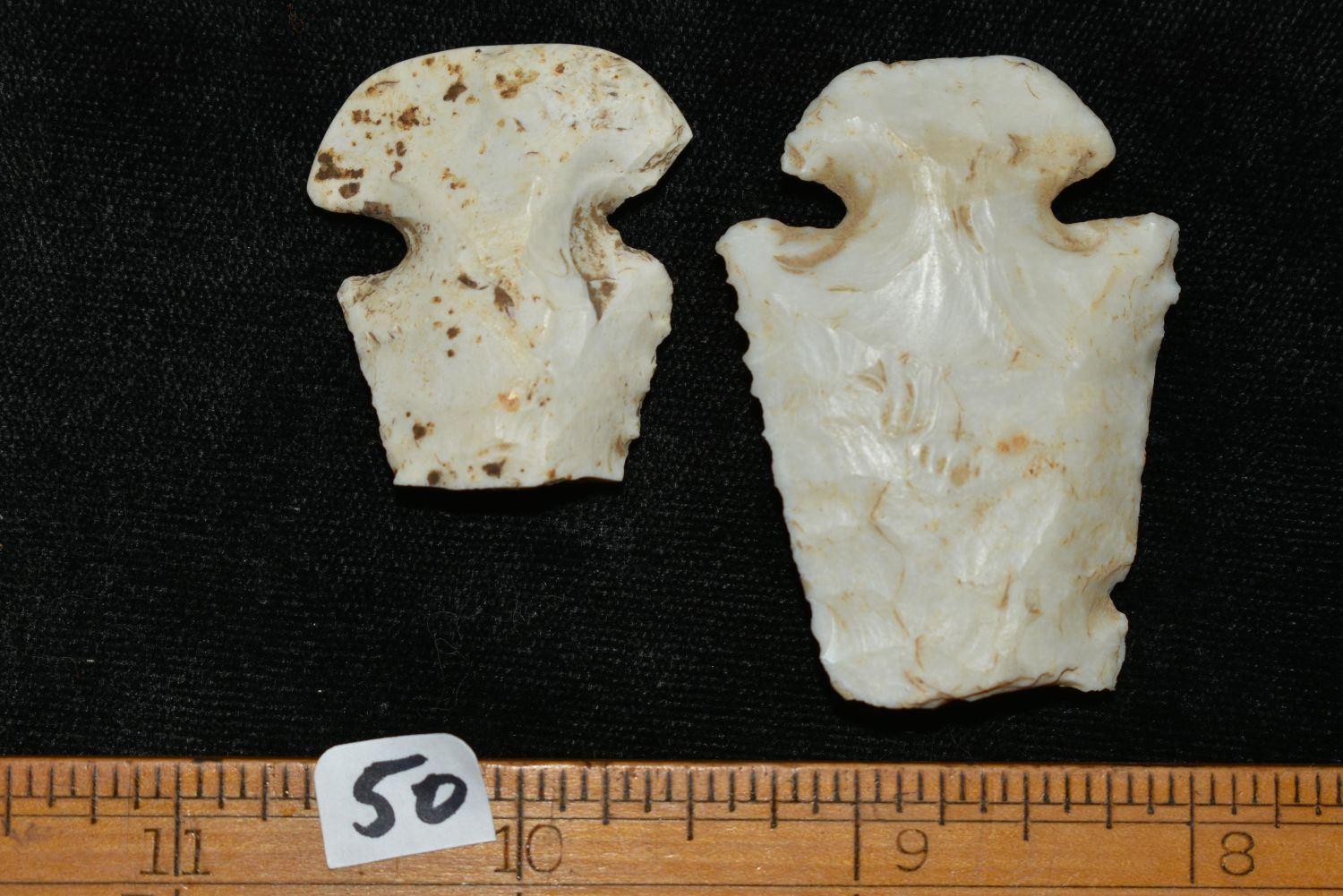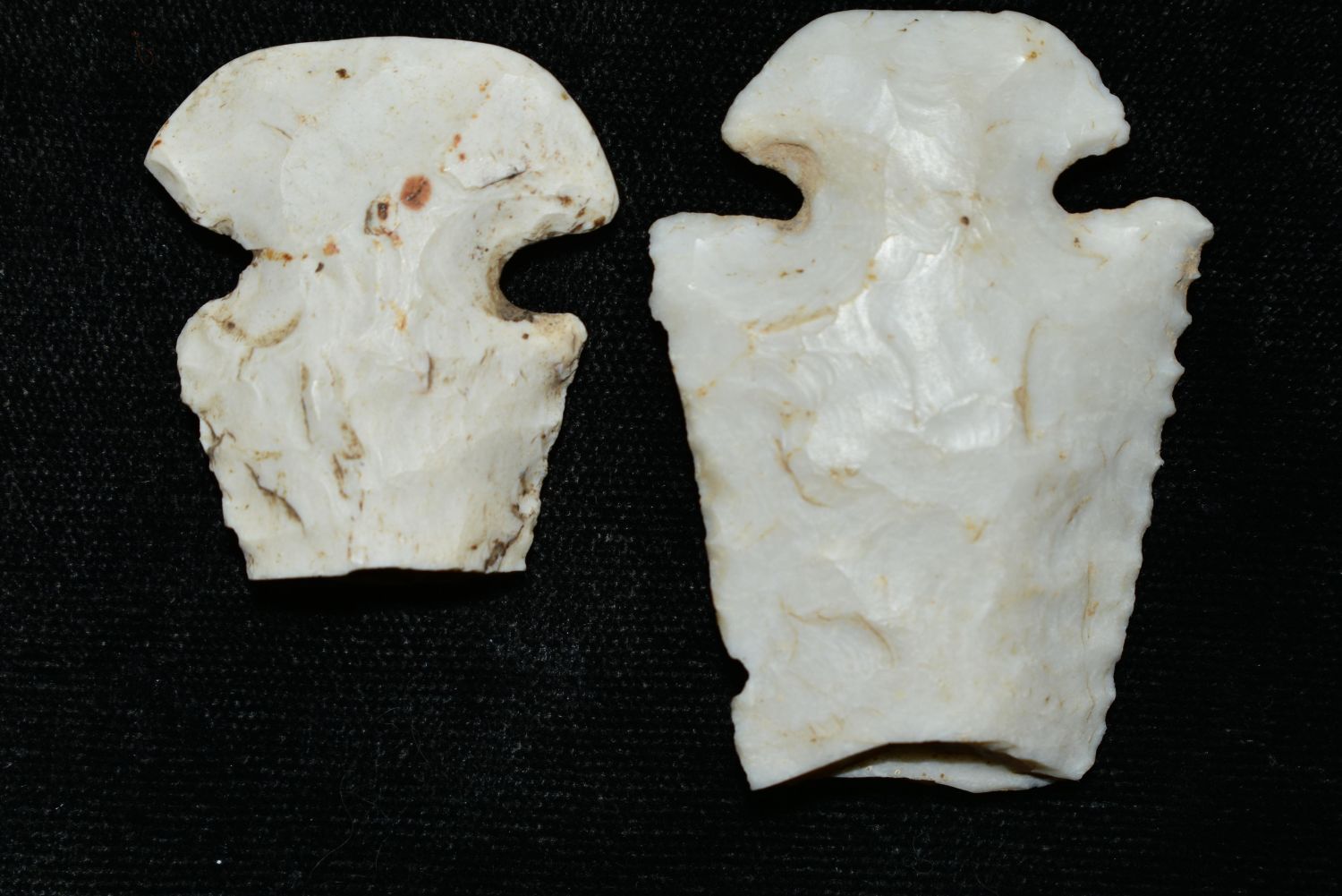 PAIR OF HEARTBREAKER DOVETAILS FOUND IN CALHOUN COUNTY ILLINOIS, NATIVE AMERICAN ARROWHEAD, INDIAN ARTIFACT