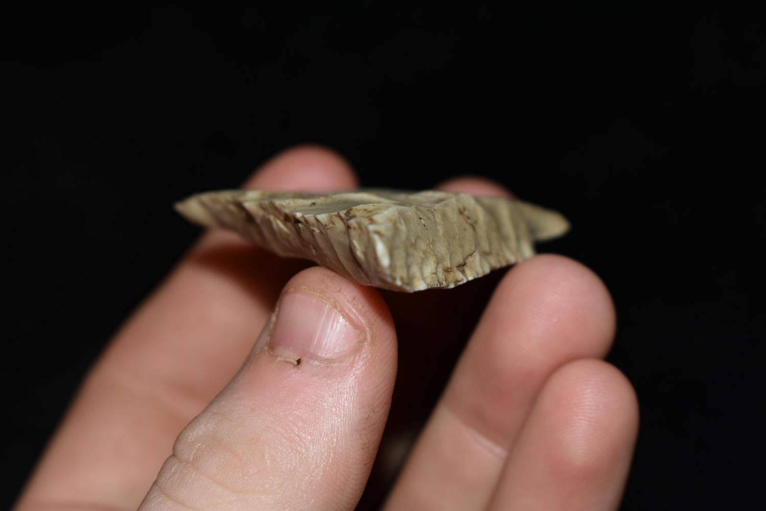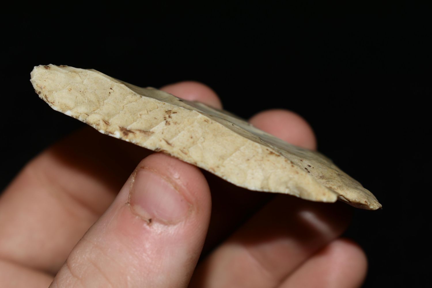 2 5/8" LONG THEBES FOUND IN CALHOUN COUNTY ILINOIS, STEEP BEVELS, NATIVE AMERICAN ARROWHEAD, INDIAN ARTIFACT
