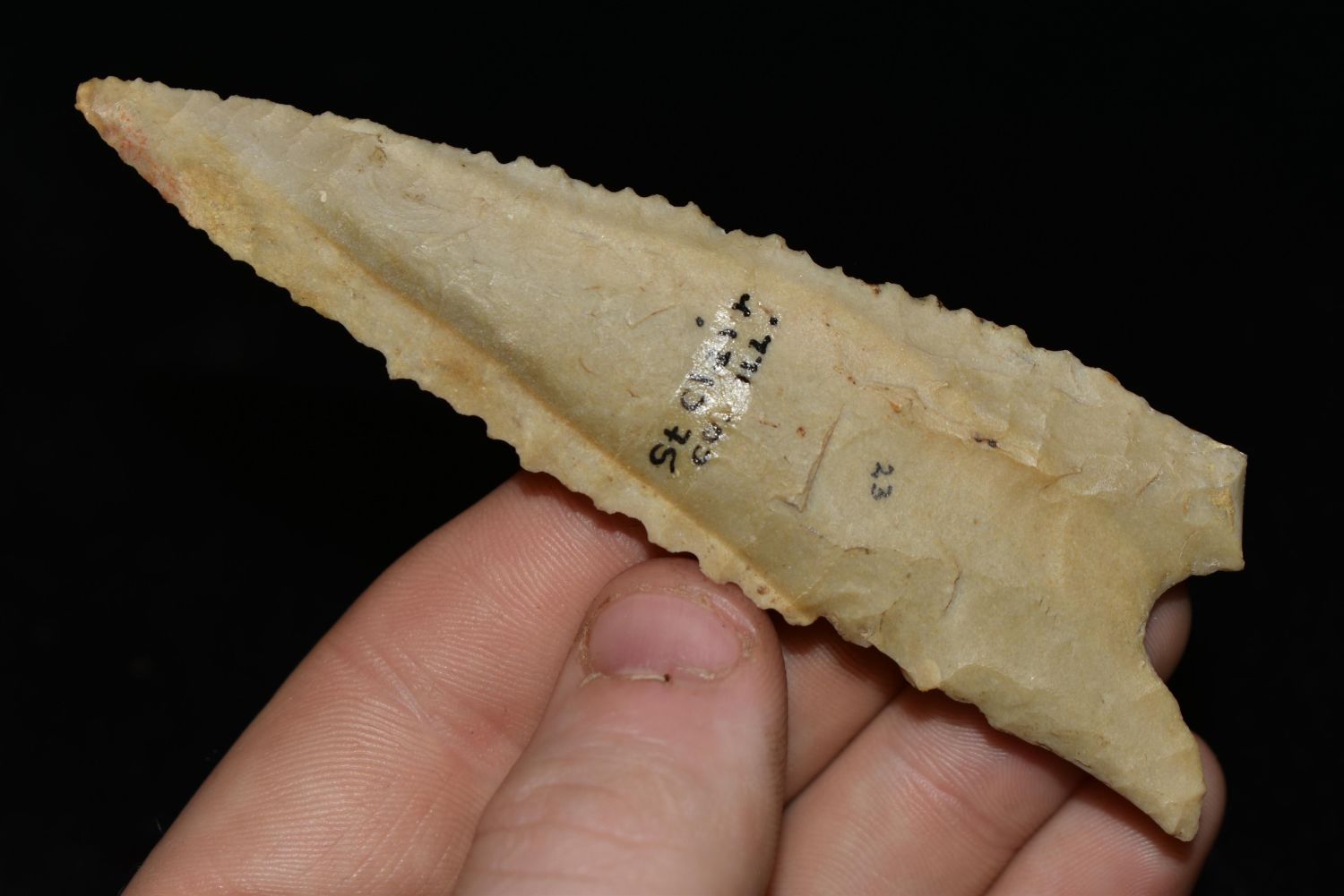 AMAZING 4" LONG DALTON FOUND IN ST CLAIR COUNTY ILLINOIS, GREAT COLOR, NATIVE AMERICAN ARROWHEAD, INDIAN ARTIFACT
