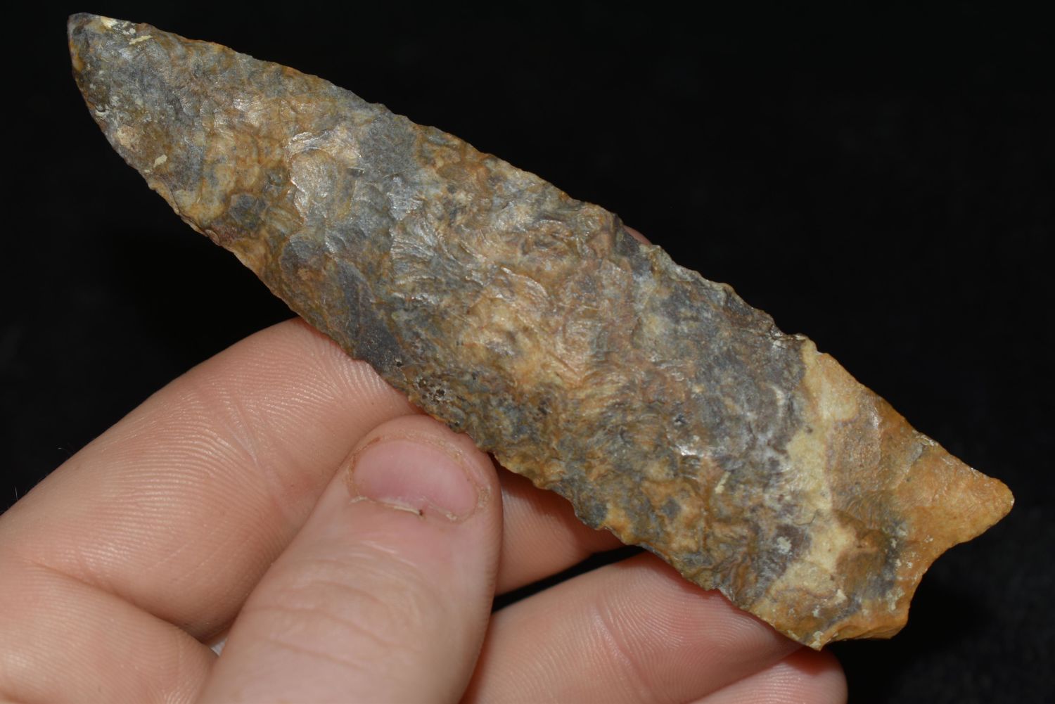 COLORFUL 4" LONG DALTON FOUND IN COOPER COUNTY MISSOURI, NATIVE AMERICAN ARROWHEAD, INDIAN ARTIFACT