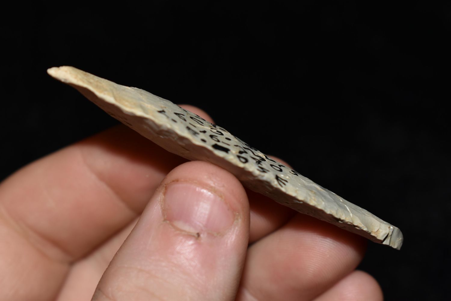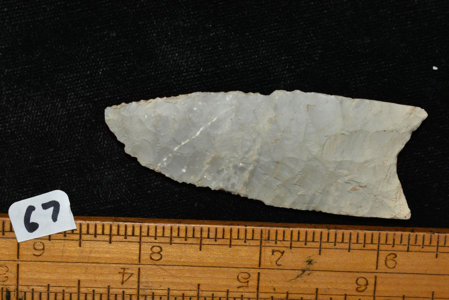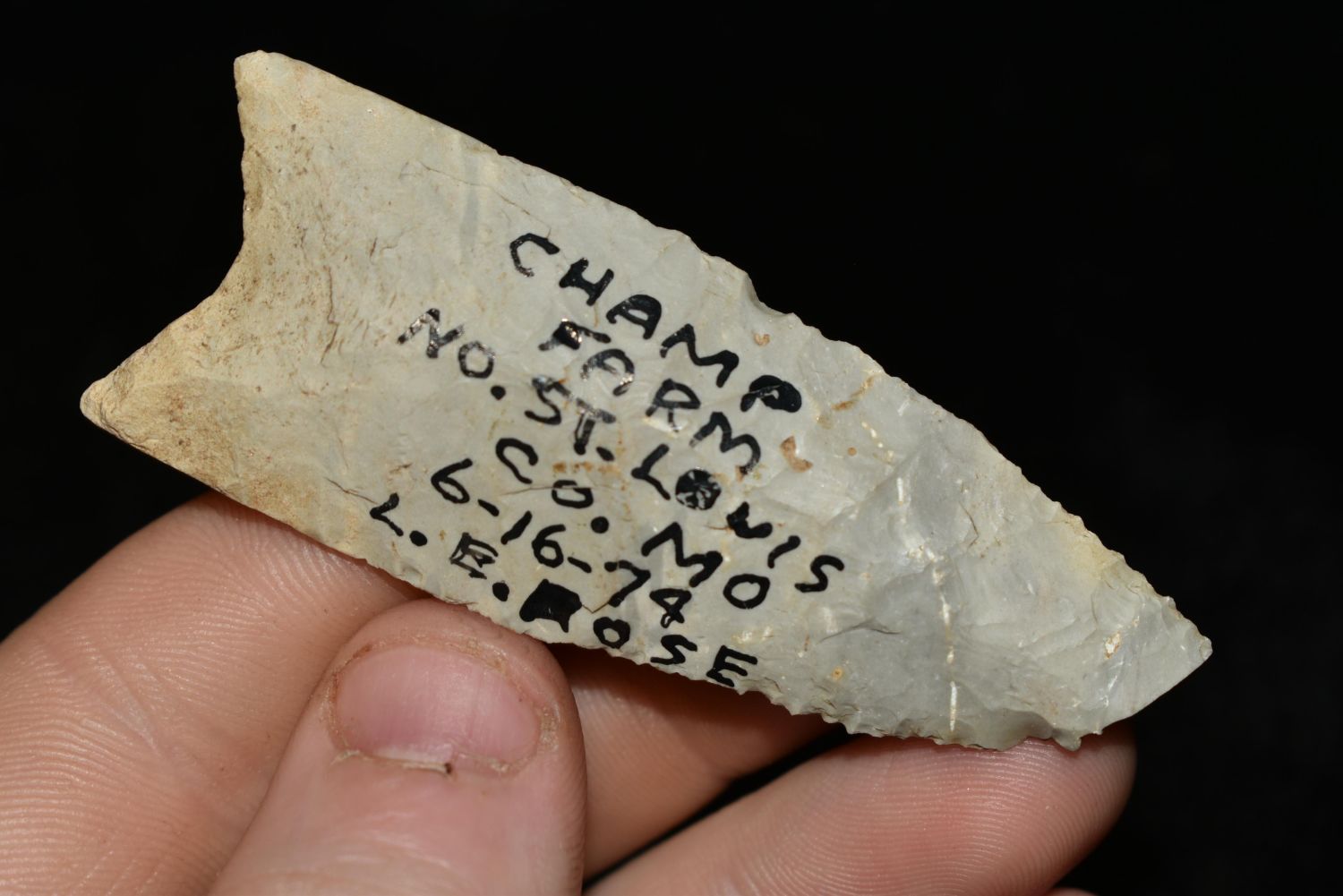 2 11/16" LONG DALTON FOUND BY LLOYD ROSE 6-16-74 IN ST LOUIS COUNTY MISSOURI AT THE CHAMP FARM, NATIVE AMERICAN ARROWHEAD, INDIAN ARTIFACT