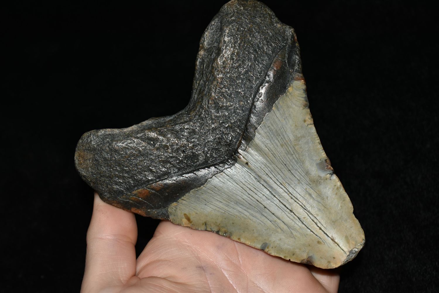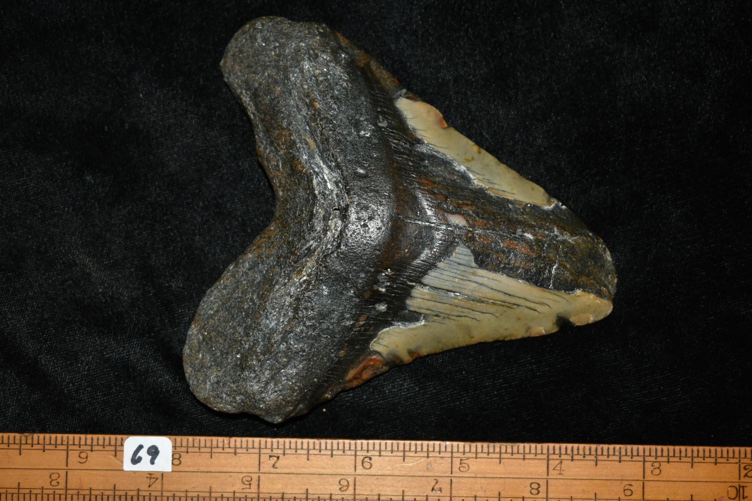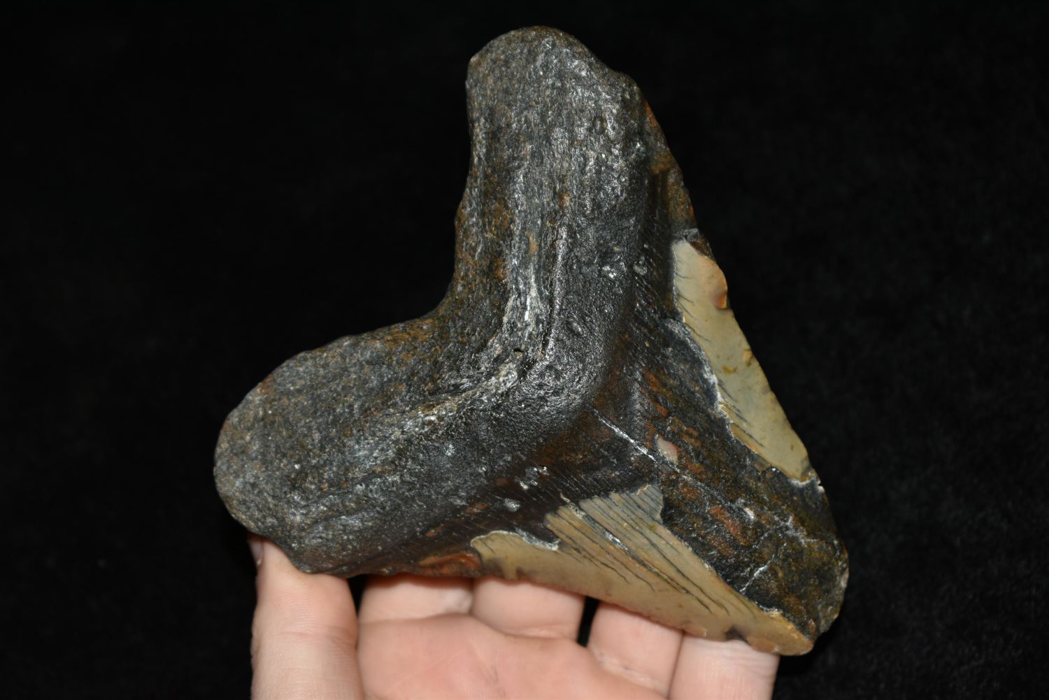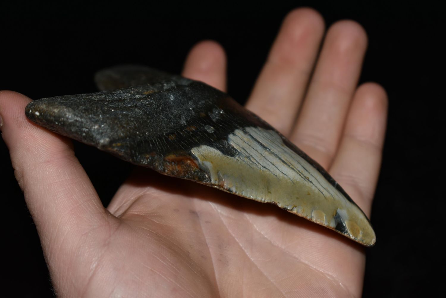 HUGE 5" LONG MEGALODON FOSSIL SHARK TOOTH ARTIFACT FOUND OFF THE COAST OF THE CAROLINAS, NATIVE AMERICAN ARROWHEAD, INDIAN ARTIFACT
