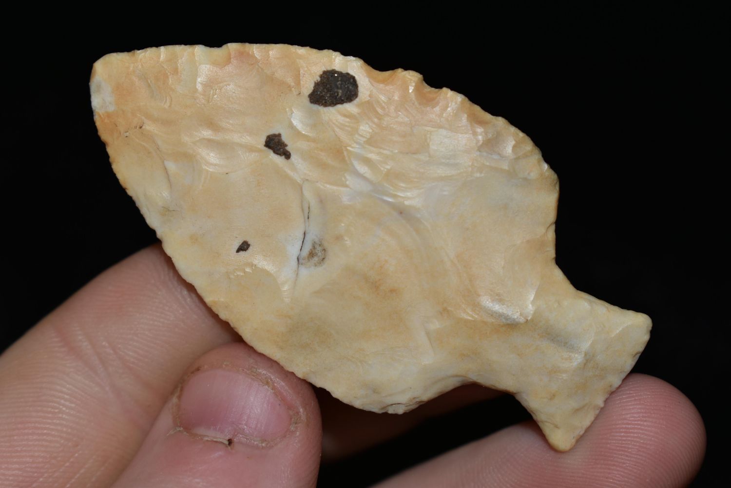 2 7/16" TABLE ROCK, FOUND IN LINCOLN COUNTY MISSOURI BY JAMES COOKSEY, NICE CREEK STAIN, NATIVE AMERICAN ARROWHEAD, INDIAN ARTIFACT