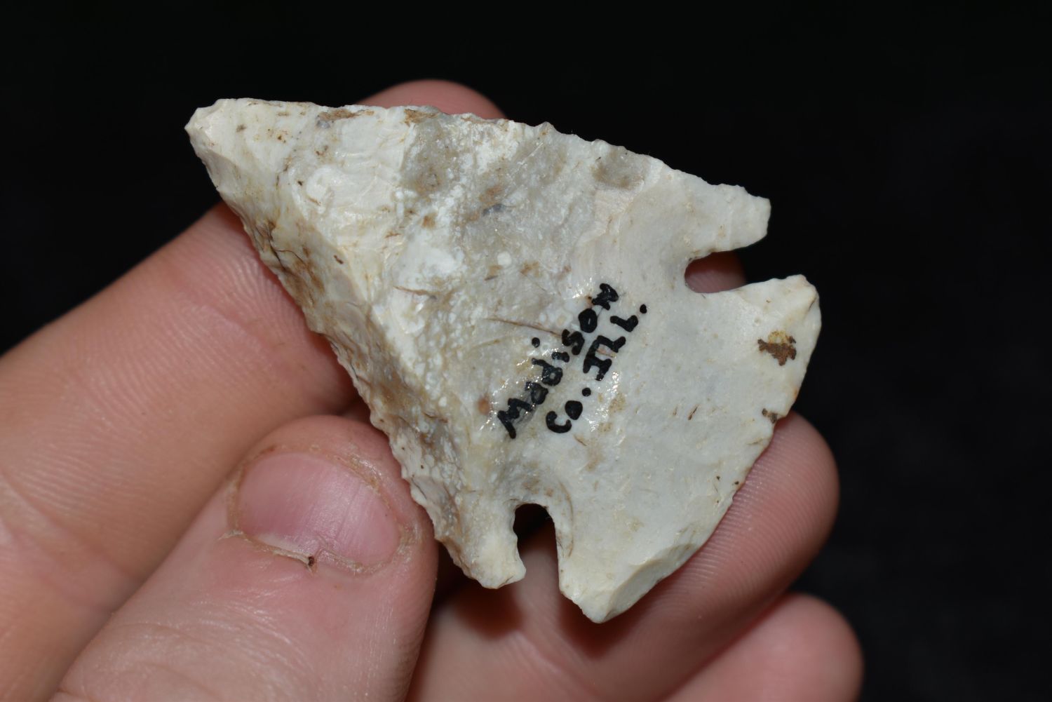 1 7/8" LOST LAKE FOUND IN MADISON COUNTY ILLINOIS, NICELY BEVELED, NATIVE AMERICAN ARROWHEAD, INDIAN ARTIFACT
