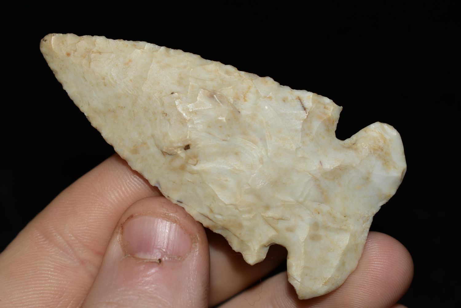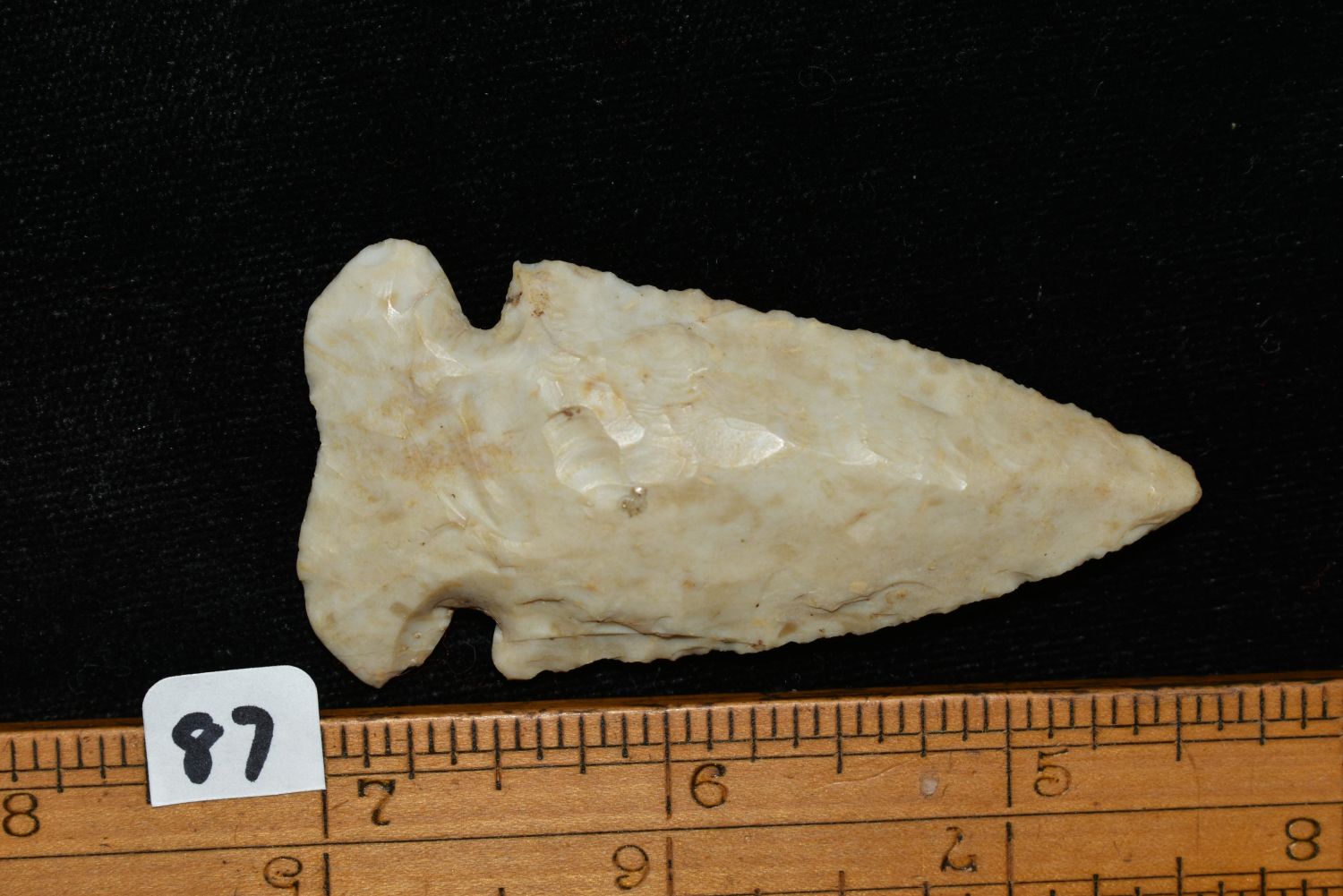 2 5/8" DOVETAIL FOUND IN CALHOUN COUNTY ILLINOIS BY CHARLES CROW OF NOKOMIS, ILLINOIS, NATIVE AMERICAN ARROWHEAD, INDIAN ARTIFACT