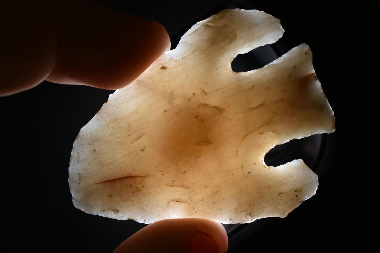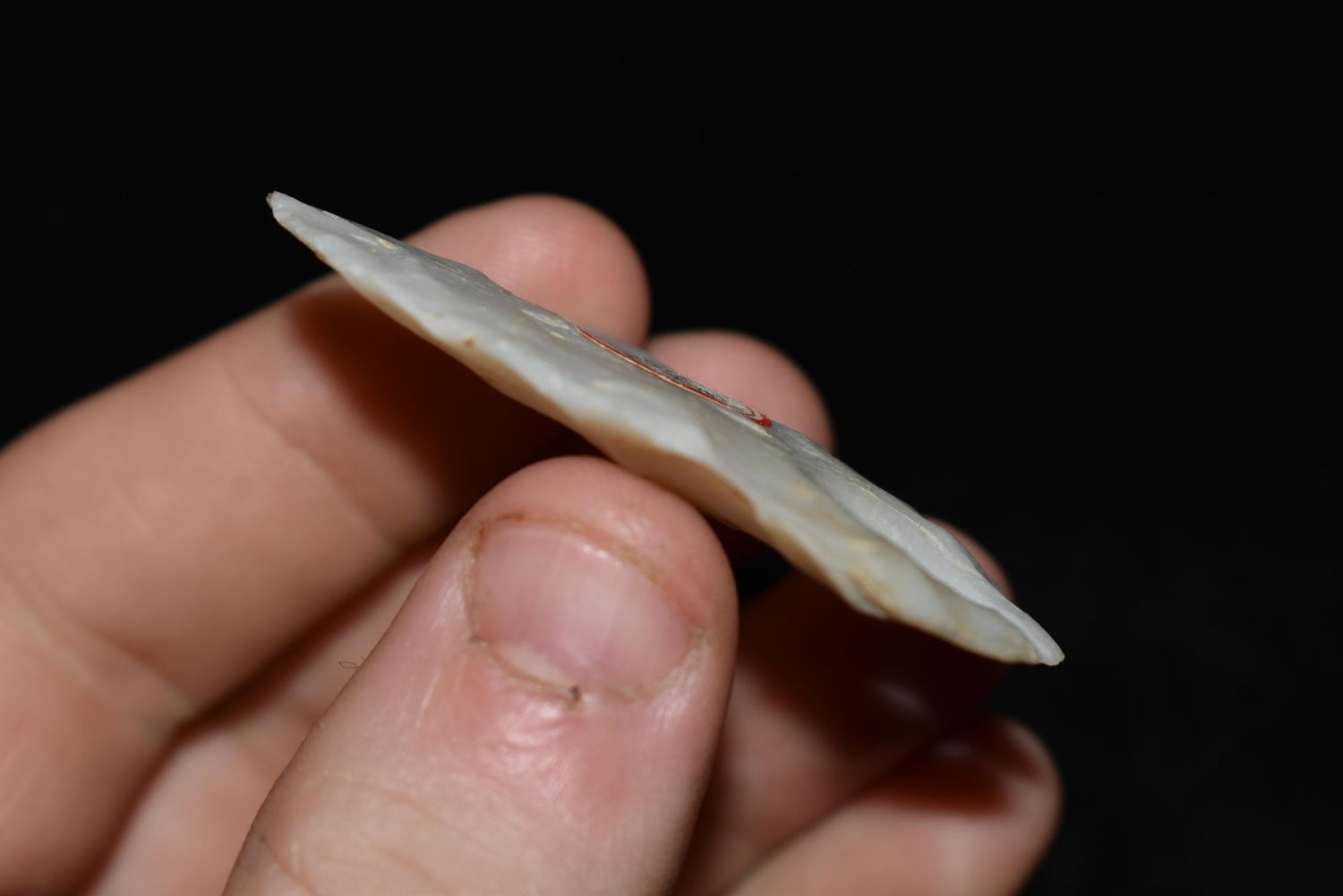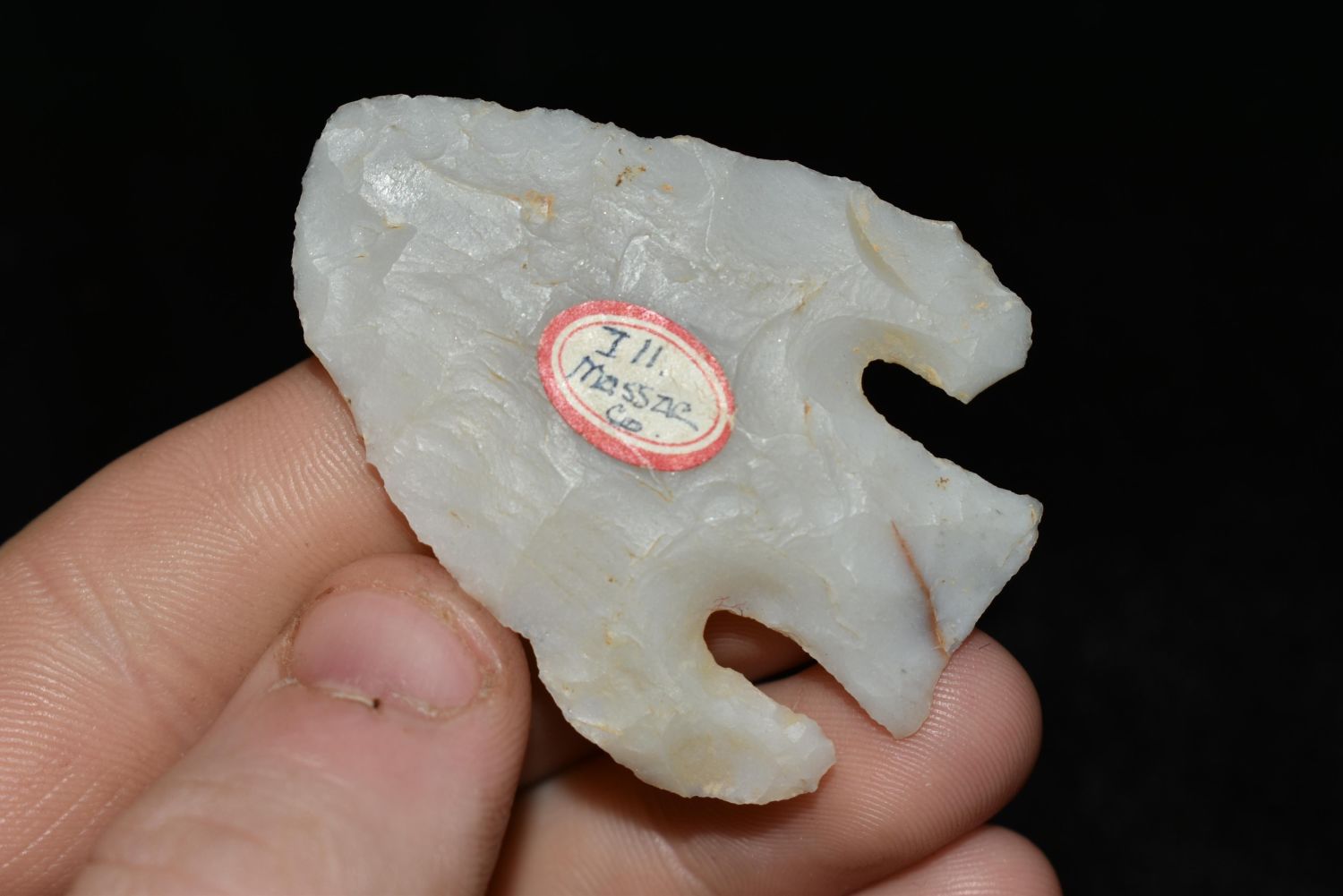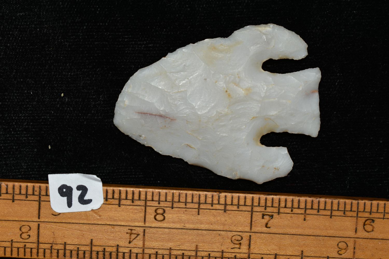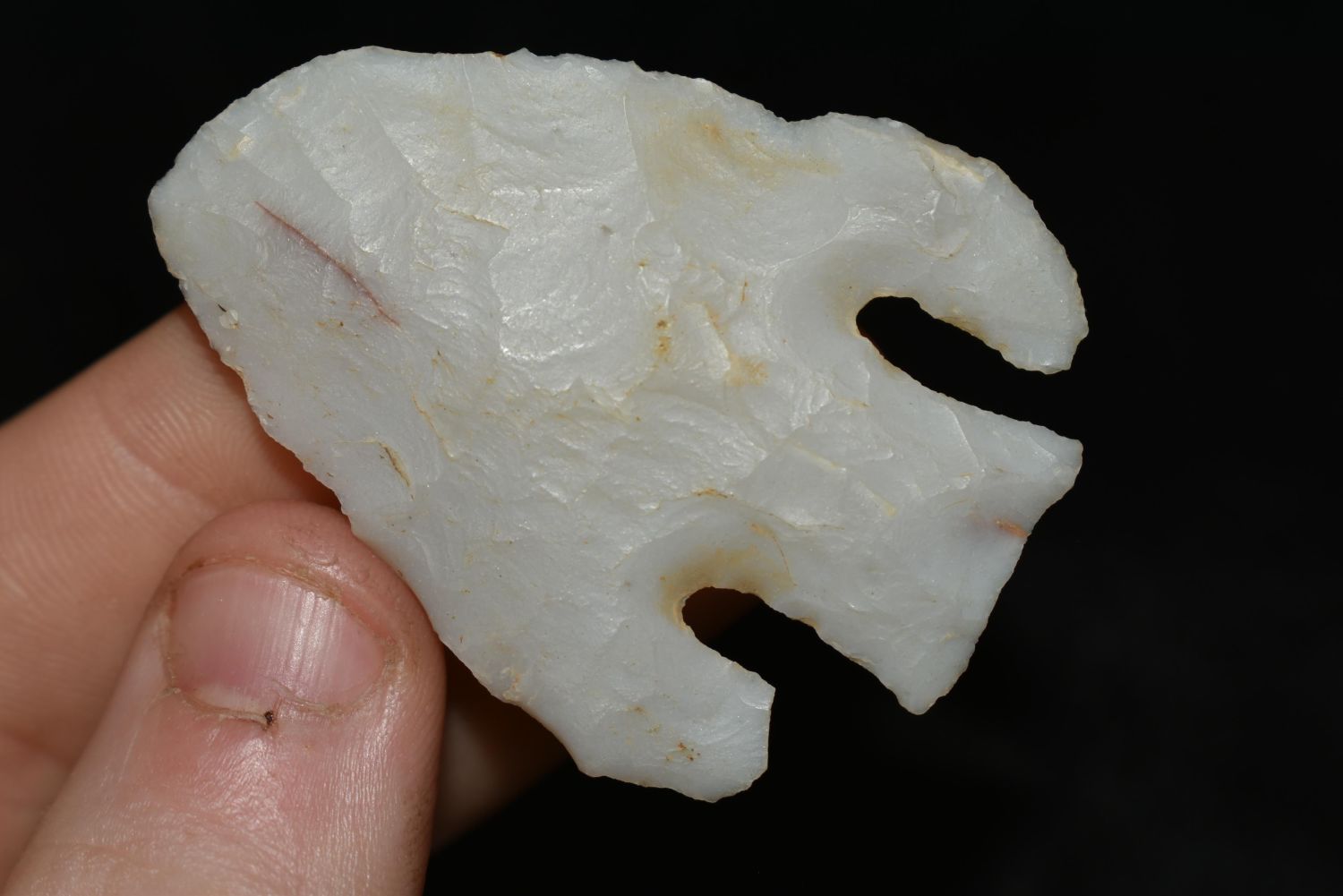 2" LONG HIGHLY TRANSLUCENT NOVACULITE CALF CREEK FOUND IN MASSAC COUNTY ILLINOIS, NATIVE AMERICAN ARROWHEAD, INDIAN ARTIFACT
