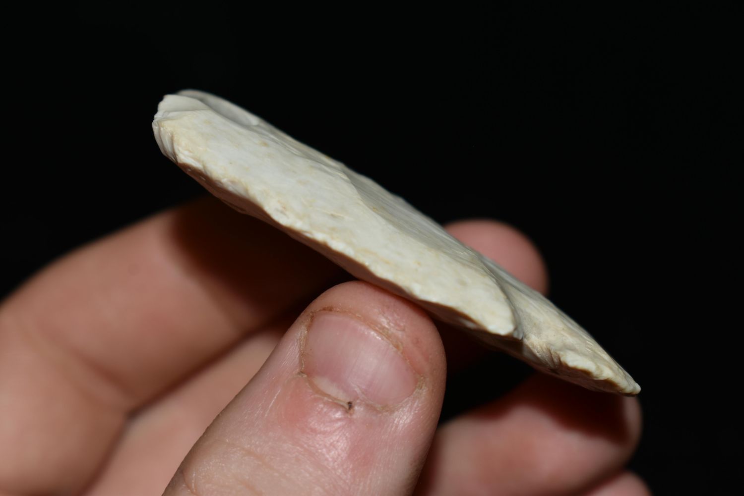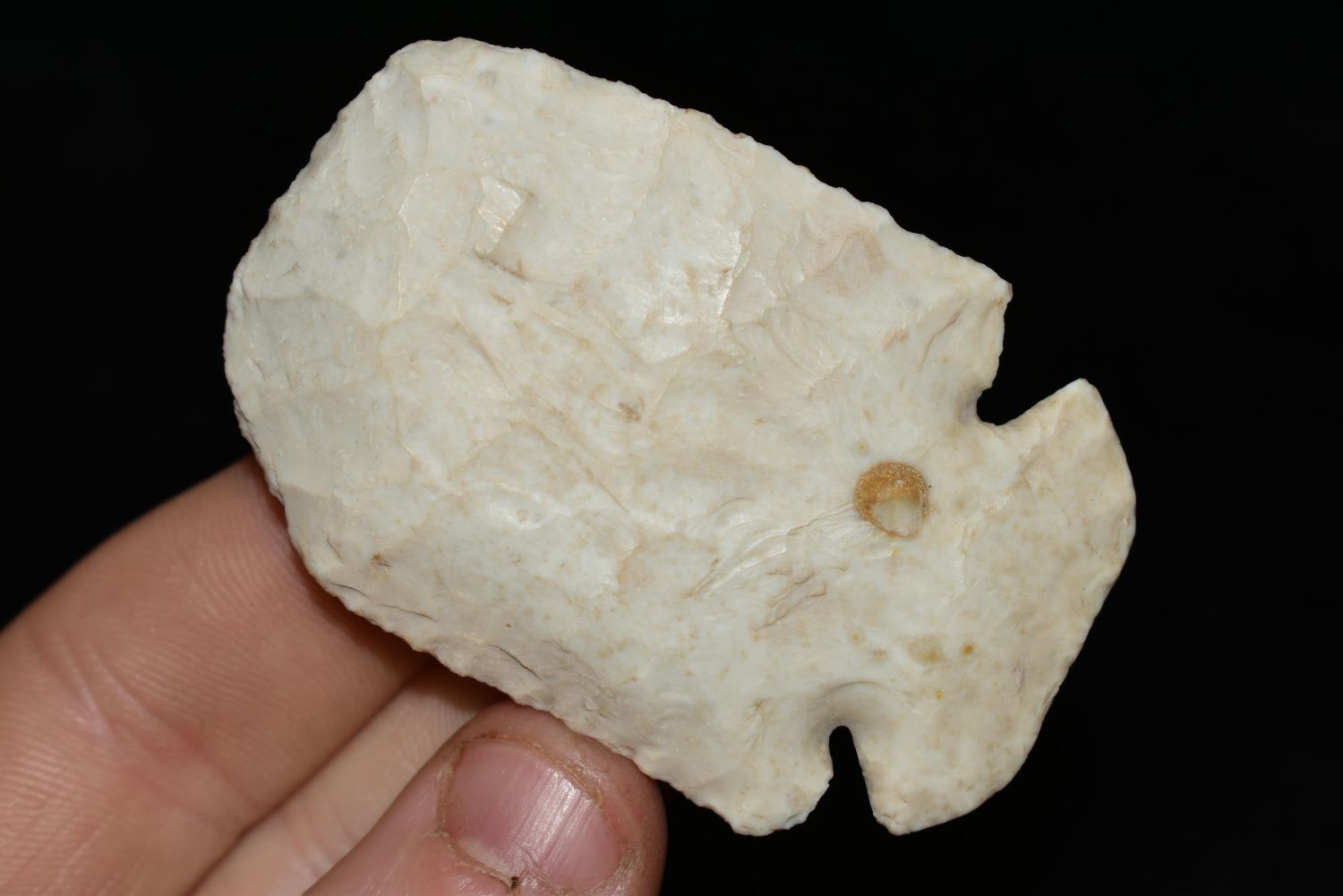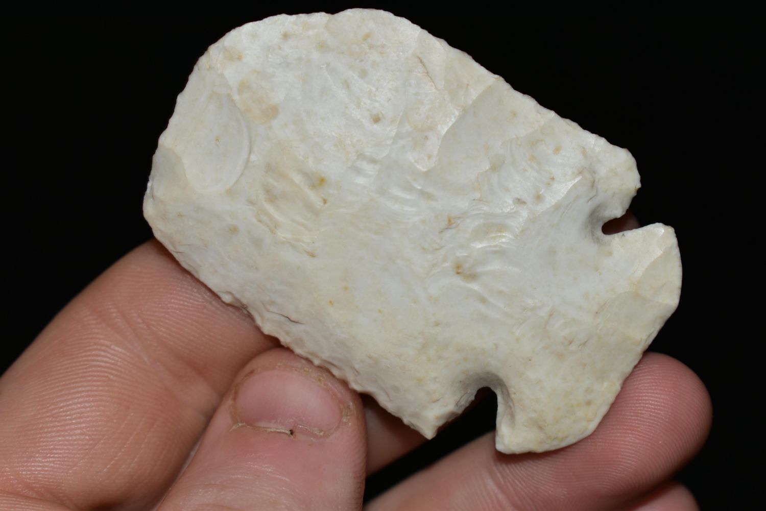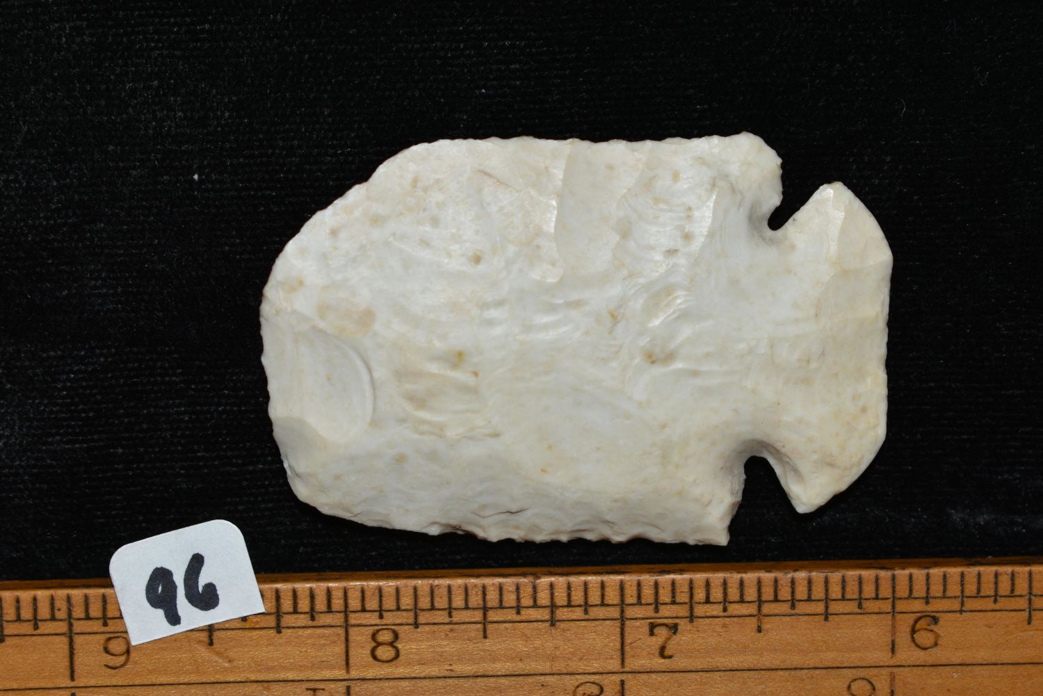 2 1/4" DOVETAIL HAFTED SCRAPER / BLUNT FOUND IN CALHOUN COUNTY ILLINOIS BY CHARLES CROW OF NOKOMIS, IL, NATIVE AMERICAN ARROWHEAD, INDIAN ARTIFACT
