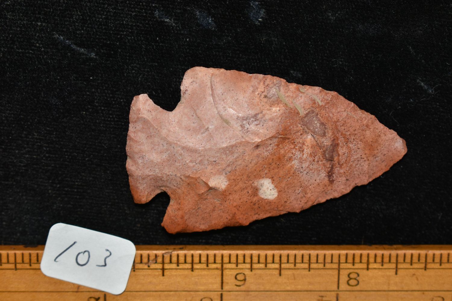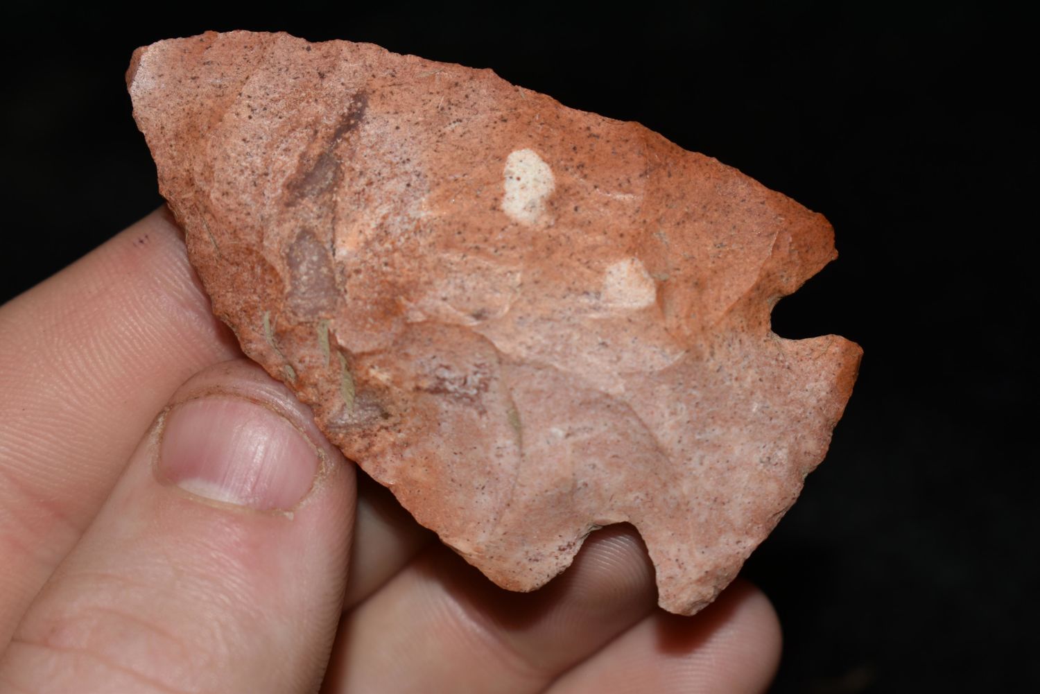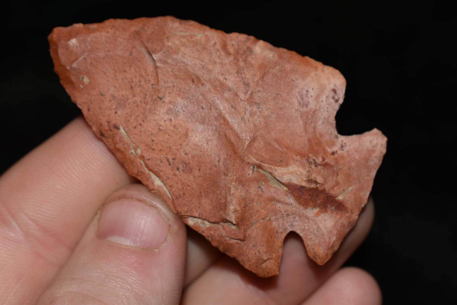 2 1/4" Colorful Woodland Arrowhead, ex Sam Webster Collection, Pettis Co., Mo Condition: 100% Guaranteed Authentic via our Return Policy & Found on Private Property