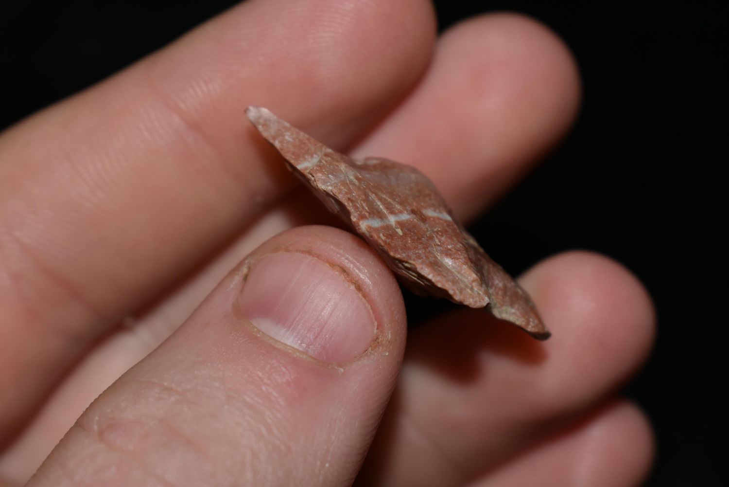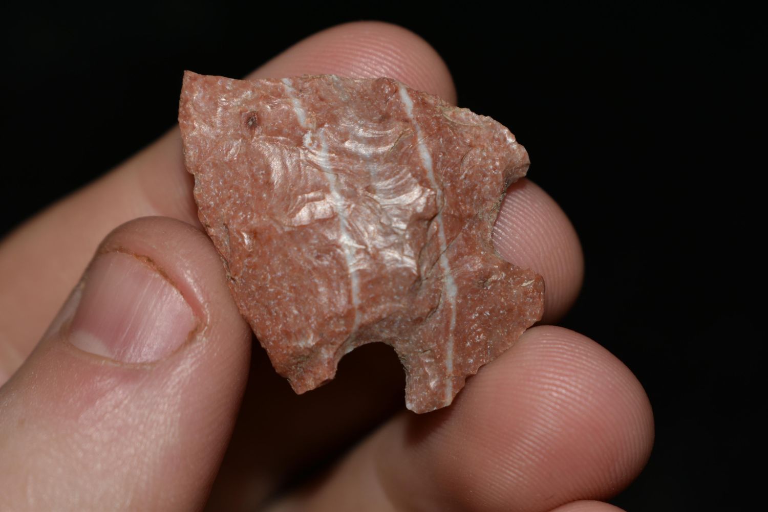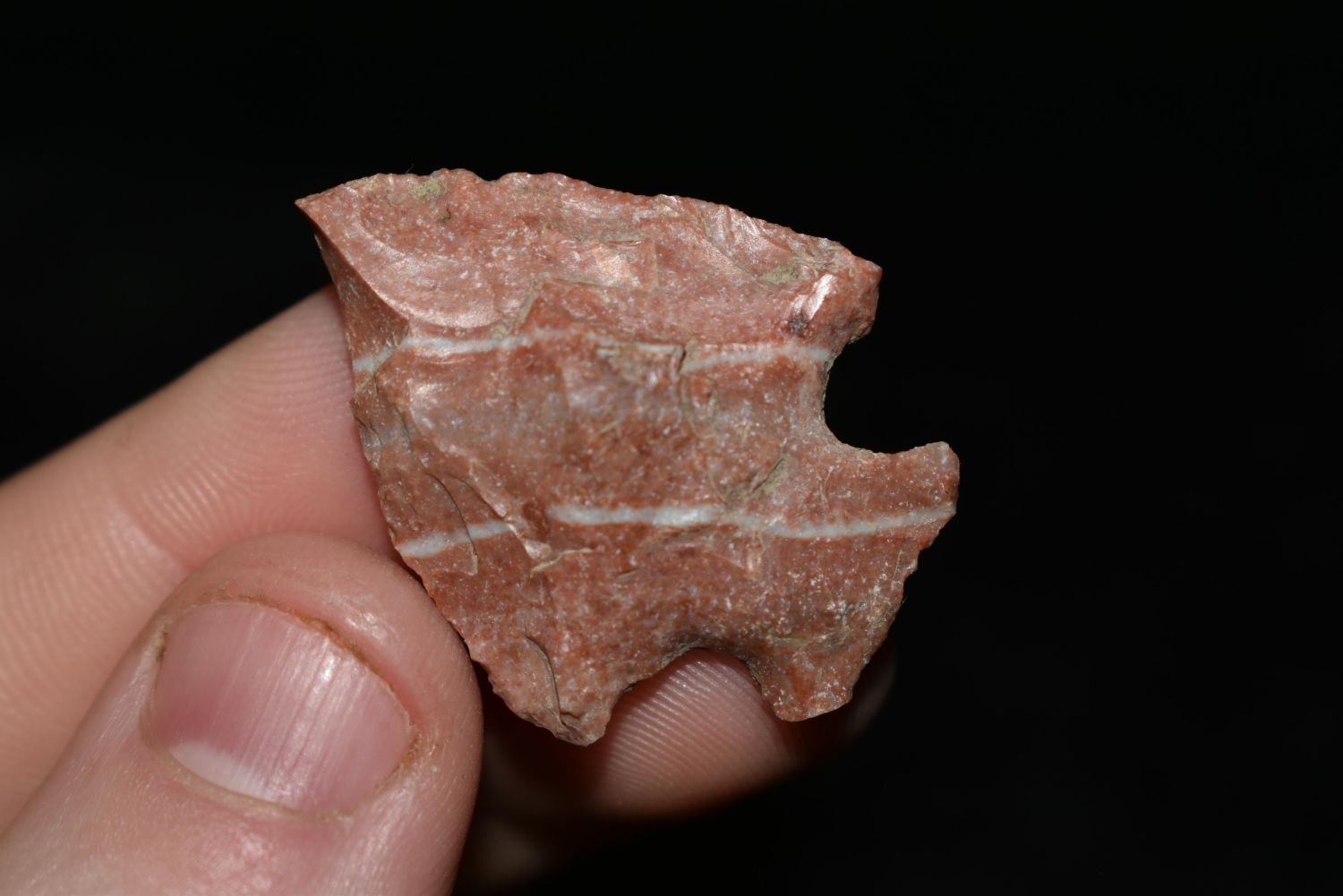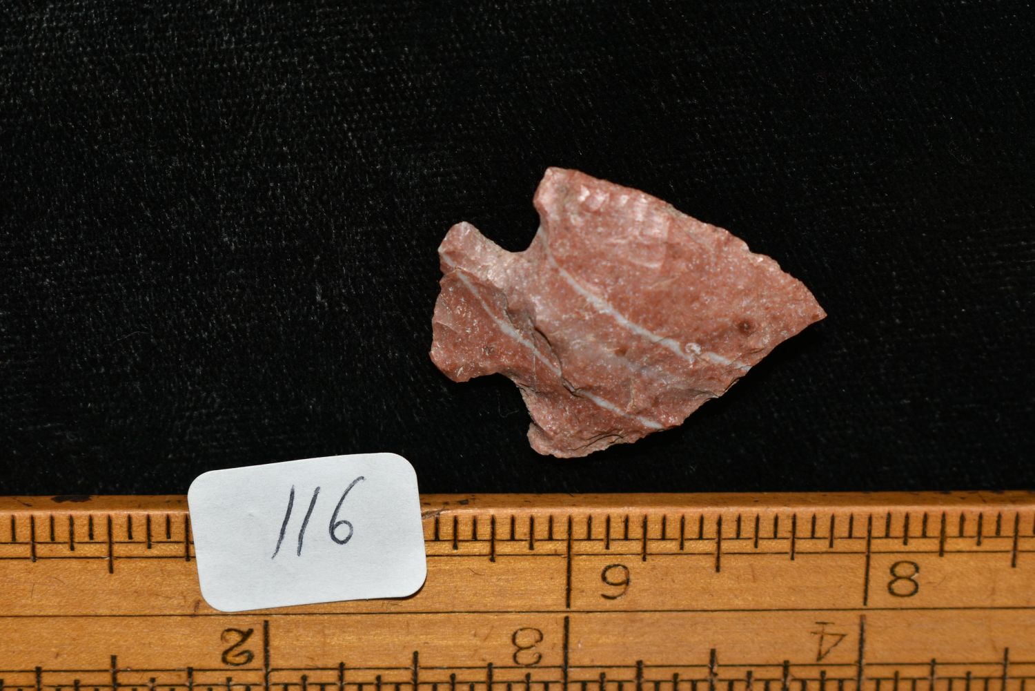 1 1/4" Colorful Woodland Arrowhead, ex Sam Webster Collection, Pettis Co., Mo Condition: 100% Guaranteed Authentic via our Return Policy & Found on Private Property