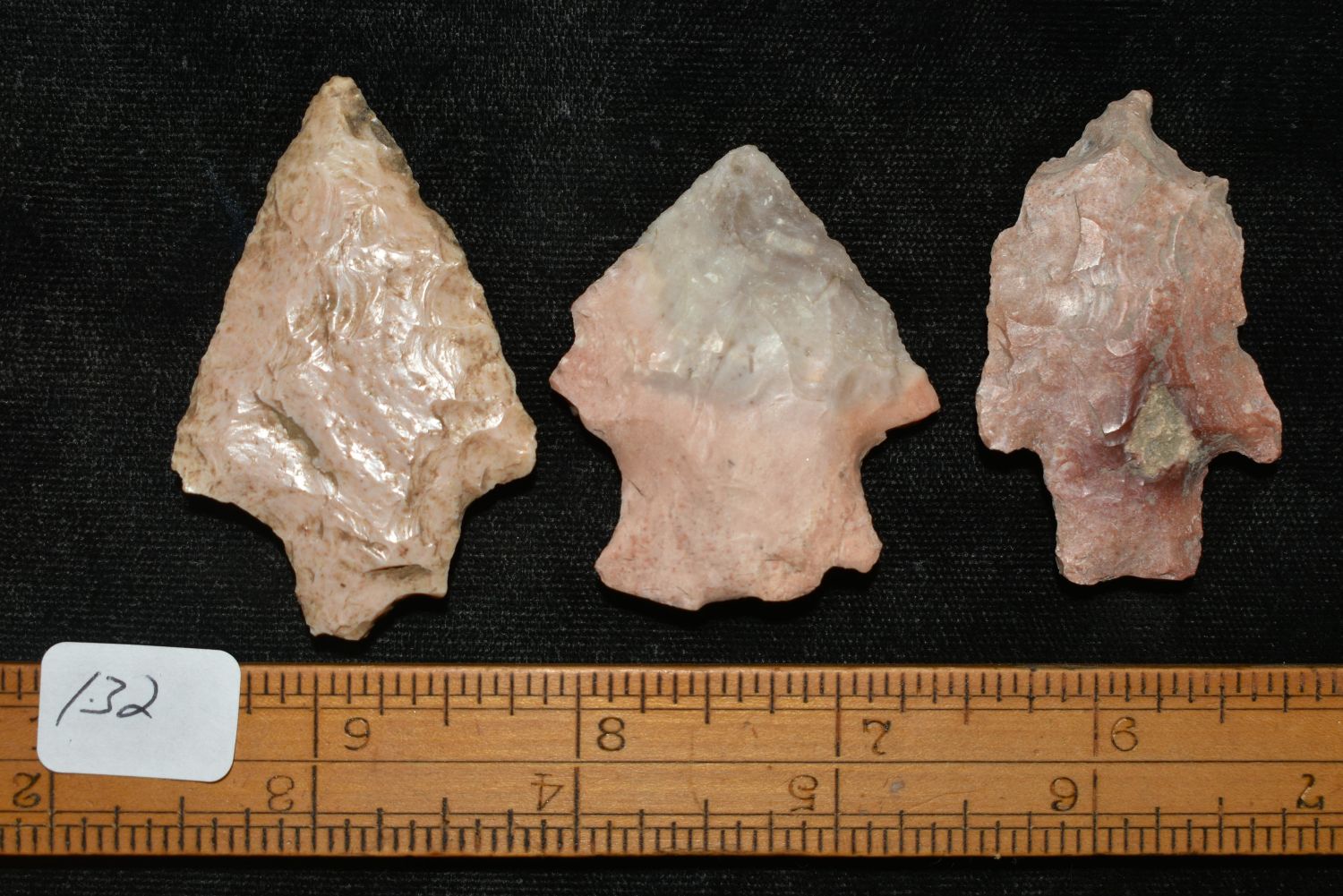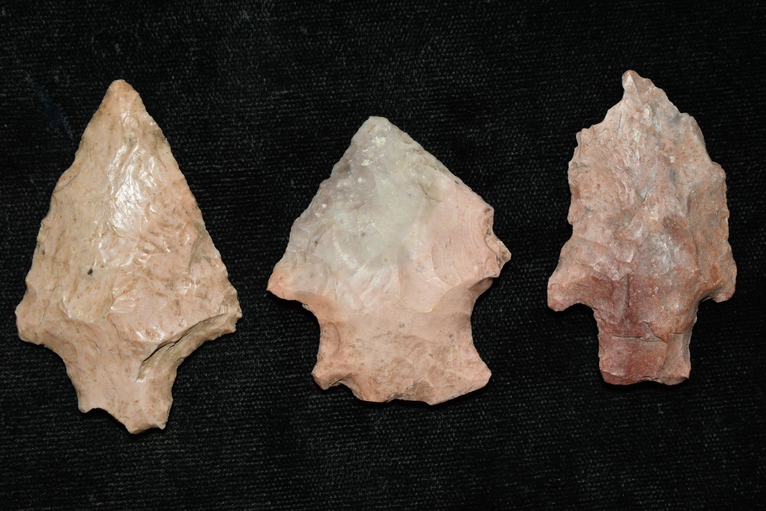 3 Arrowheads 1 3/4" to 2 1/8", ex Sam Webster Collection, Pettis Co., Mo Condition: 100% Guaranteed Authentic via our Return Policy & Found on Private Property